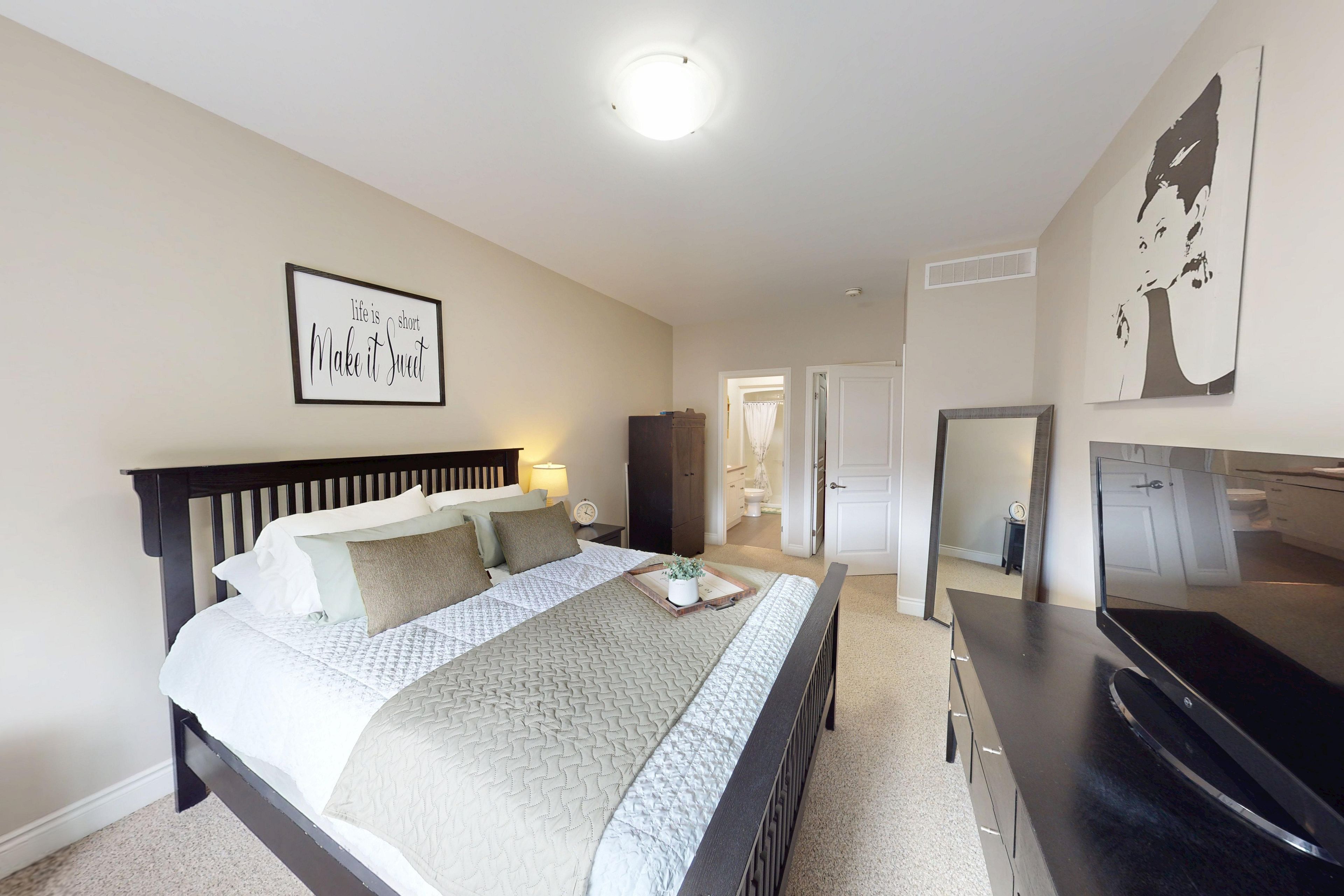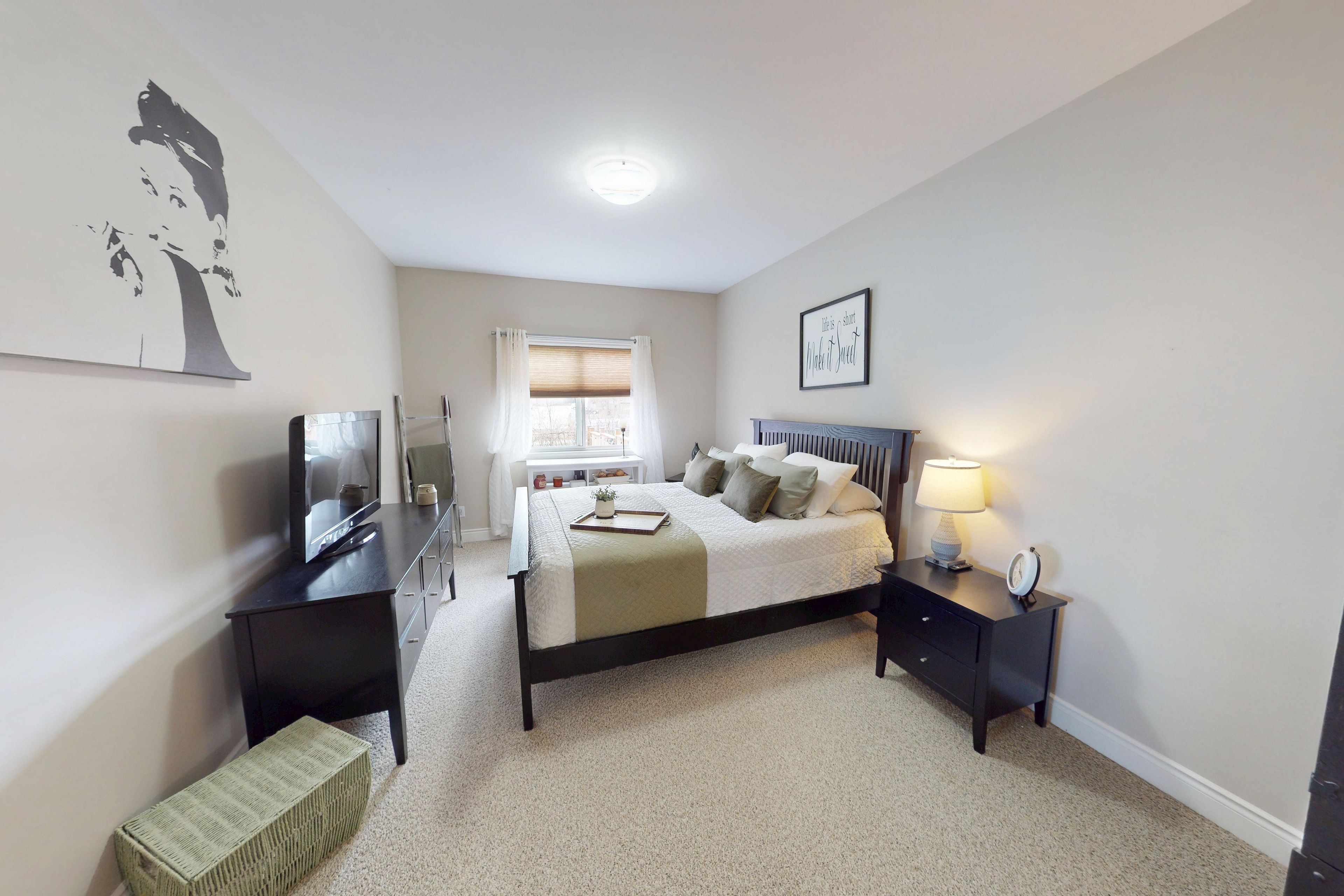 • Spacious primary suite features a walk-in closet and ensuite bathroom.