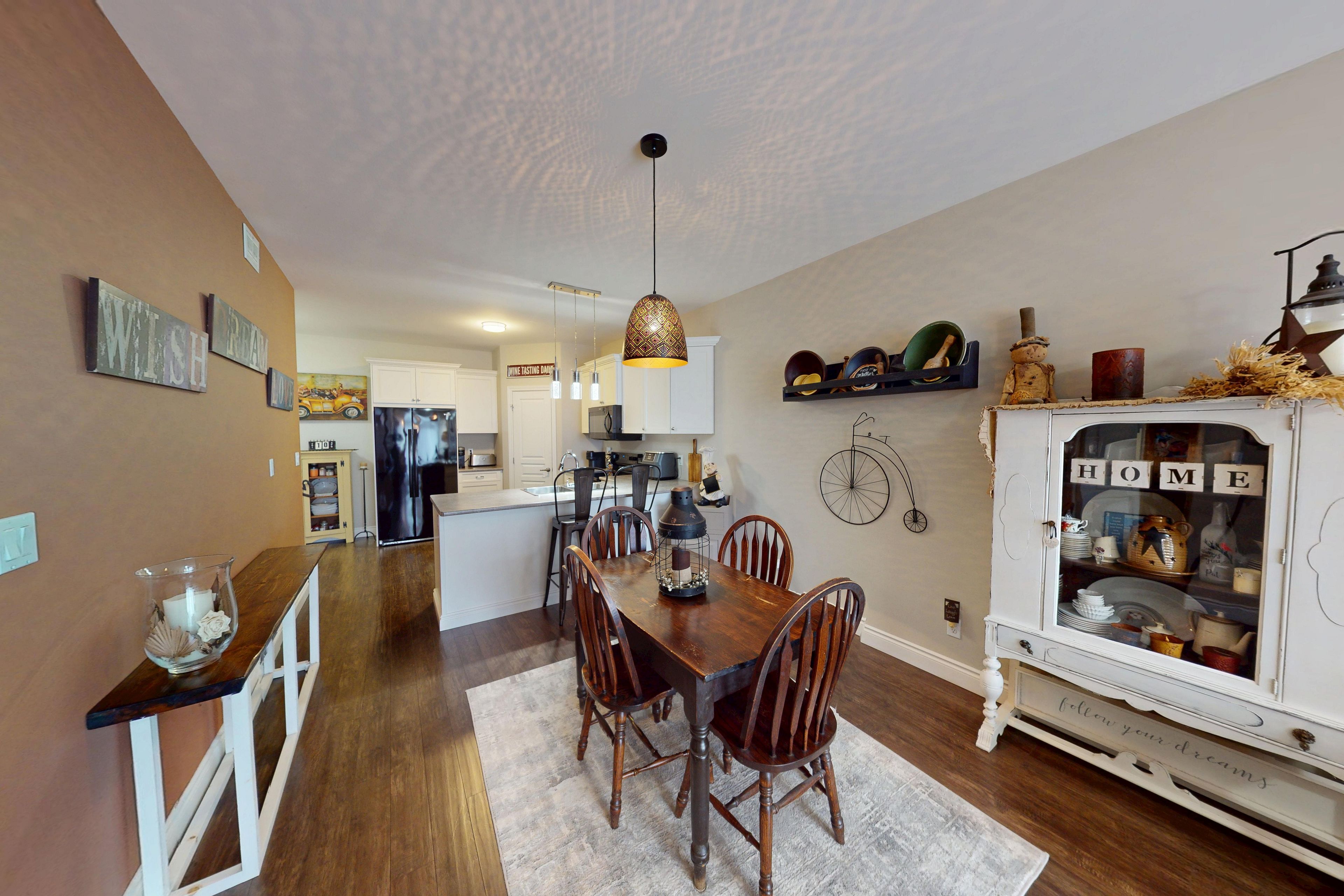 Freehold townhouse, built in 2018, conveniently located between trenton and belleville. Open concept living / dining / kitchen, with 9 ft ceilings throughout. The kitchen offers a walk - in pantry and seating at the island. The living area leads to the deck and fully fenced backyard. The spacious primary suite will impress. Offering a generous walk-in closet and a 3-pc ensuite. Off the foyer is the main-floor laundry room, a 2-pc bath and stairs to the lower level. The lower level is builder-finished, with a large recreation room, bright bedroom, cozy den/office and 4-pc bath. Needing in law space? The utility room has potential for a kitchenette area. Outside, sit back and relax on the multi tiered decks in a fully - fenced yard. Economical, and easy maintenance living at its best.