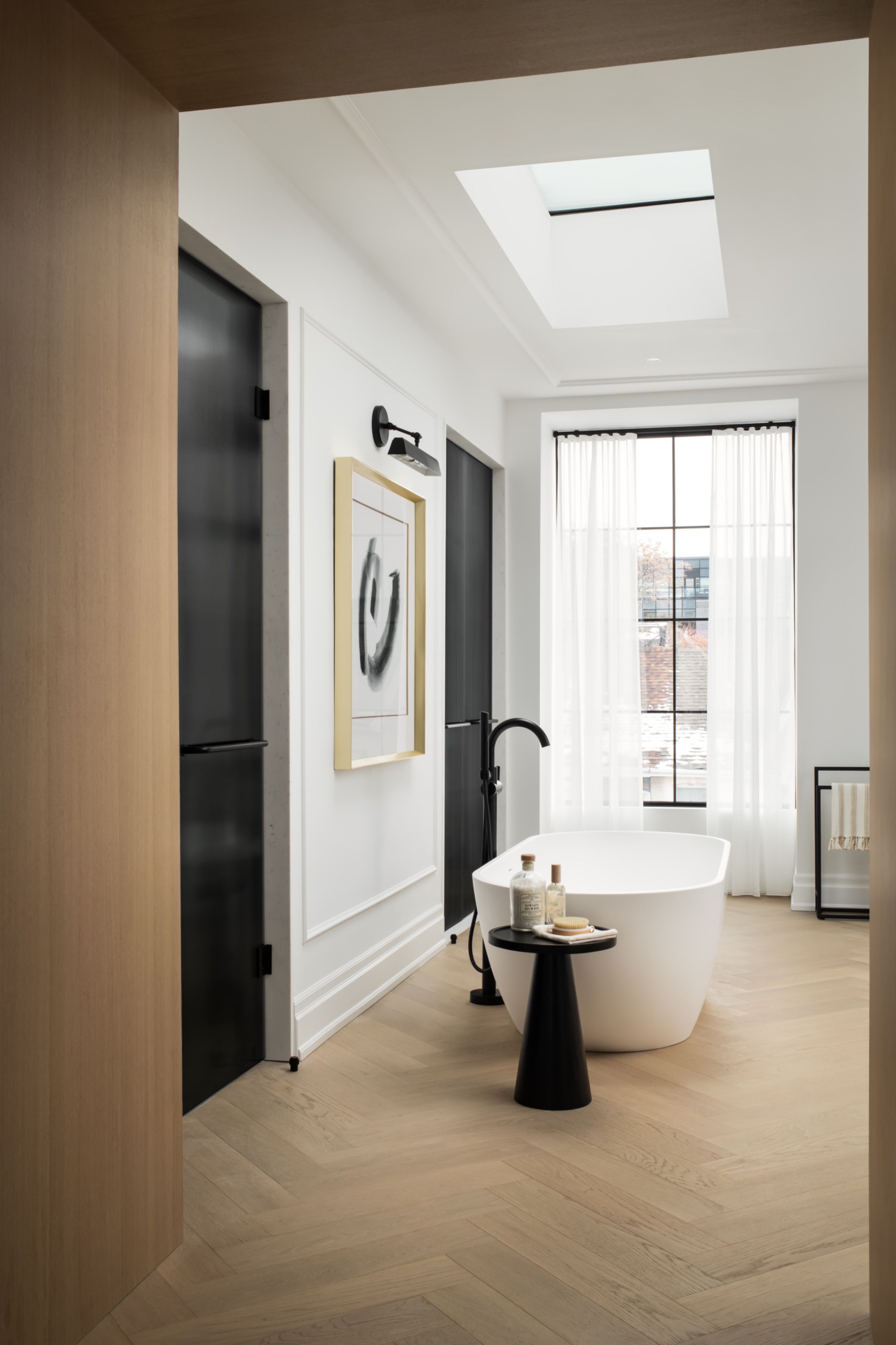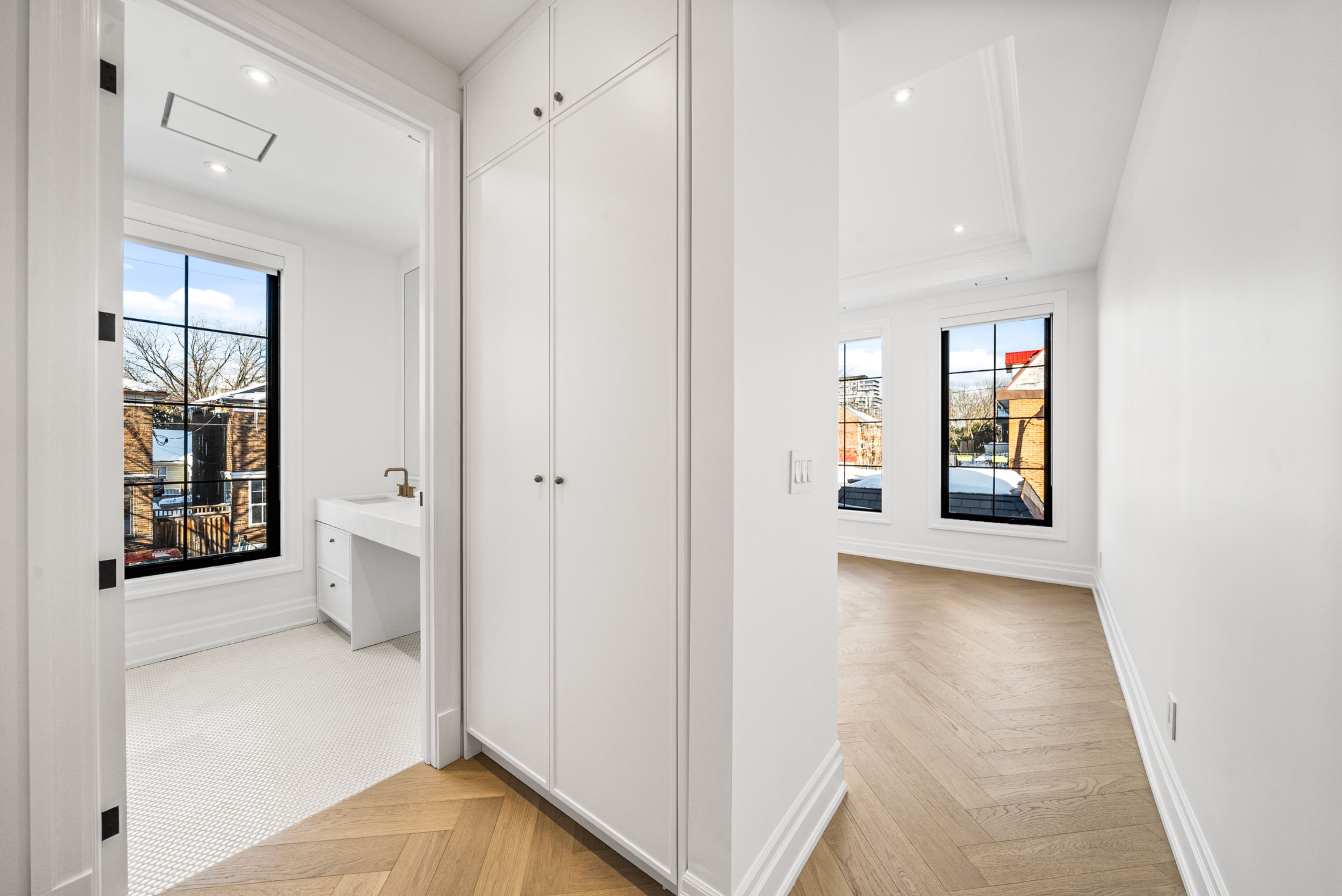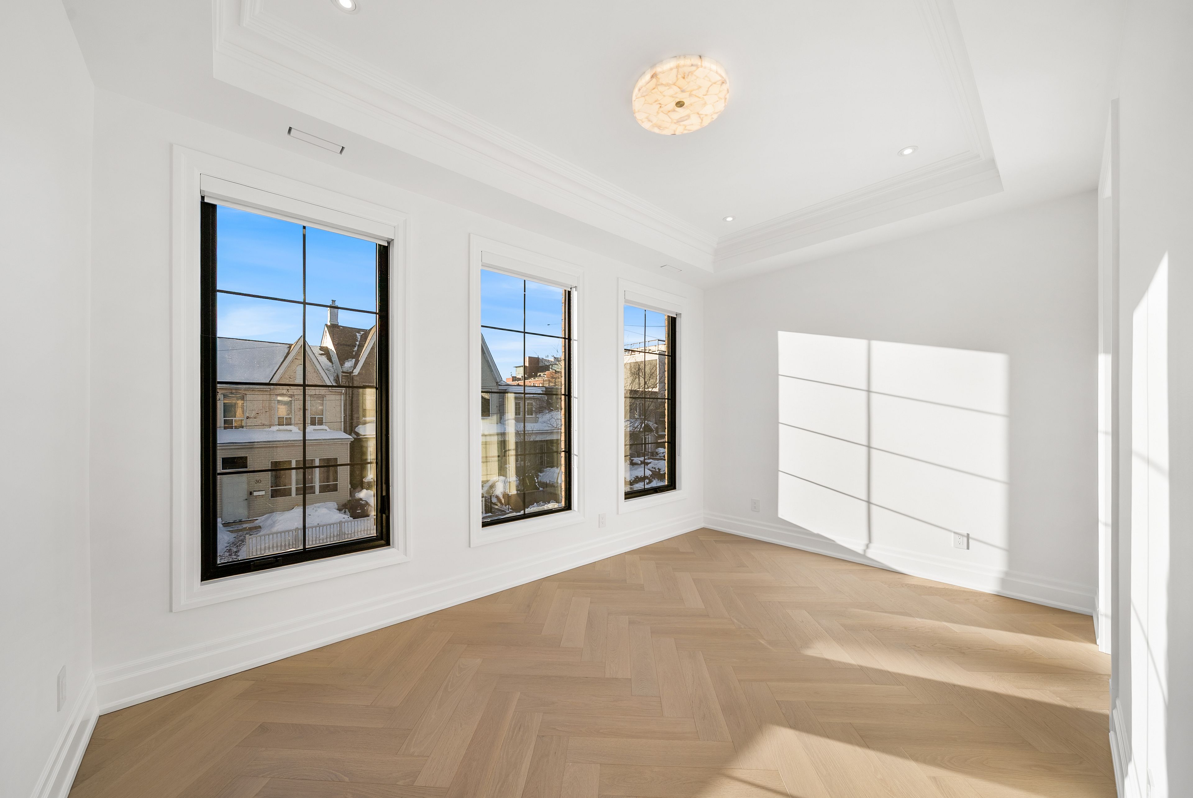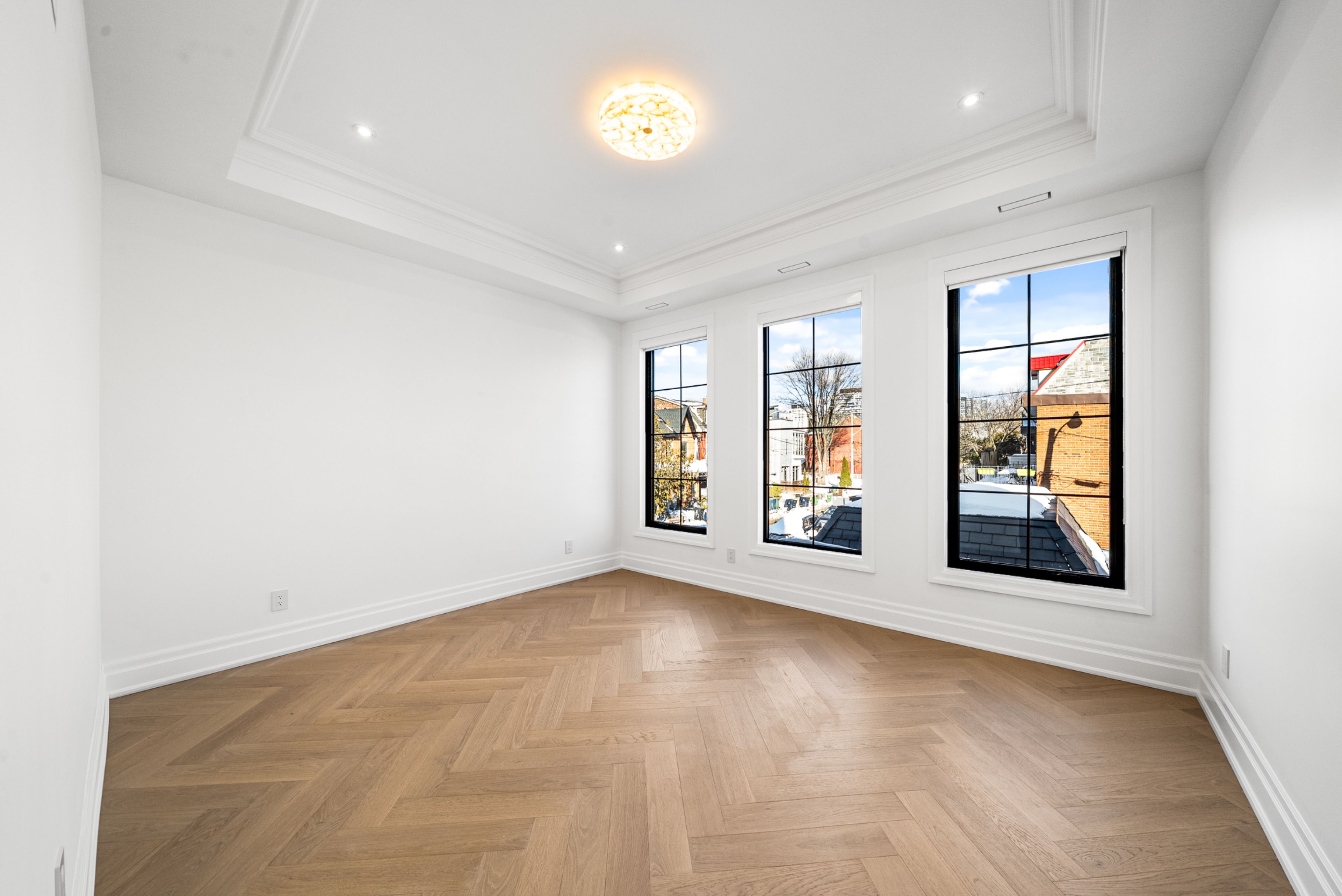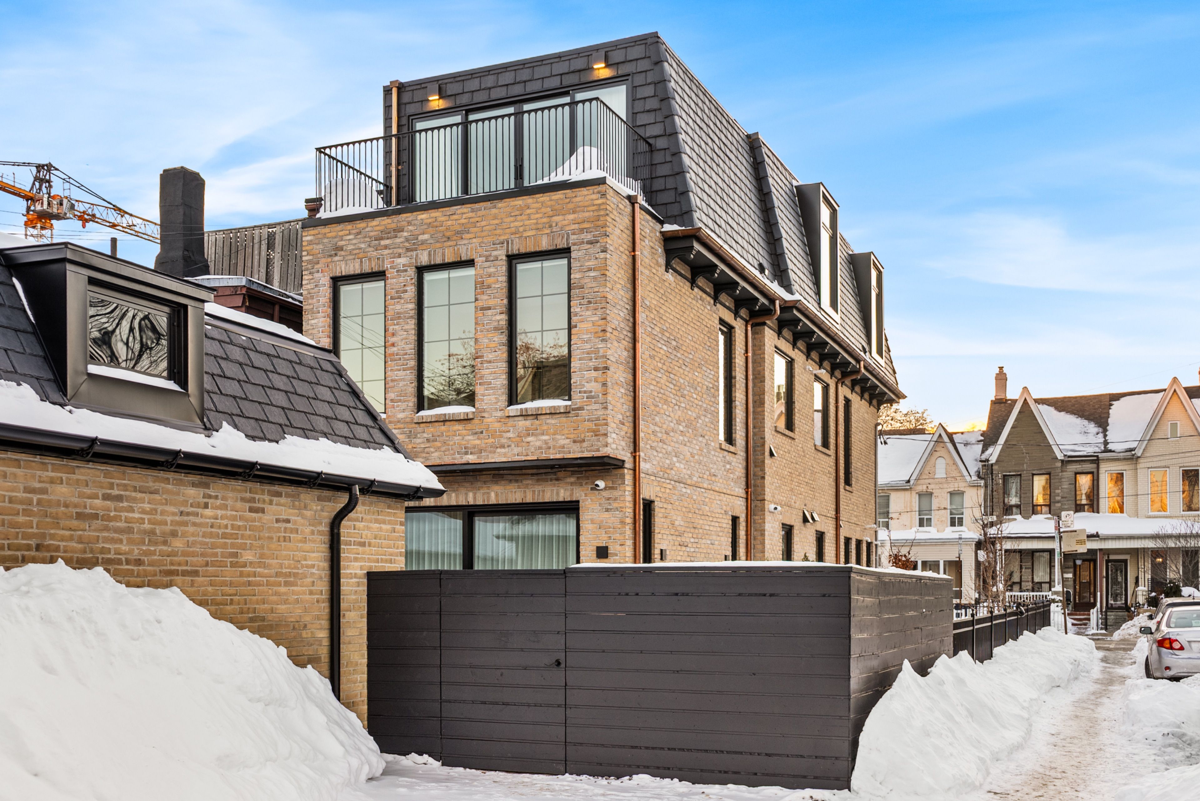 In a city celebrated for its eclectic design and dynamic spirit, this breathtaking residence stands alone, a showpiece of contemporary design crafted by award winning ancerl studio. From the moment you arrive, its distinctive brick façade, copper detailing, and privately fenced corner lot evoke the quiet sophistication of a new york brownstone, seamlessly set within the pulse of a vibrant toronto neighbourhood. Inside, a world of extraordinary detail unfolds, a fusion of parisian refinement and metropolitan sophistication. A soaring two-storey mezzanine in the center of the residence sets a dramatic tone, custom woodwork and sculptural lines anchor the home in both scale and intimacy. Every inch has been curated with intention, every surface designed to delight. Custom furnishings, sweeping sightlines, and meticulously selected materials create a narrative of quiet luxury and timeless design. At its heart this three storey home with three plus one bedrooms and five bathrooms elevates both daily life and entertainment. The third level is an indulgent primary suite, complete with a walk-through dressing room, five-piece spa-like ensuite, marble fireplace, and a private balcony revealing striking views of the cn tower, an ever-present reminder of the city's pulse just beyond the serenity. The lower level offers a generous recreation room with natural light, a private guest bedroom, full bathroom, second laundry room, and ample storage - all with the same attention to detail found throughout. Outdoors, the landscaped rear gardens offer a tranquil, private escape from the city. A stone patio directly off the main level creates an ideal setting for indoor-outdoor living. The detached garage accessed via laneway, completes this urban sanctuary with seamless functionality. Every element of this home reflects a commitment to design excellence and thoughtful craftsmanship. It is a singular opportunity to live beautifully in the heart of the city.