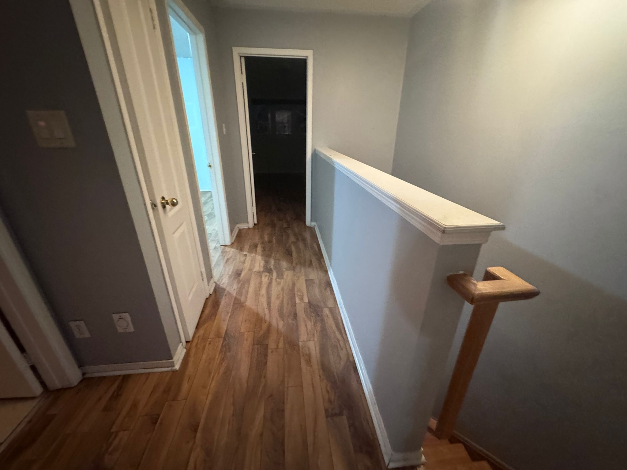• Hardwood flooring on the main floor and laminate upstairs.