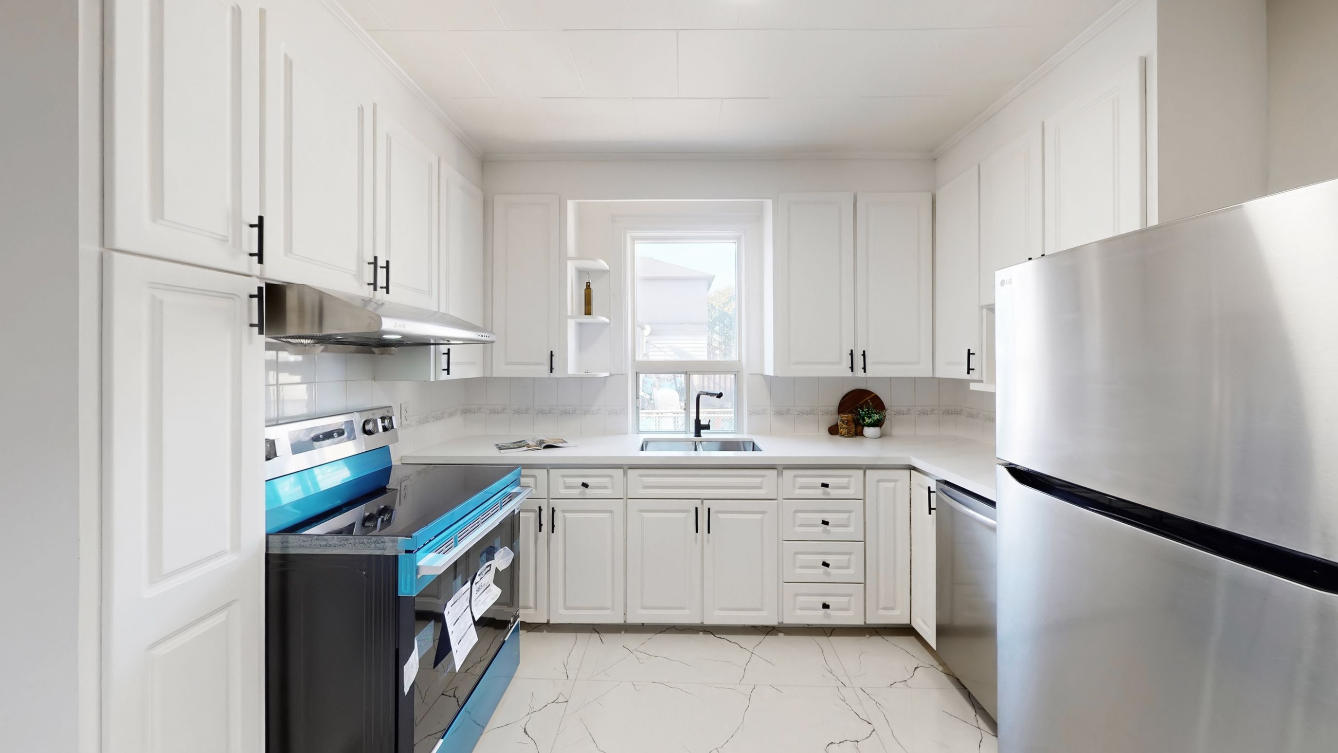 • Updated kitchen with new counters, appliances, and an eat-in area.