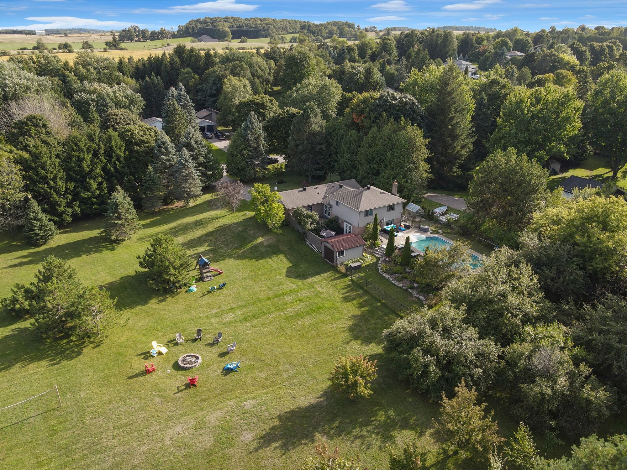 Set on a beautifully landscaped 2. 2-acre lot in a prestigious estate community, just 5 minutes from orangeville and 30 mins to the gta. This exceptional home offers the perfect blend of luxury, comfort, and outdoor living close to trails, skiing, golf, pickleball and more. This property shows true pride of ownership throughout. A grand, tree-lined driveway welcomes you to a meticulously upgraded residence featuring 4+1 bedrooms and a spacious open-concept design. Highlights include a stunning custom kitchen, elegant, upgraded bathrooms, hardwood flooring throughout, pot lights, fibre optic internet and multiple walkouts that seamlessly connect indoor and outdoor spaces. Relax by the cozy fireplace or host gatherings in the expansive family room with double garden doors leading to your private patios. Step outside and enjoy a true lifestyle property take a dip in the pool, unwind in the hot tub, or sip a drink with friends under the stars while evenings can be spent around the fire pit roasting marshmallows. Garden/work sheds offer added convenience; all set in total privacy. A rare opportunity to own a turnkey escape that has it all. This home has extensively been upgrades. Pls see attached upgrades by sellers