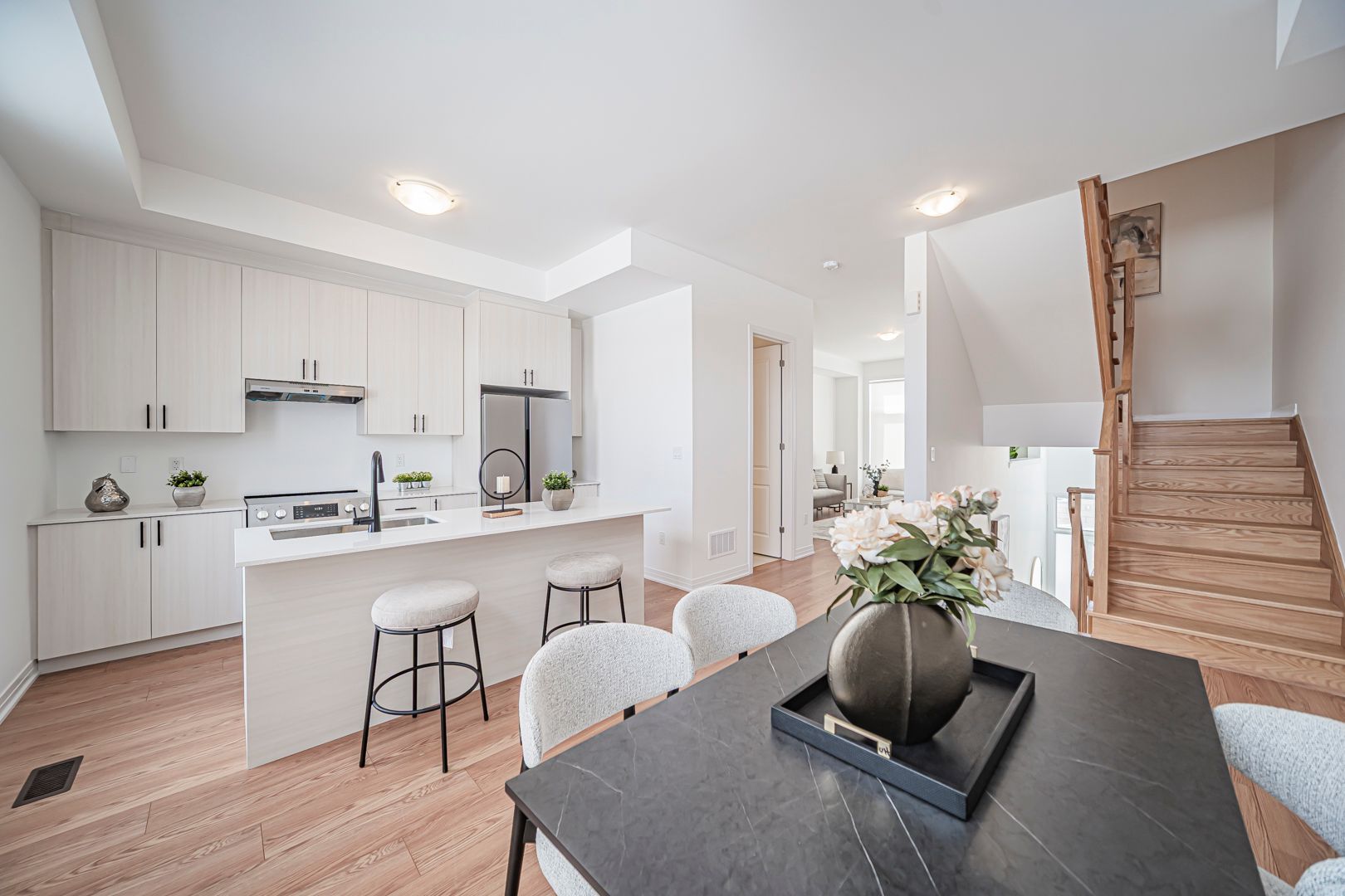 Exceptional 3-storey freehold townhome ***backing onto ravine*** in the prestigious ivylea community of richmond hill. Featuring 4 bedrooms and 4 bathrooms, this well-designed home offers a functional layout ideal for modern family living. The main level showcases impressive 10' smooth ceilings and wide plank laminate flooring, creating a bright and contemporary open-concept living space. The upper floor features 9' ceilings and spacious bedrooms, including a primary suite with a freestanding soaker tub, roman filler and separate glass-enclosed shower (as per plan). The kitchen is appointed with quartz countertops, undermount sink, chrome single-lever faucet and extended upper cabinets for added storage. Walk-out lower level (as per builder plan) adds versatility and natural light. Enjoy peaceful ravine views from the backyard while being minutes to hwy 404, transit, parks, trails, shopping and top-ranking schools. A rare opportunity to own in one of richmond hill's most desirable communities.