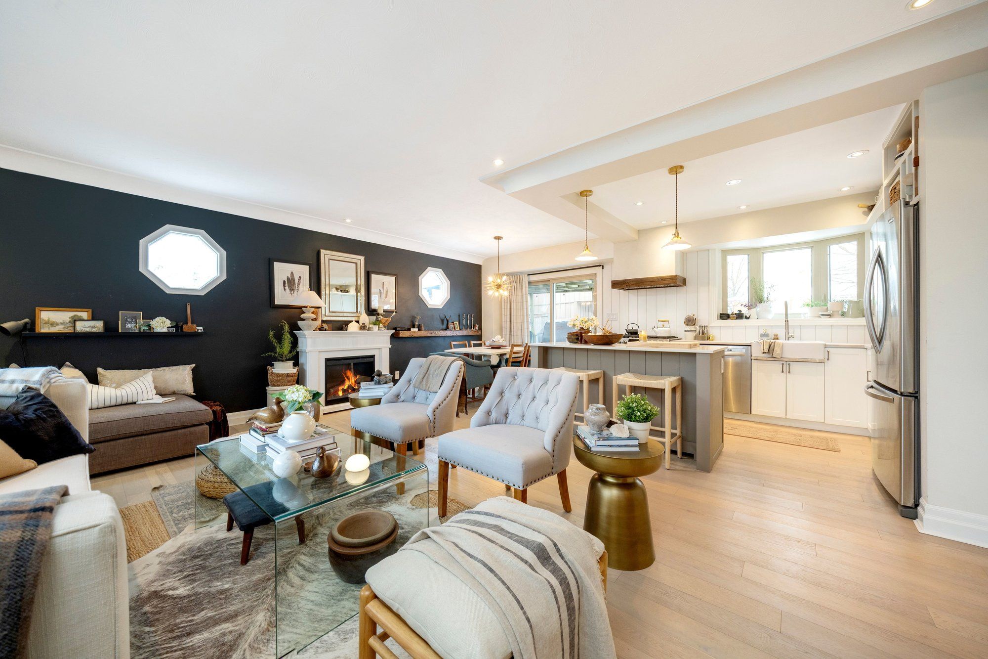 Refined living for the modern family... Welcome to a home where everyday life feels a little more elevated. Offering 2,638 sq ft of beautifully finished, carpet-free living space, this 1 1/2 storey residence blends timeless style with thoughtful function in the heart of milton heights. From the moment you arrive you are greeted by a charming covered front porch and tranquil pond, you'll feel the sense of space and privacy this property provides. Inside, heated tile floors, engineered hardwood, crown moulding, pot lights, and a statement fireplace create an atmosphere that is both sophisticated and welcoming. The open-concept main floor is designed for gathering. A stunning kitchen with quartz island, solid acacia butcher block counters, stainless steel appliances, and a gas stove overlooks the backyard deck; perfect for hosting summer dinners while the kids play outside. Upstairs, the primary suite offers a true retreat with a spa-inspired ensuite featuring a rain-head shower, deep soaker tub, built-ins, and a dedicated vanity space- your own private escape at the end of the day. The finished lower level with separate entrance provides flexibility for extended family, teens, a private office, or future in-law potential. And for families who need space- whether for vehicles, hobbies, or weekend projects, the heated double detached garage with 60 amp service and an expansive 10-car driveway is a rare luxury. Nestled in milton heights at the base of the niagara escarpment and nearby kelso conservation this home offers a peaceful, family-friendly neighbourhood with scenic walking trails, nearby parks, and easy access to schools, shopping, and highway 401. Just a short drive to downtown milton where you can enjoy the farmer's market, restaurants & shops- the perfect balance of tranquility and convenience. Elegant. Functional. Designed for real life. This is the kind of home families grow into, and never want to leave.