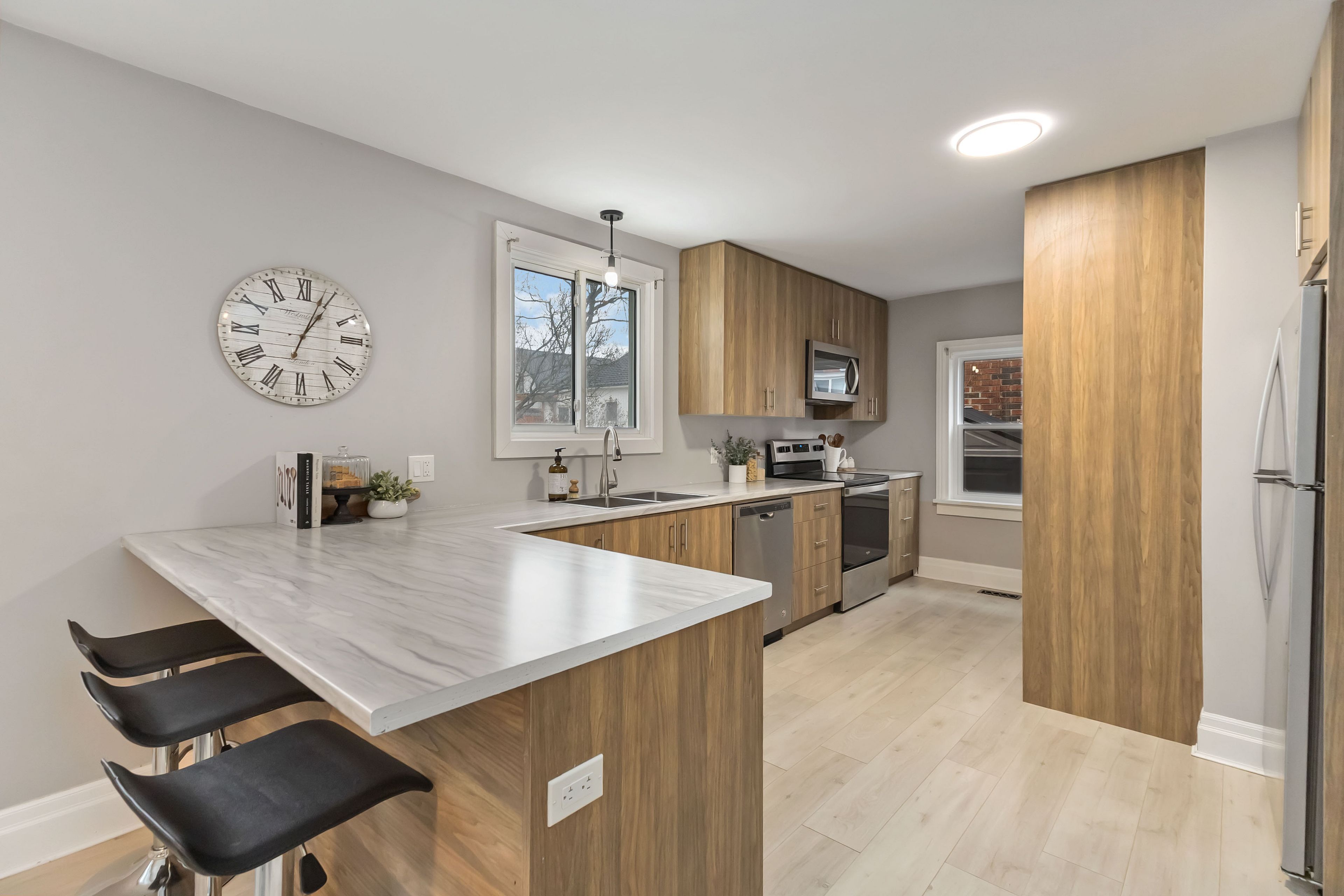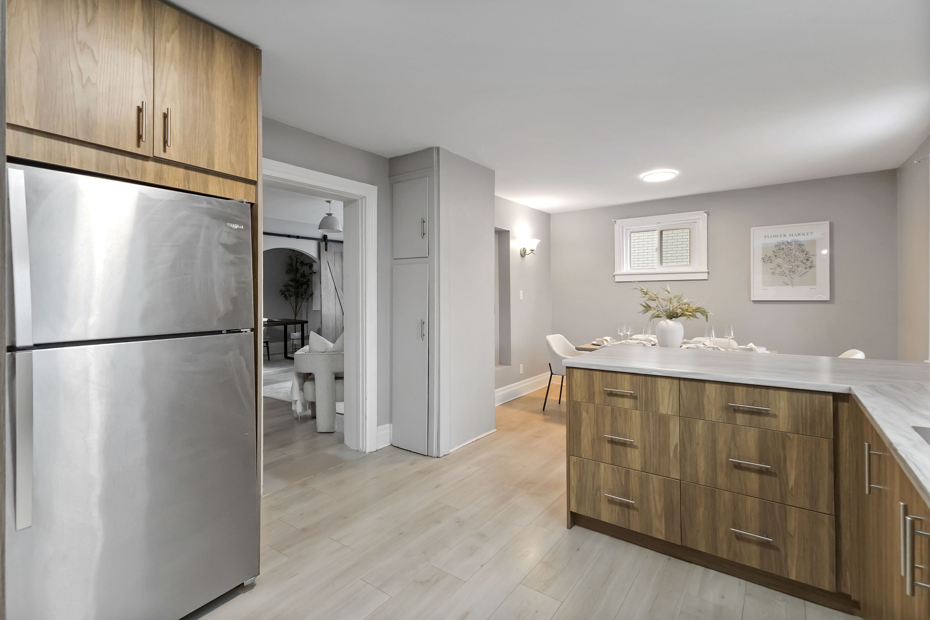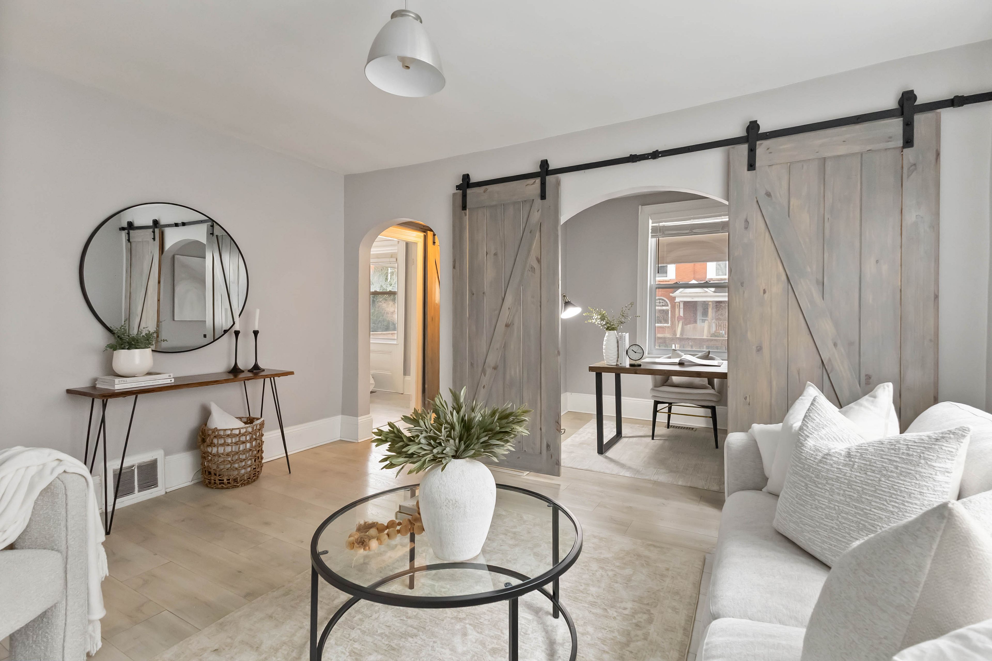 • Bonus office with stylish barn doors for a quiet study or remote work.