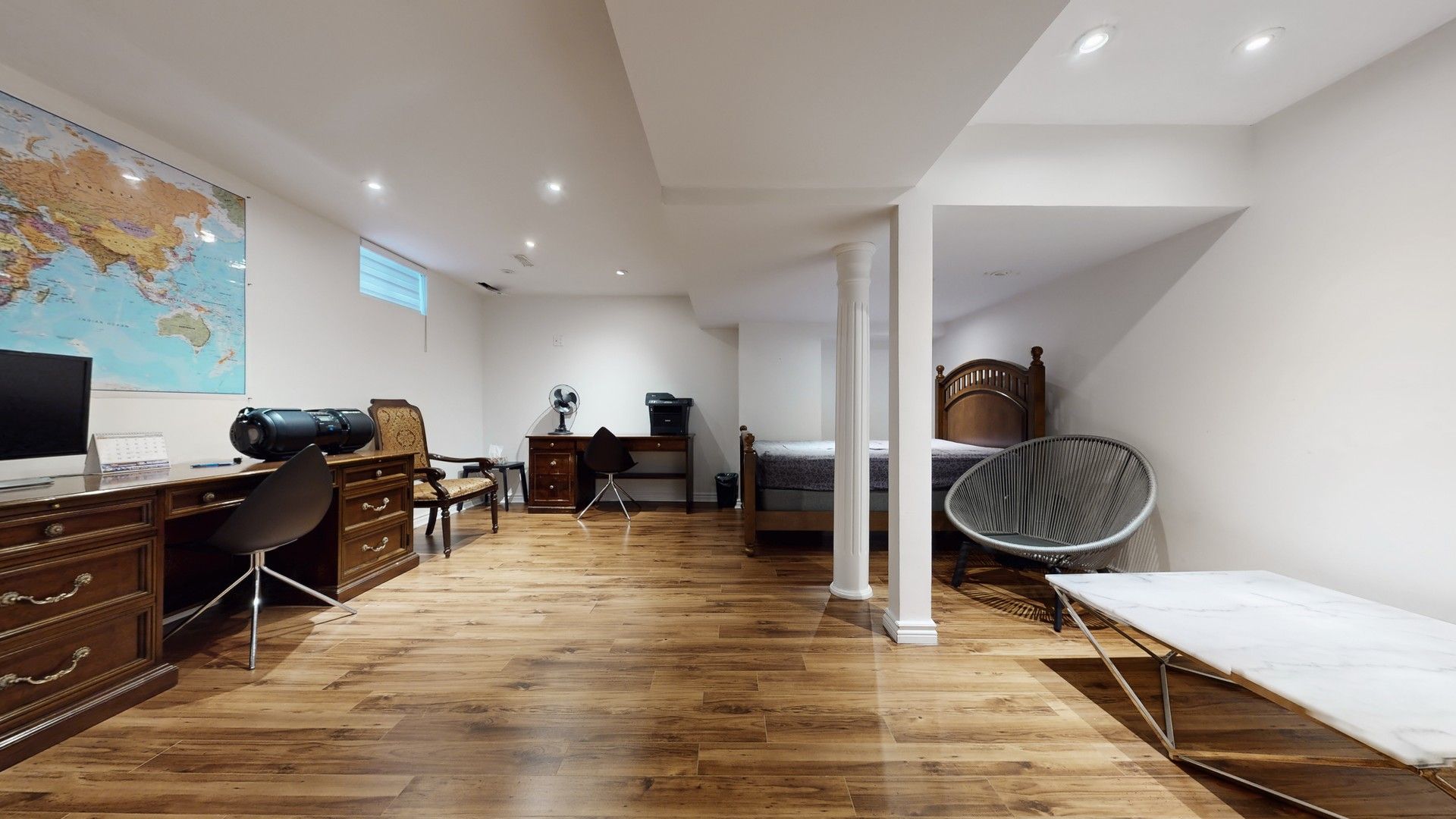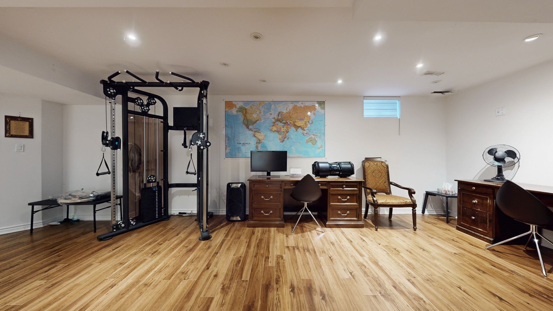 • Finished basement suitable for a home office or guest space.