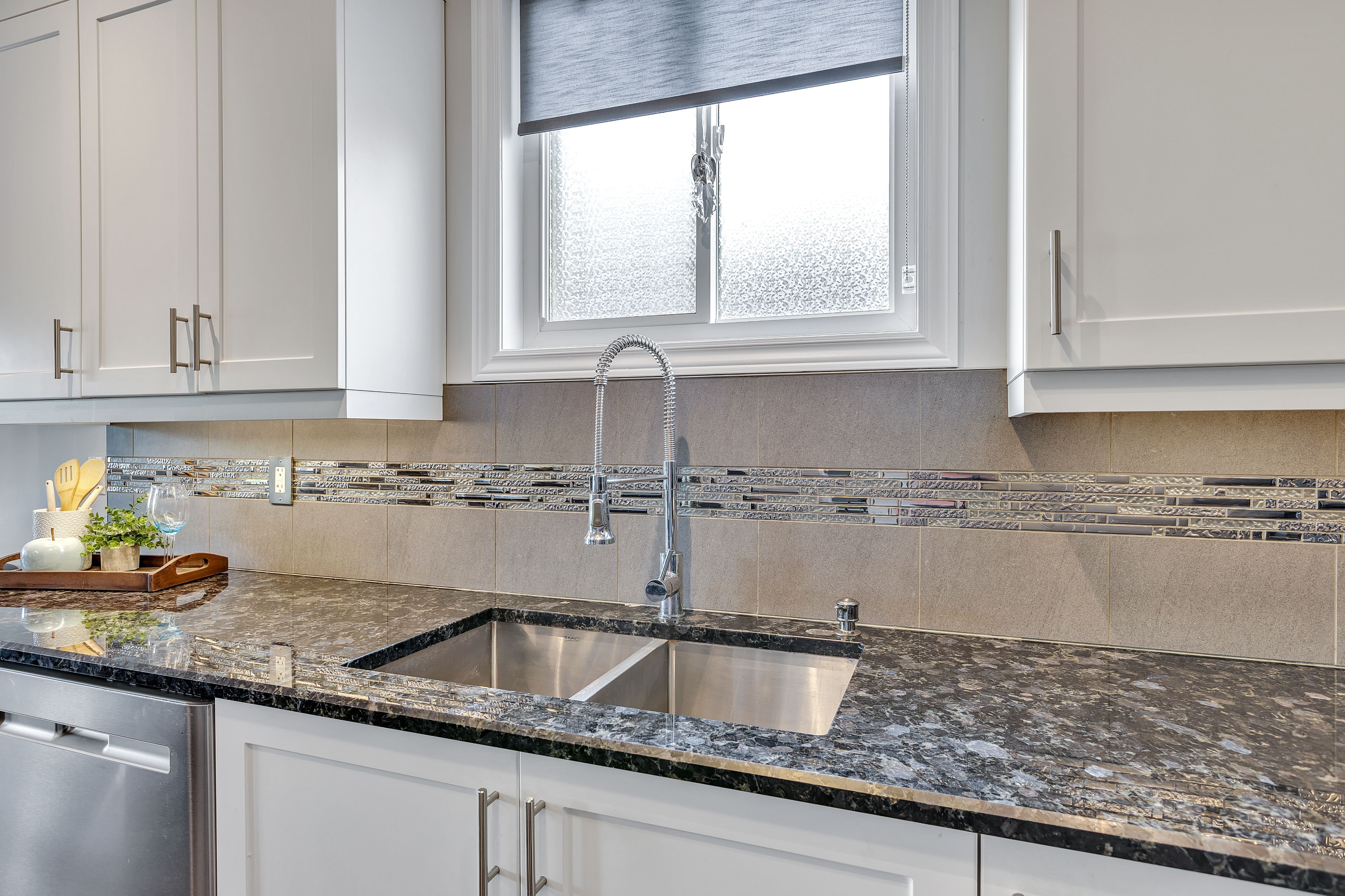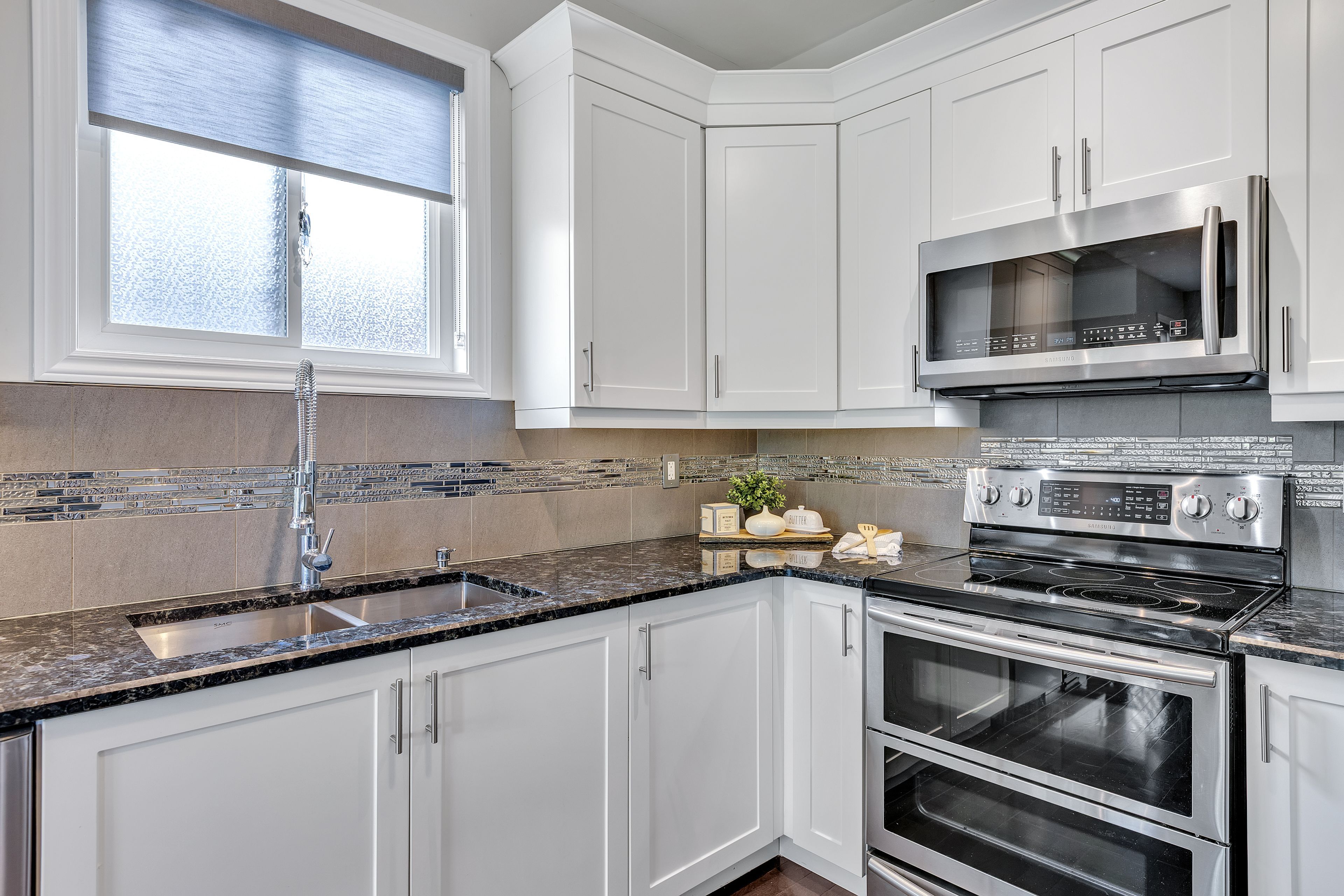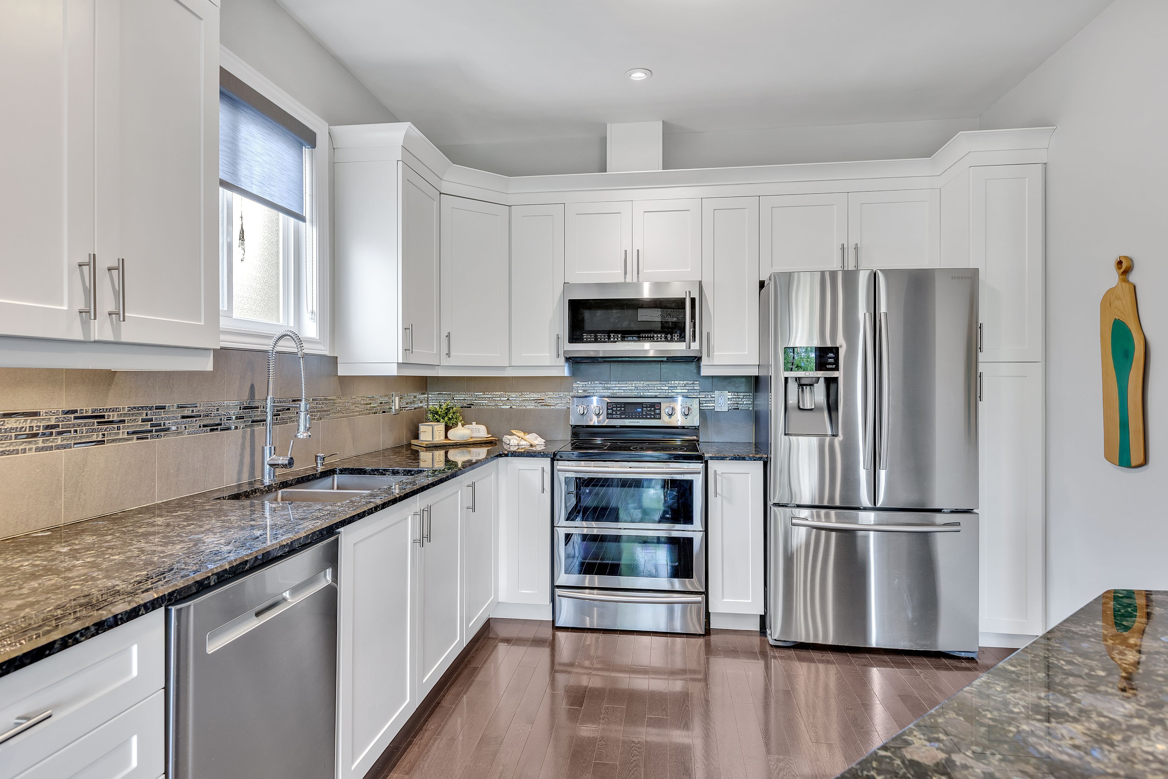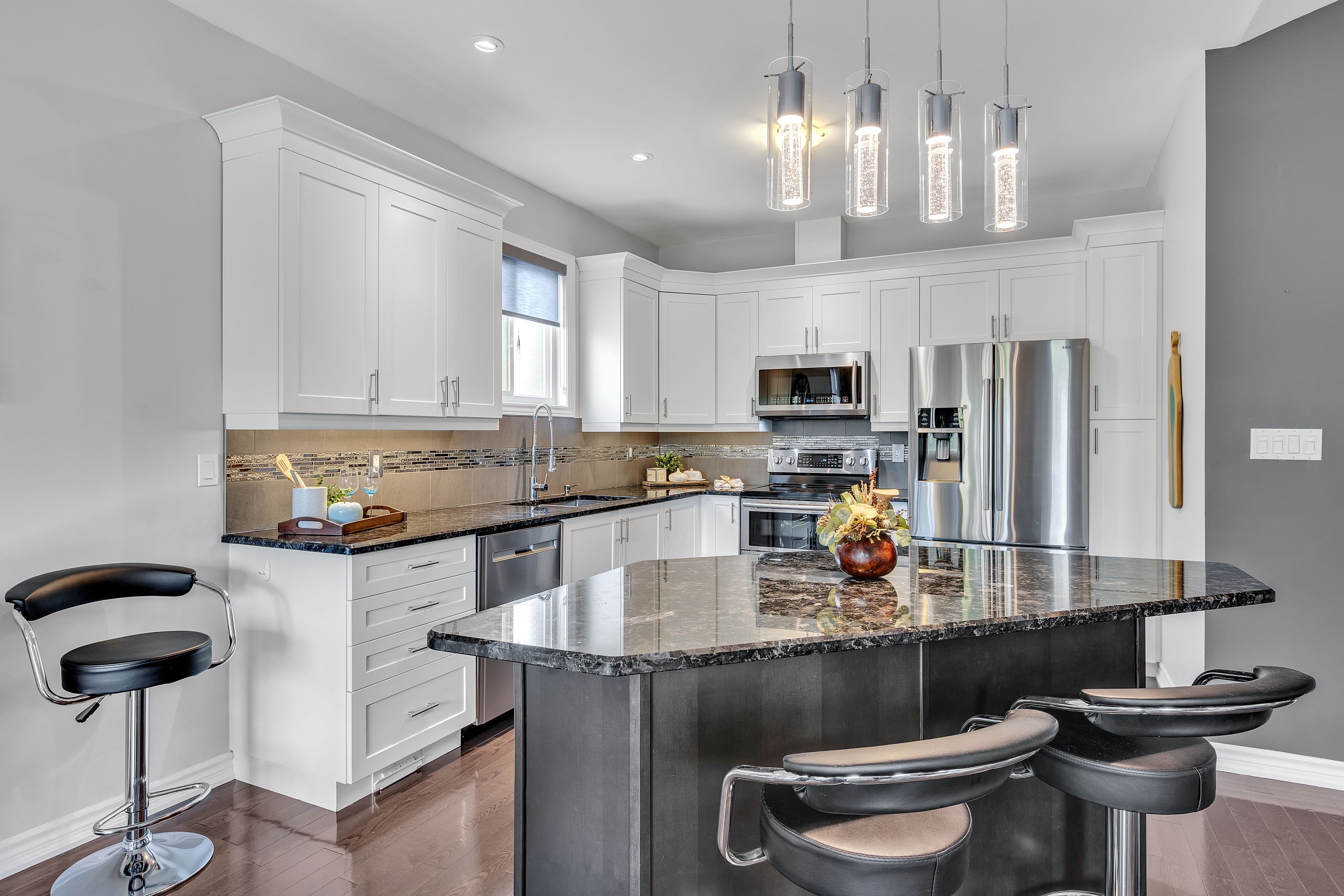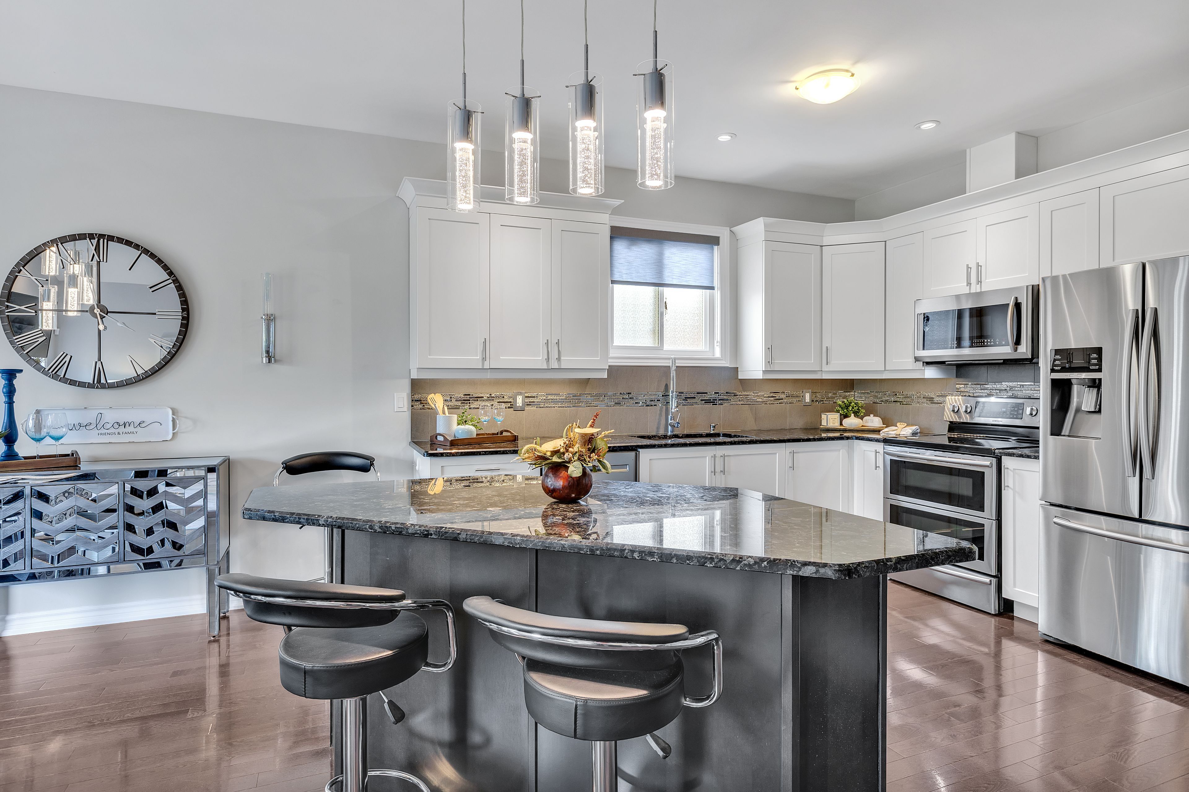 • Gourmet kitchen equipped with granite countertops and stainless steel appliances.