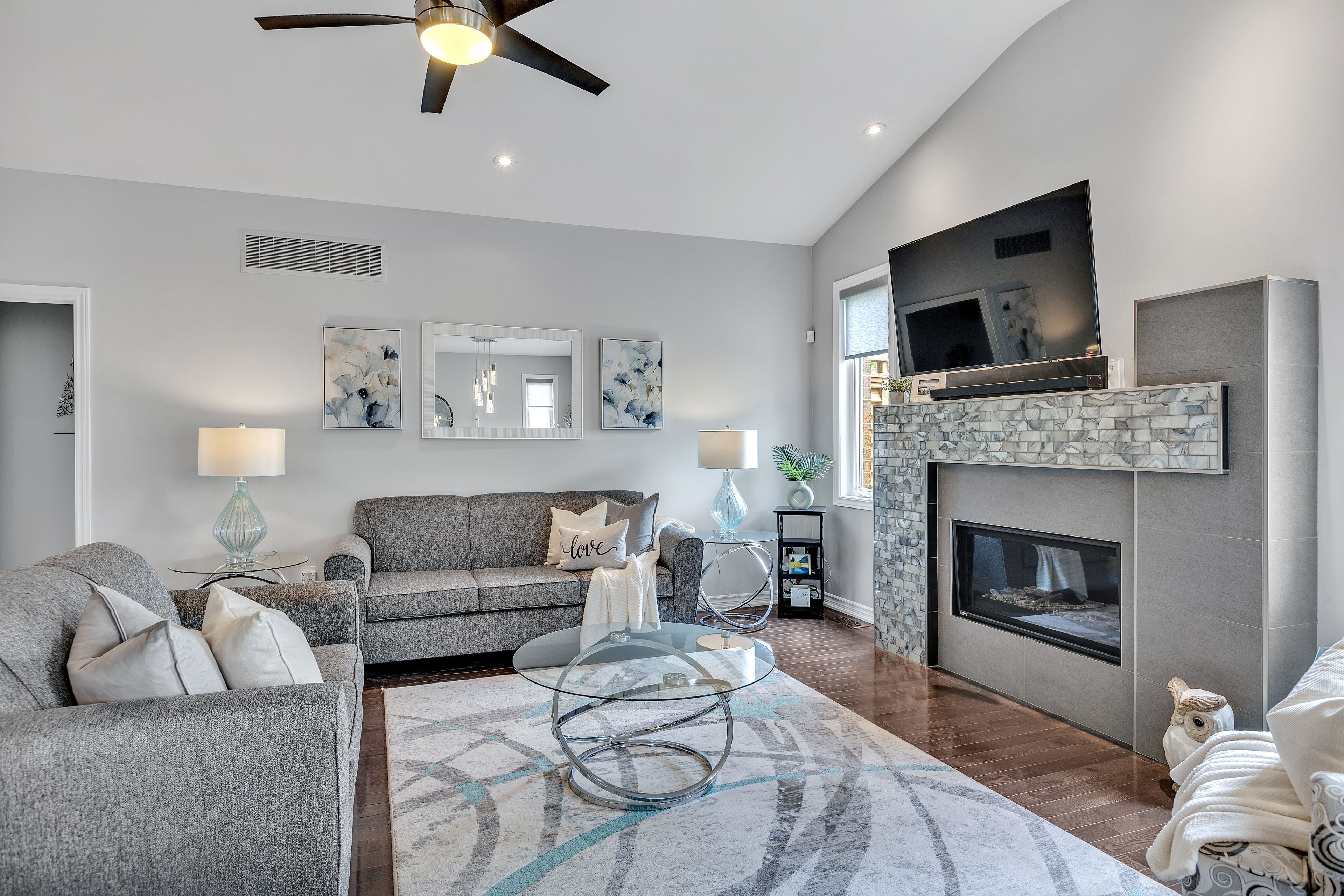 • Spacious interior features hardwood floors, high ceilings, and abundant natural light.