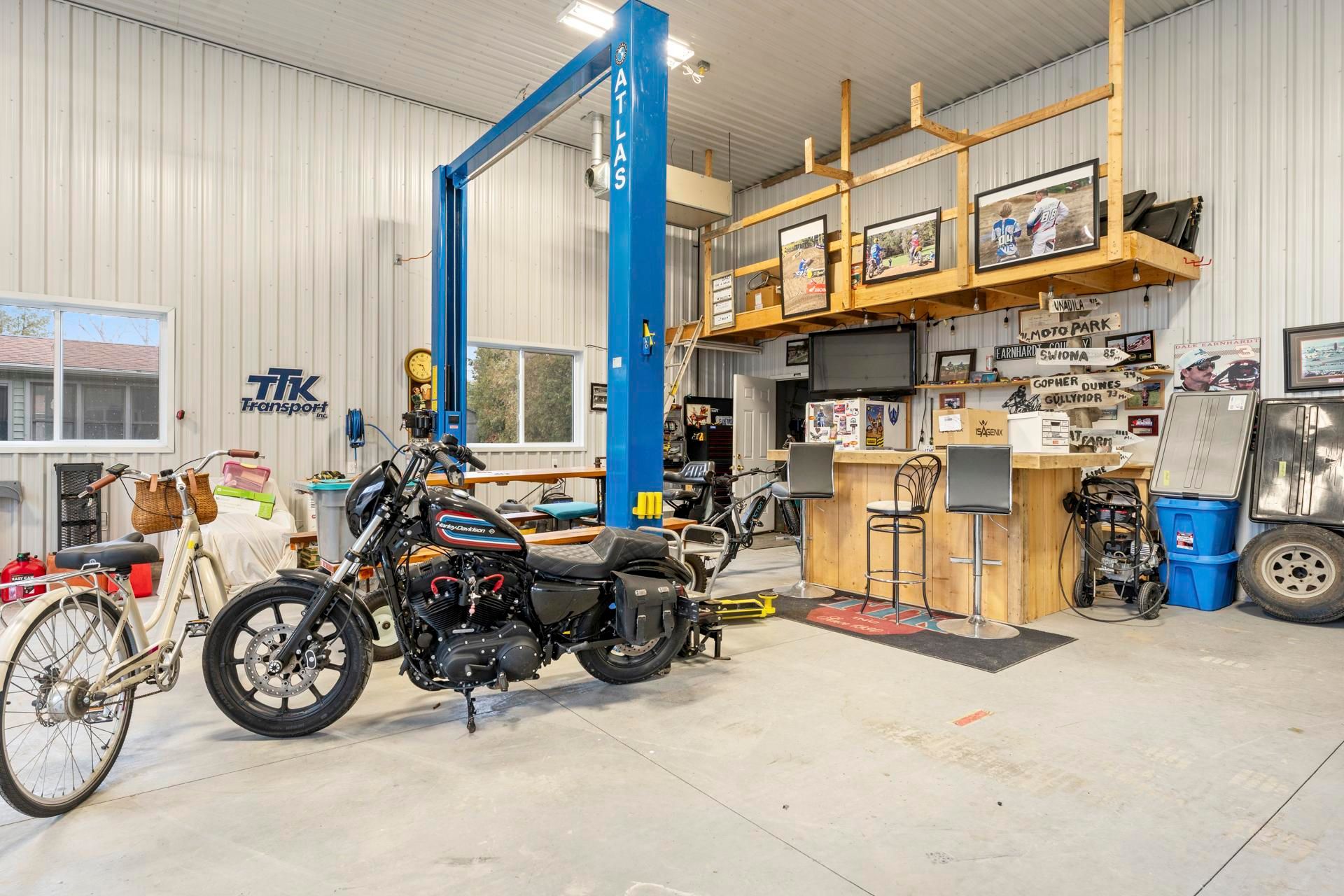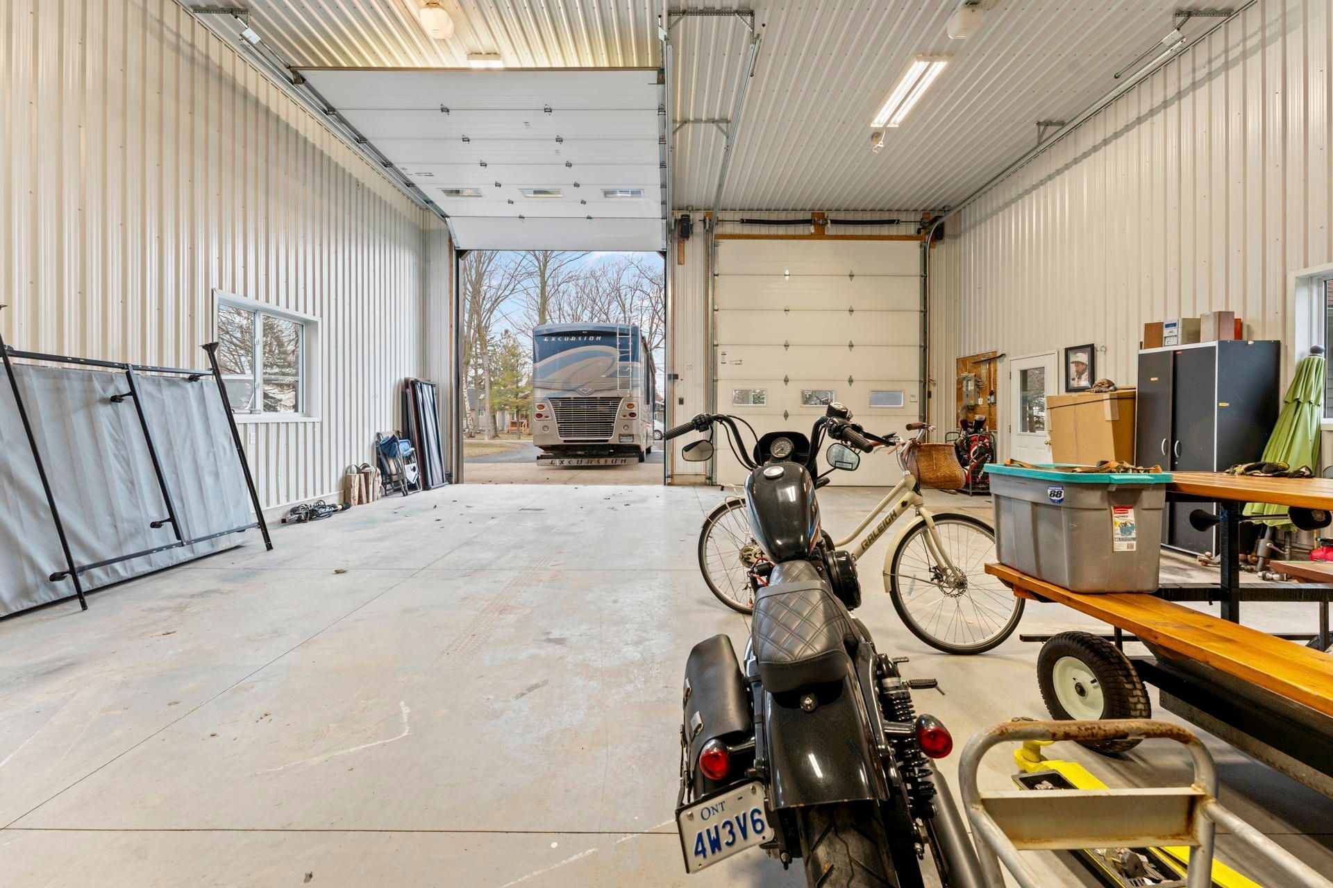 • Massive detached shop with heating, plumbing, and ample space for projects.
