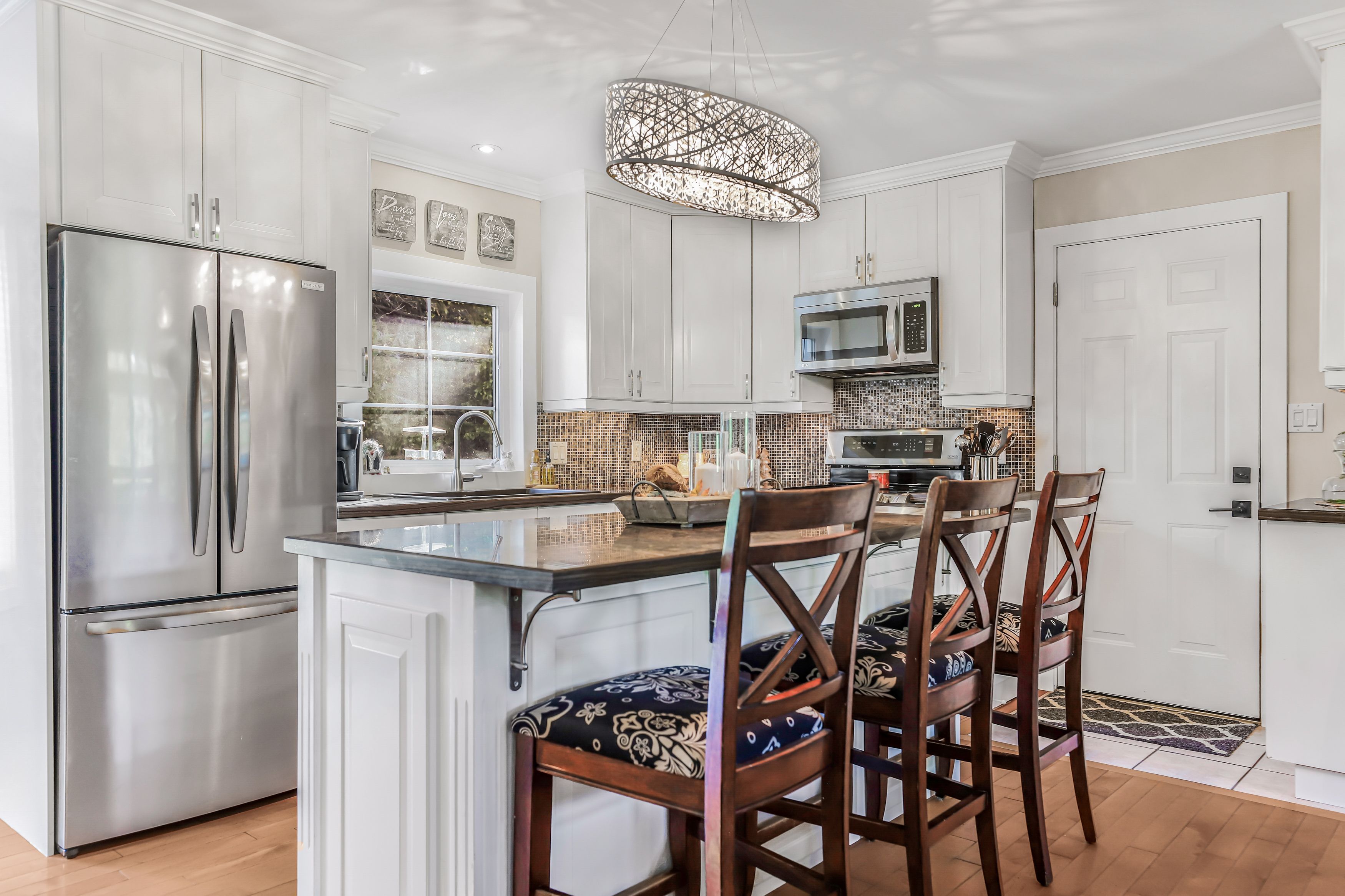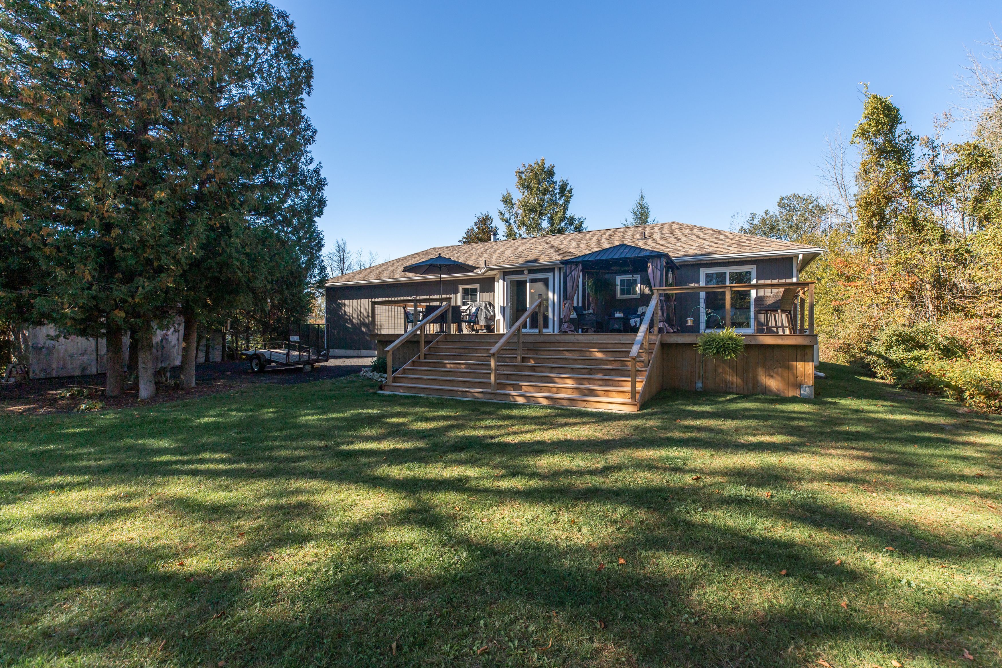 Experience the best of bruce peninsula living at 23 pierce street north in oliphant. Set on a peaceful, tree-lined lot at the end of a quiet dead-end street, this beautifully maintained five-bedroom, two-bath raised bungalow blends modern comfort with the calm sophistication of life by the lake. Backing onto forest and just 1 km from the sparkling shores of lake huron, its the ideal setting for swimming, boating, or taking in oliphant's world-famous sunsets. Built in 2004, this thoughtfully designed home offers fully finished levels with bright, inviting spaces throughout. The main level features an open-concept living area anchored by a cozy wood stove, perfect for cool evenings & winters. The kitchen impresses with abundant cabinetry, beautiful stone countertops, stainless steel appliances, and seamless flow to the dining area and new spacious back deck (2024). Three comfortable bedrooms plus a full main bath and private primary ensuite complete this level. The lower level provides exceptional versatility with two additional bedrooms, a spacious family room, a large storage area, a newly spray-foamed cold room, and a bright, functional laundry space. Outside, enjoy your private retreat on a large 111 ft 281 ft lot. Relax on the stamped-concrete front patio or retreat to the insulated and wired bunkie, perfect for guests or hobbies. The detached garage (2020) offers ample storage and workspace, while the attached garage is insulated and heated, ideal for parking, projects, or use as a casual hangout space. Notable updates include roof (approx. 2015), furnace/ac/hvac (2019), recycled-asphalt driveway (2025), new fibre internet & a 200-amp electrical panel wired for a future hot tub. Enjoy reliable connectivity with bruce telecom or new rogers fibre-optic service brought right to the home. A rare combination of space, style, and setting just moments from the lake. This property captures the essence of refined living on the bruce peninsula!