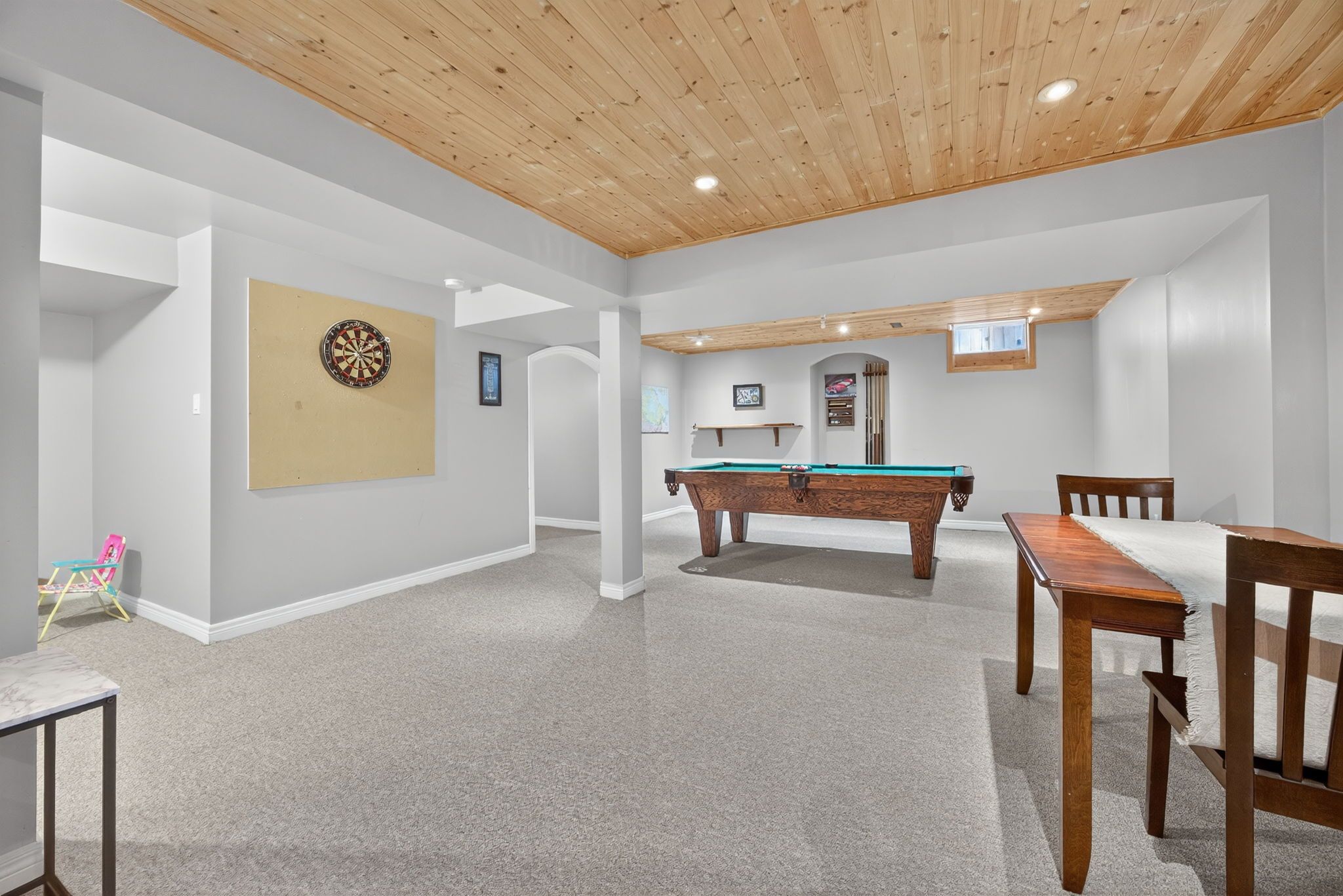 • Finished basement ideal for entertaining, gaming, or movie nights.