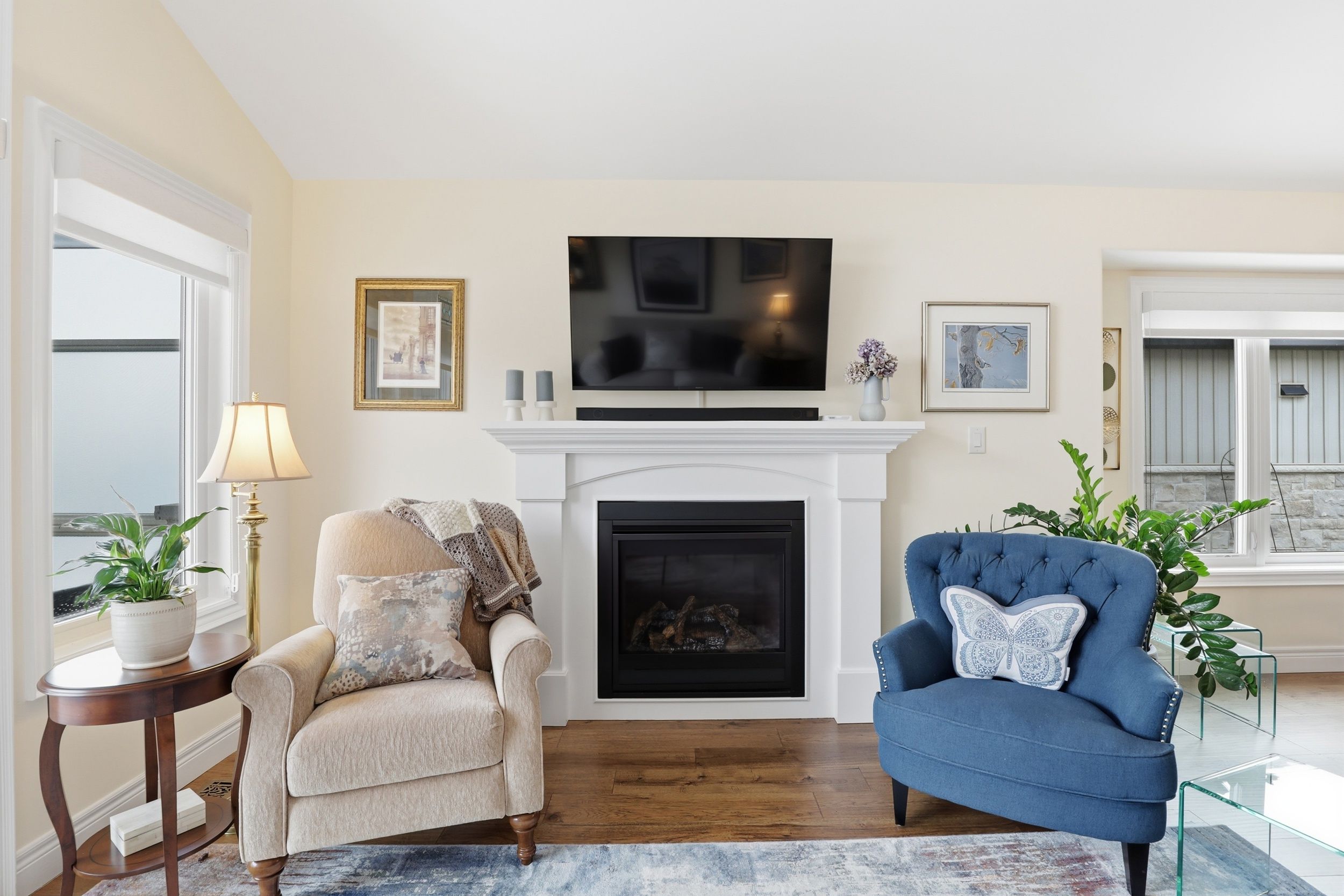 Beautifully maintained 2 bedroom, 1. 5 bathroom semi-detached home located in a quiet enclave of smithville. Built in 2018, this modern home offers 1,093 sq ft of thoughtfully designed living space, perfect for anyone seeking low-maintenance living in a growing community. Open concept main floor boasts a spacious living and dining area highlighted by a cozy gas fireplace. The kitchen flows seamlessly into the main living space, making entertaining effortless. A convenient powder room completes the main level. The generous primary bedroom includes a full 3 pc bathroom, offering comfortable and practical living space. Step outside to enjoy the private backyard featuring a walk-out to a 2 tiered patio with modern glass railings. Ideal space for summer barbecues or morning coffee. The unfinished basement provides excellent potential for future expansion, whether you envision a rec room, home office, or additional bedroom space. Low monthly fees that cover lawn maintenance, snow removal and lawn sprinkler. This is one to see!