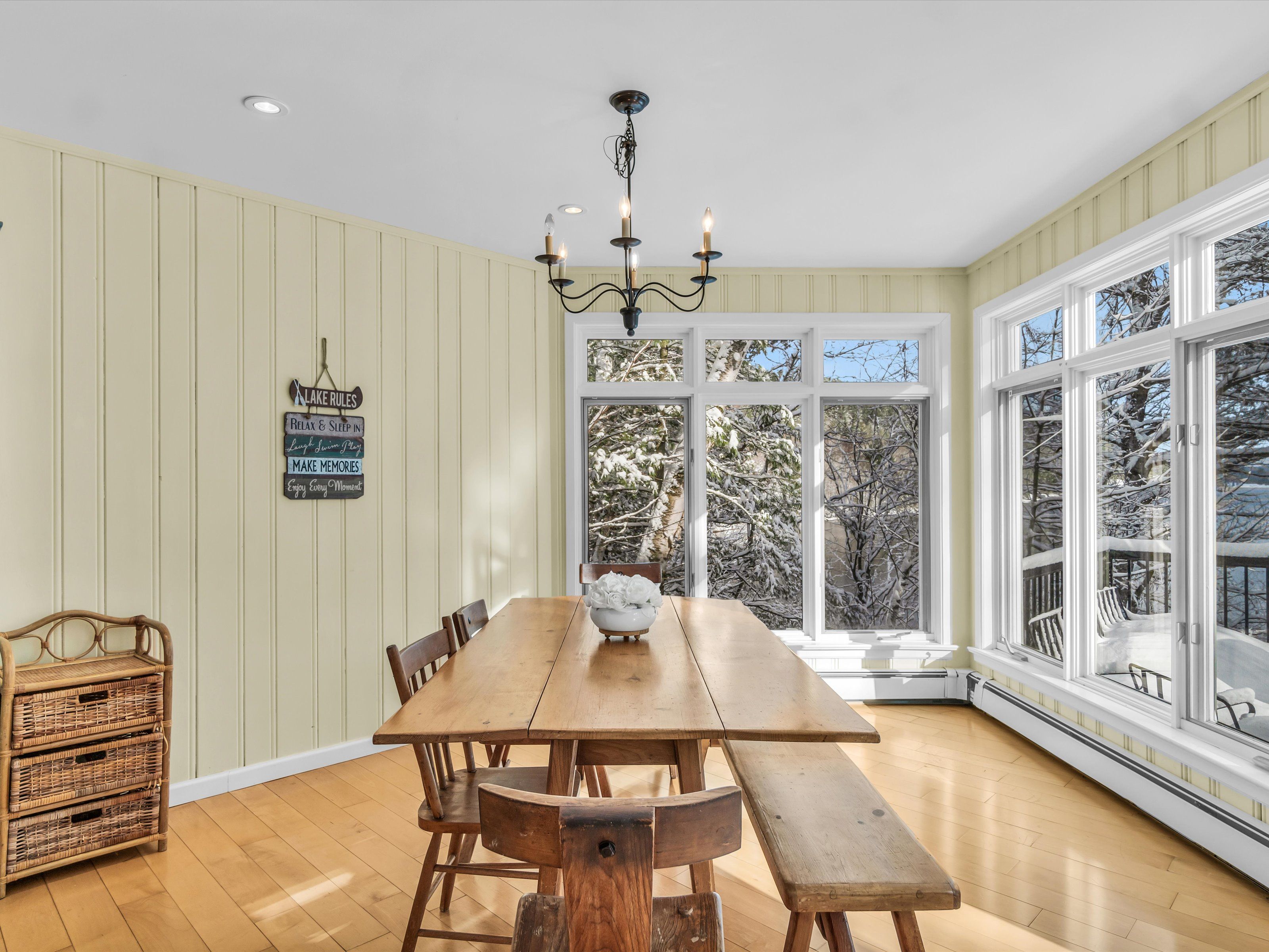 • Includes cozy sunroom, firepit area, and dock for easy lake access.