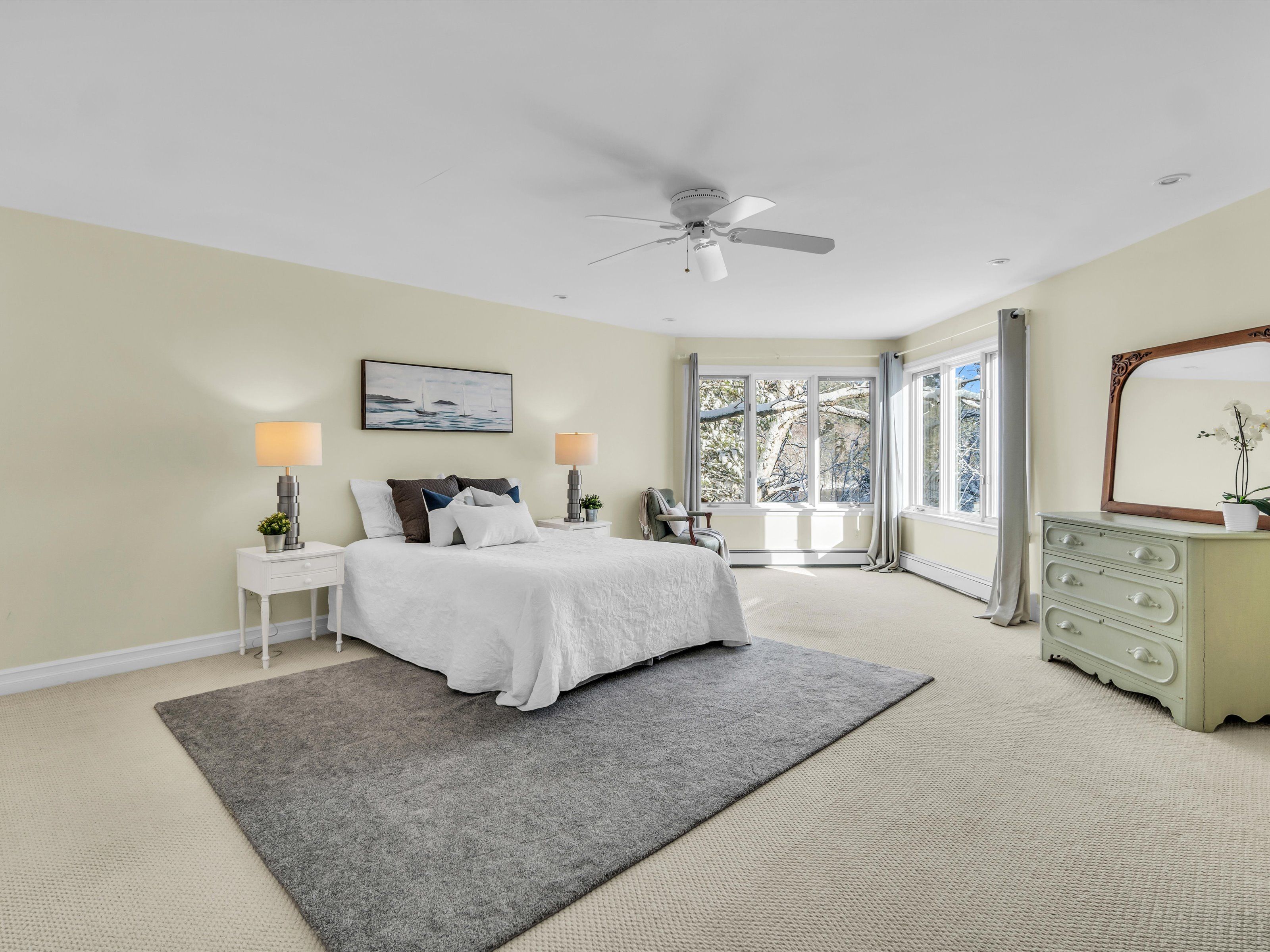 Nestled on scenic mary lake in huntsville's coveted chain of four lakes, this fully winterized waterfront retreat offers 330 ft of shoreline and 1. 3+ acres of gently sloping & level, southeast-facing land with spectacular sunrises. The spacious 4+1 bdr & 3 bath home boasts an open-concept main level w/a large eat-in kitchen, dining and family room & walkout to a new private deck with unobstructed lake views. Primary bdr features a 4-pc ensuite and serene lake vistas, while additional bedrooms provide plenty of space for family and guests. Enjoy a cozy sunroom, firepit area, two bunkies (one for sleeping, one for storage), and a premium dock system for effortless lake access. With 40+ miles of navigable waterways, this property is perfect for boating, swimming, and fishing. Complete with a huntsville short-term rental accommodation (stra) license, this rare offering blends privacy, comfort, and natural beauty ideal for year-round living or investment.