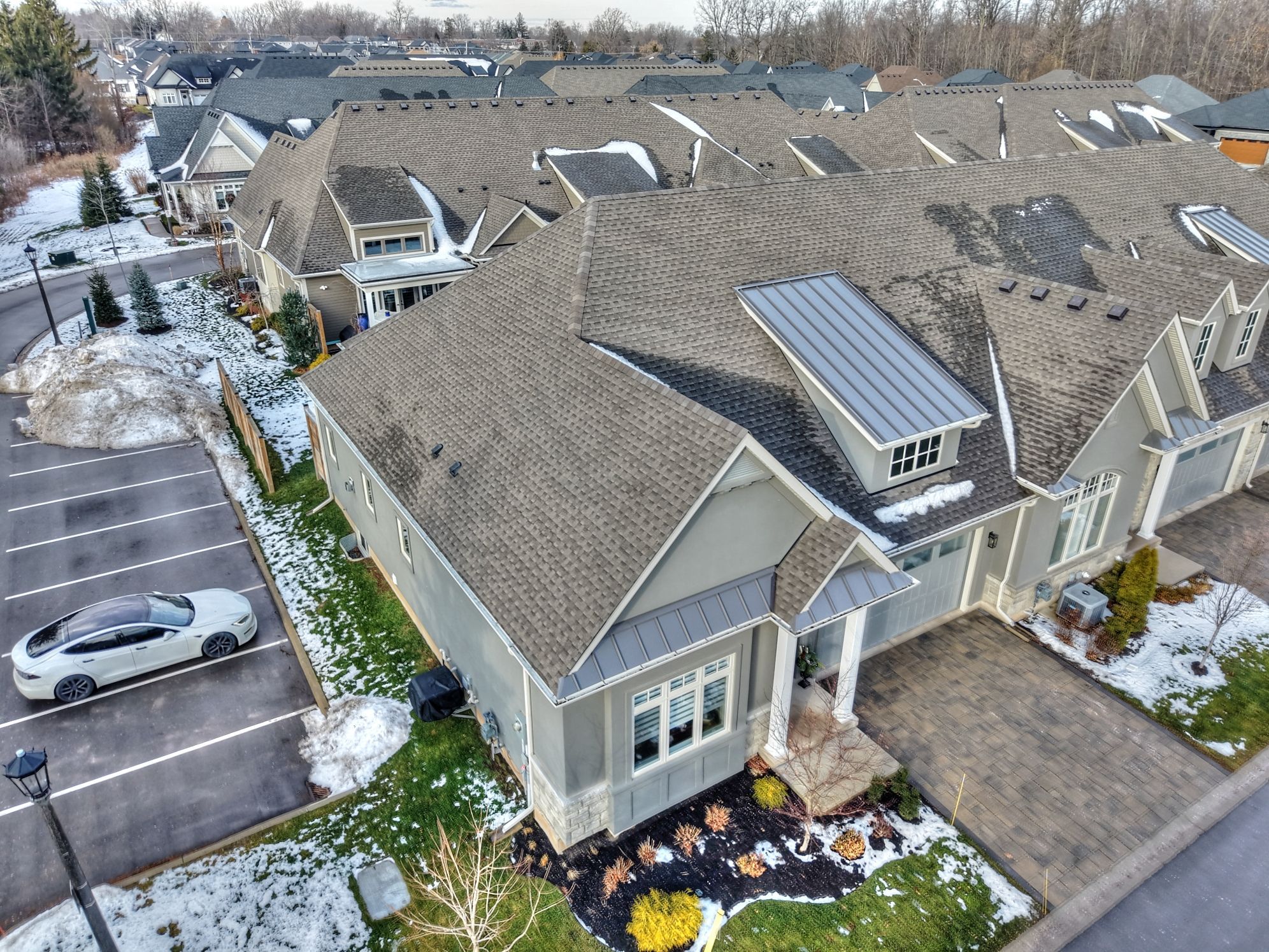 The oaks at six mile creek by blythwood homes in ridgeway is nestled against forested conservation lands, and presents a rare opportunity to enjoy a gracious and fulfilling lifestyle. This 3-bedroom, 3 bathroom, maple end townhome offers bright open spaces for entertaining and relaxing. Luxurious features and finishes include 10ft vaulted ceilings, great room fireplace, primary bedroom with ensuite and walk-in closet, kitchen island with quartz counters and 3-seat breakfast bar, and patio doors to the covered deck. The finished basement is perfect for guests with their own bedroom, bathroom and recroom. Exterior features include lush plantings on the front and rear yards with privacy screen, fully irrigated front lawn and flower beds, fully sodded lots in the front and rear, poured concrete walkway at the front and a paver stone double wide driveway leading to the 2-car garage. The townhomes at the oaks are condominiums, meaning that living here will give you freedom from yard maintenance, irrigation, snow removal and the ability to travel without worry about what's happening to your home. It's a short walk to the shores of lake erie, or historic downtown ridgeway's shops, restaurants and services by way of the friendship trail and a couple minute drive to crystal beach's sand, shops and restaurants.