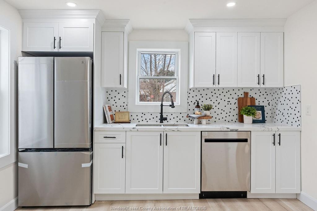 • Custom kitchen with quartz countertops and new stainless steel appliances.