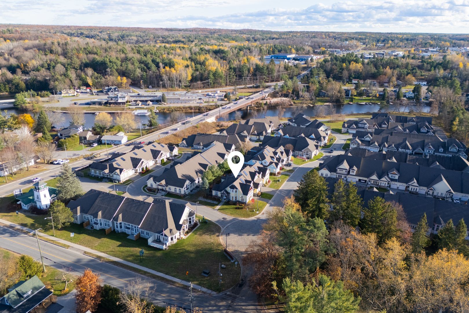 • End unit townhome in vibrant Waterways community with Muskoka River access.