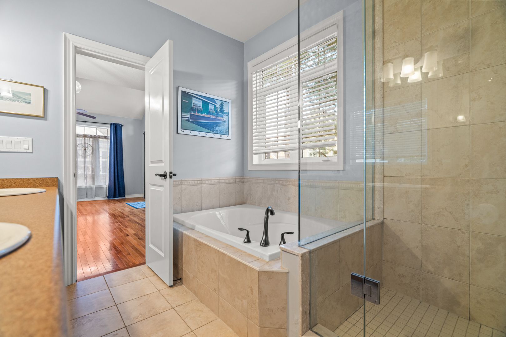 This stunning end unit townhome is located in the highly sought after waterways community, and offers access to the muskoka river and a maintenance free lifestyle. Originally built as the model home this grand property boasts an array of upgrades and higher end features & finishes. The impressive great room has cathedral ceilings, a full height stone fireplace and large windows that gift the space with natural light. The chef's kitchen and open concept dining room offer an ideal area to entertain and host dinner parties with its large island, granite counter tops and unobstructive views of neighbouring green space and mature trees. The generous main floor primary suite offers vaulted ceilings, a 5 piece ensuite , walk in closet and direct access to the expansive private deck- a peaceful retreat and perfect place to enjoy morning coffee or unwind at the end of the day. A laundry room/mudroom with access via the single car garage and a powder room complete the main level. Upstairs you will find an inviting open to below loft space overlooking the great room along with three spacious bedroom and a four piece washroom- perfect for family or guests. The lower level is full of potential, with eight foot high ceilings and plumbing roughed in for another bathroom. The home also features an upgraded water filtration system. Mature perennial gardens & landscaped stone pathway add additional curb appeal and fibre internet keeps you connected. Maintenance free living at its finest. Lawn care, complete snow removal and garbage/recycle pick up are provided with your monthly maintenance fee ($287). This beautiful home is situated next to annie williams park, where you will find beach areas, a swim dock, room for your pets to play and year round events including theatre performances and the popular muskoka arts & crafts show. Enjoy the best of muskoka living in this quiet, friendly neighbourhood just minutes from downtown bracebridge and its many shops, restaurants and amenities.