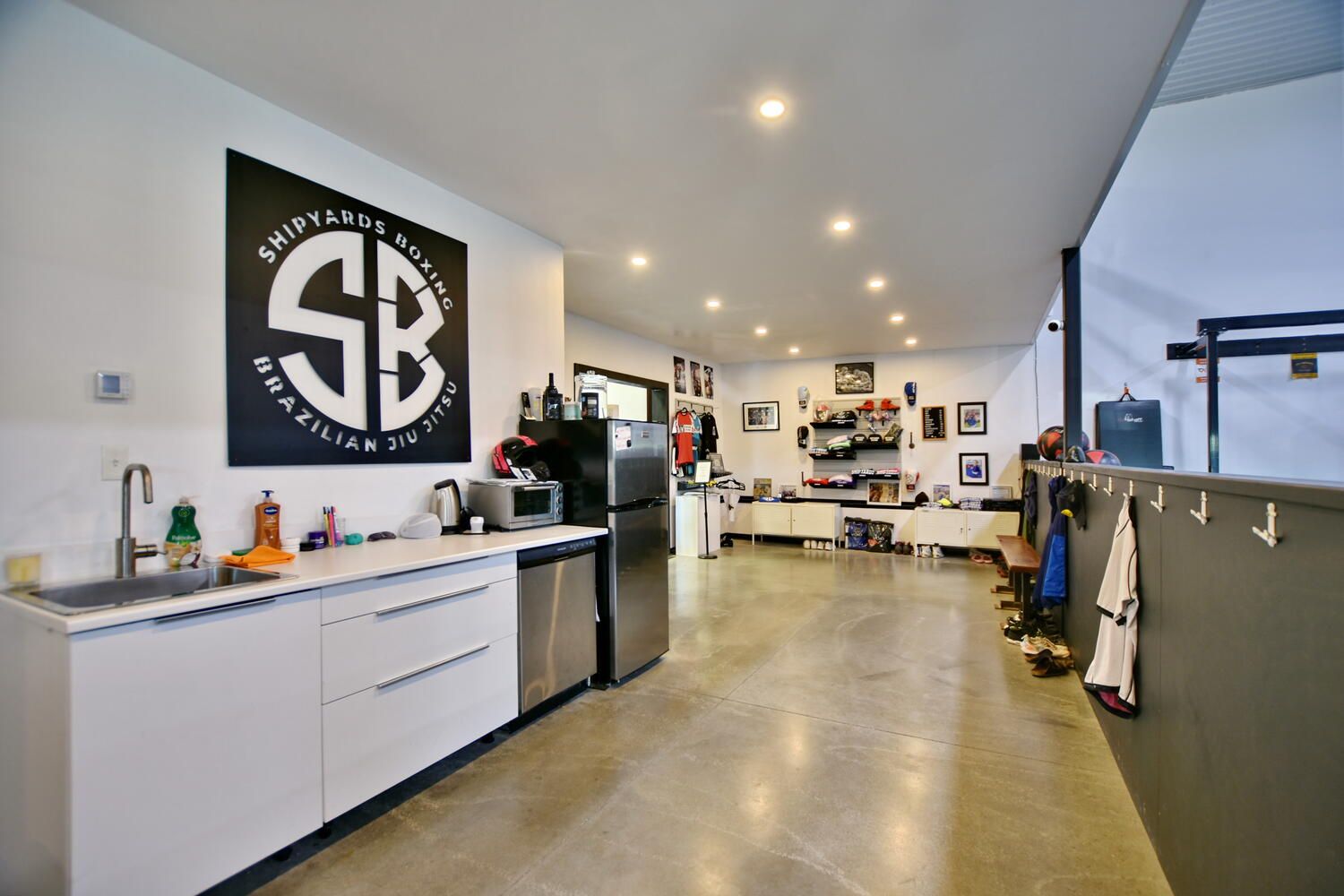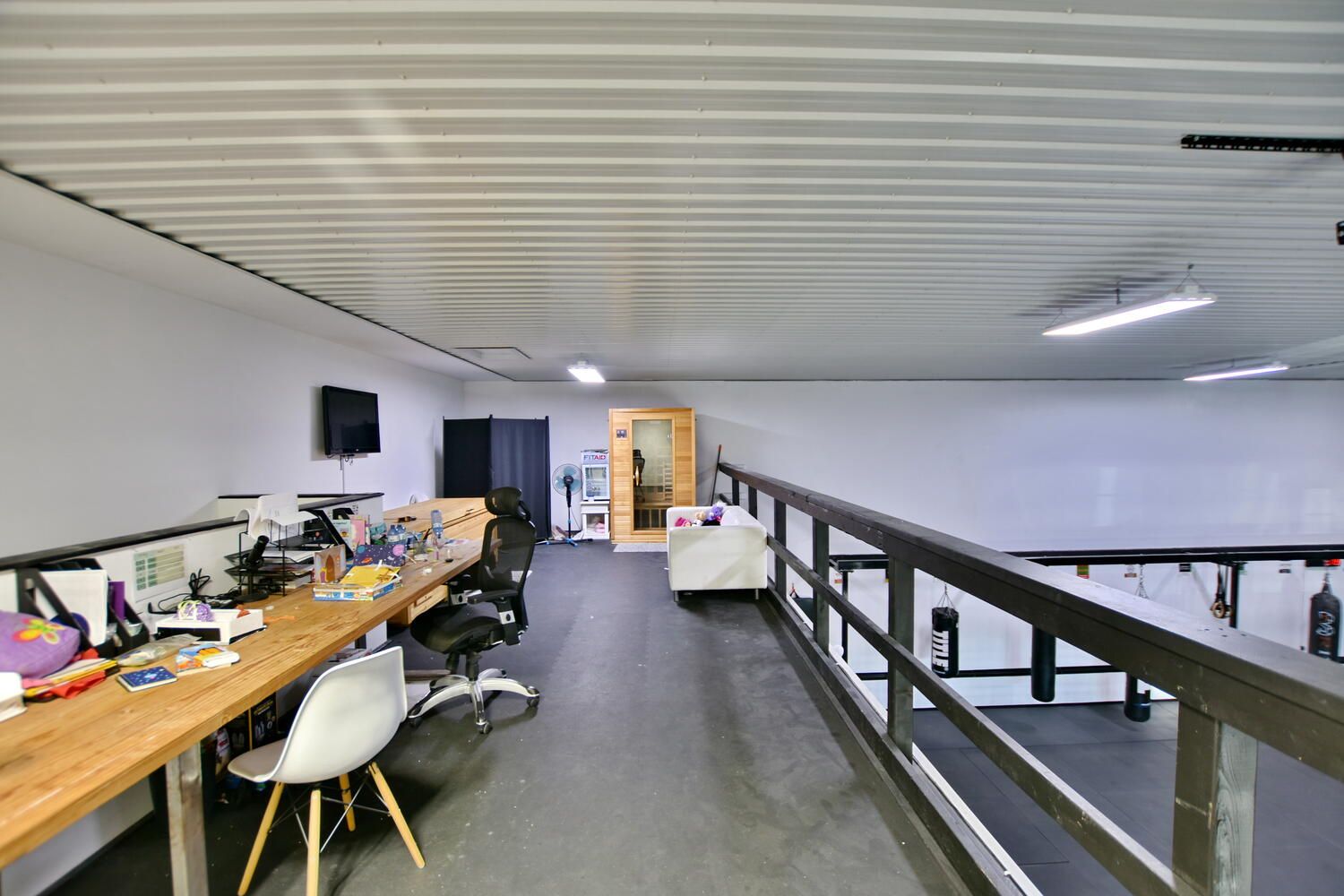 An exceptional opportunity to lease a versatile and well-appointed commercial/industrial space located in collingwood's established industrial area, just minutes from the primary intersection of first street and high street. This highly functional unit was previously operating as a crossfit gym and is well suited for a wide range of commercial, fitness, showroom, light industrial, or service-based uses. The property offers approximately 3,200 square feet on the main level, complemented by a 540 square foot mezzanine that overlooks the main floor, providing excellent sightlines and added flexibility for office, storage, or spectator use. A removable half wall allows the space to be opened further, creating a total usable area of approximately 3,541 square feet, depending on tenant requirements. The interior is finished with a clean, modern aesthetic, featuring bright lighting, white walls, and an open-concept layout that can be easily adapted to suit a variety of business needs. The building is equipped with radiant in-floor heating, offering efficient, consistent comfort throughout the space year-round. A large ground-level garage door provides convenient access for shipping, receiving, or equipment movement, making the unit ideal for businesses requiring loading capabilities. The property also benefits from ample on-site parking, ensuring ease of access for staff and clients alike. Offered at $5,000 per month plus utilities, with hydro averaging approximately $260 per month, this space represents excellent value for a well-located, move-in-ready commercial unit in a high-demand area of collingwood. With its strategic location, flexible configuration, and high-quality interior finishes, this property presents an outstanding leasing opportunity for tenants seeking a functional and professional commercial space with strong long-term potential.