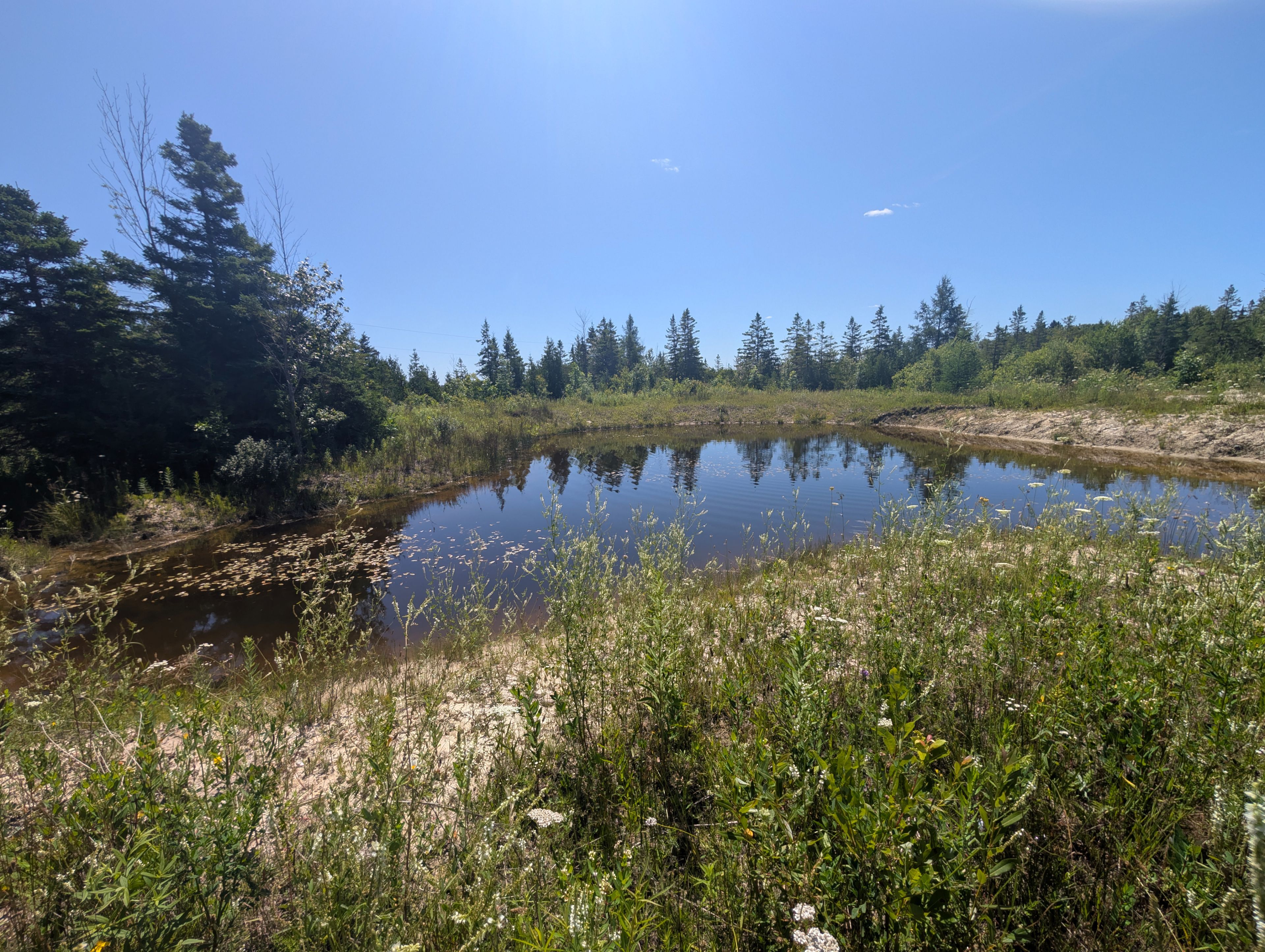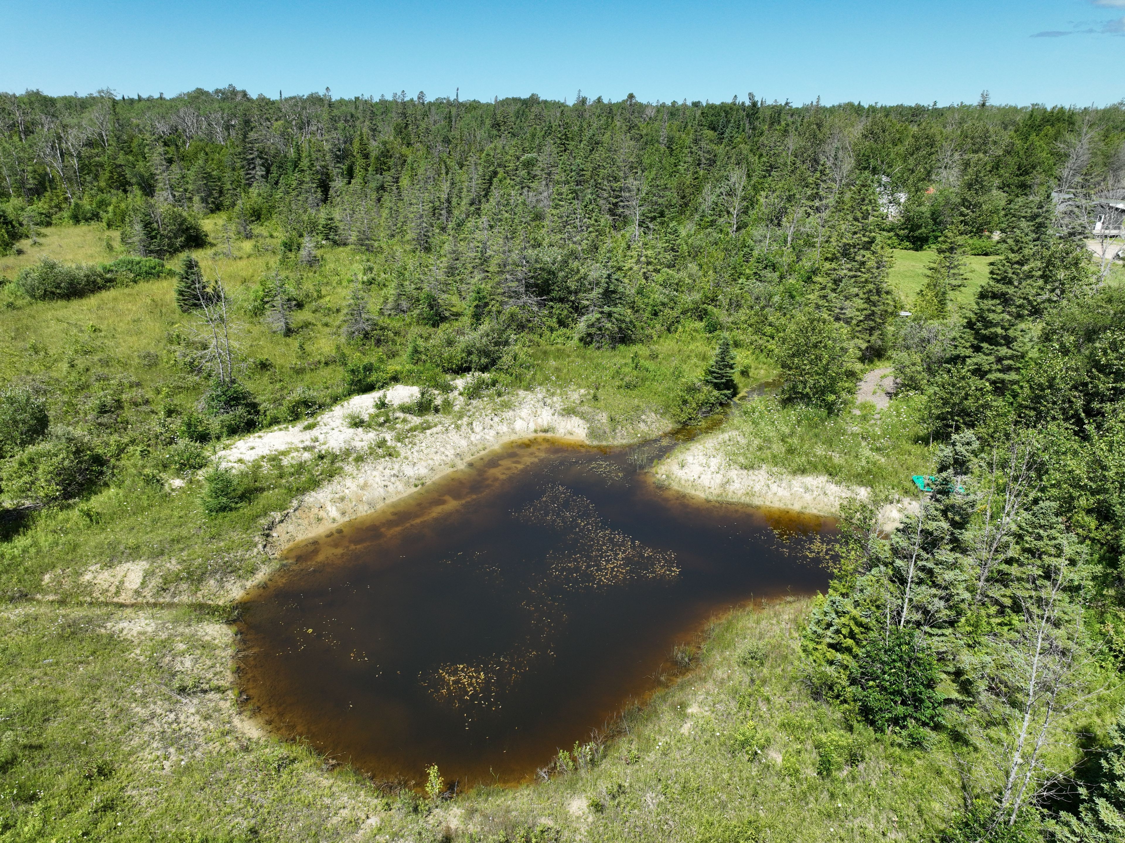 • Large private pond and tarp shelter for recreation, storage, or development.