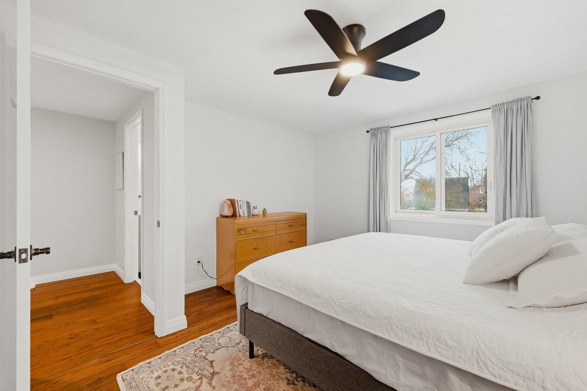 • Open-concept living area with hardwood floors and natural light access.