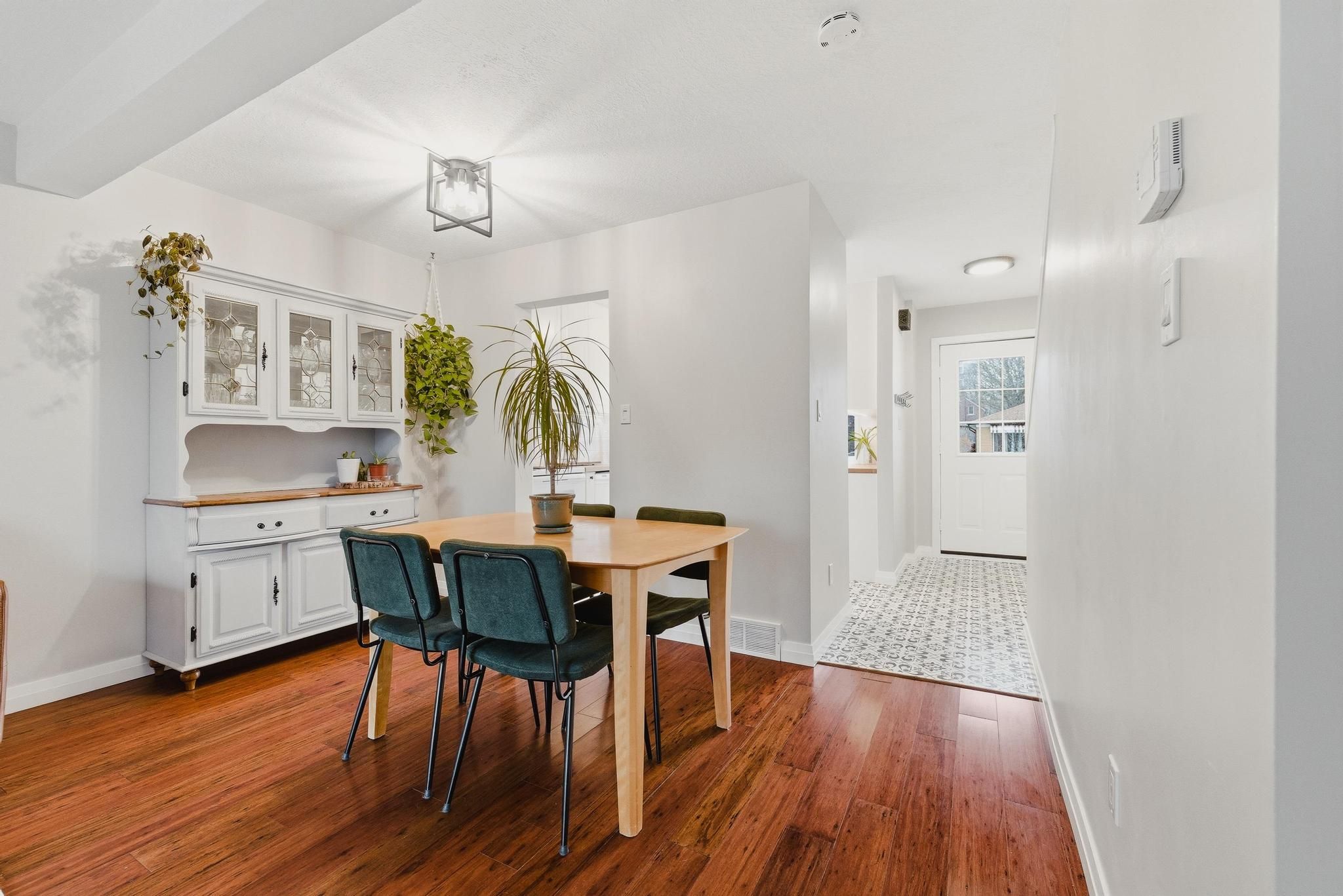 Welcome to this beautifully updated 3-bedroom, 2-bath detached home offering a perfect blend of character, comfort, and convenience, just steps from the vibrant shops and restaurants of belmont village and only a short walk to the iron horse trail. From the moment you enter, the inviting foyer with artistic stenciled flooring sets the tone for a home filled with thoughtful design. The bright kitchen features white cabinetry, butcher block countertops, a deep double sink, and a charming bay window with custom built-in bench seating and storage. The open-concept living area is enhanced by engineered hardwood floors, updated lighting, and a large sliding door that fills the space with natural light and provides seamless access to the backyard. Upstairs, you'll find three well-appointed bedrooms with updated lighting and ceiling fans, along with a beautifully renovated bathroom showcasing a custom vanity and tiled tub surround. The finished lower level adds valuable living space with custom cabinetry for storage and a refreshed powder room. Additional updates include furnace, a/c, and water softener (2019), roof (2018), and a new water heater. Outside, enjoy a spacious deck, garden beds, and a custom walk-in shed. A truly move-in-ready home in a highly walkable and desirable neighbourhood with trails, shops, and amenities just minutes away.