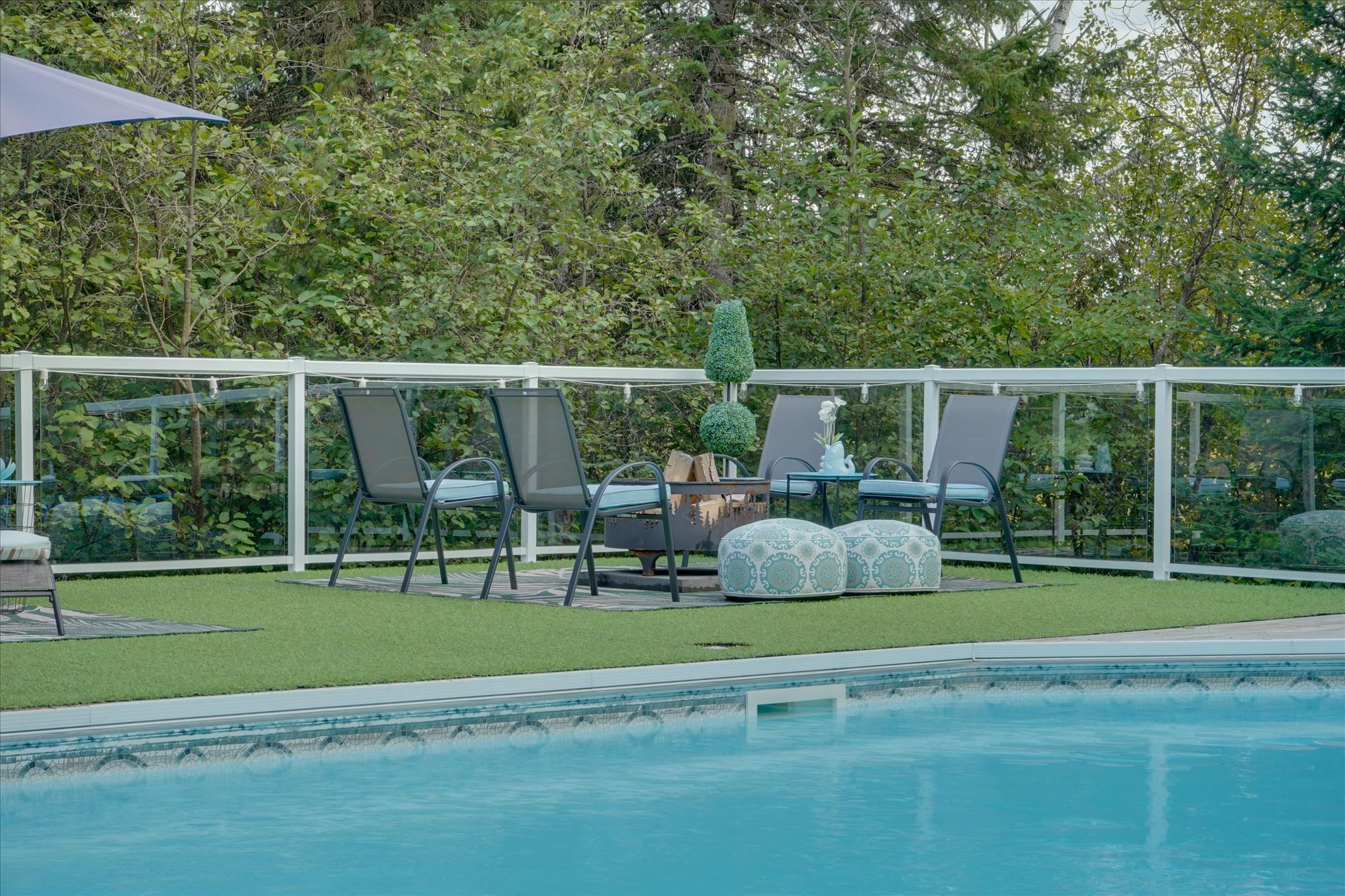 • Private, tree-lined yard with a pool, large deck, and screened-in shed.