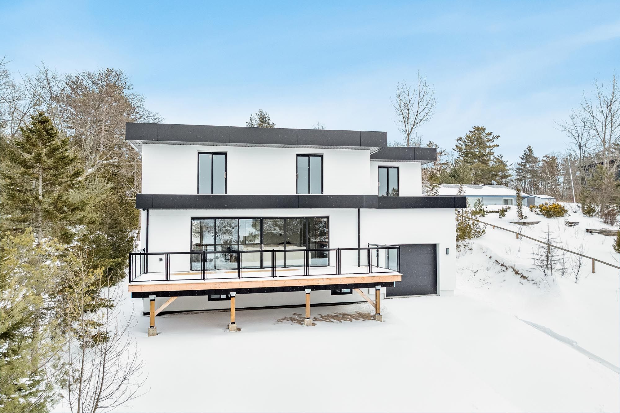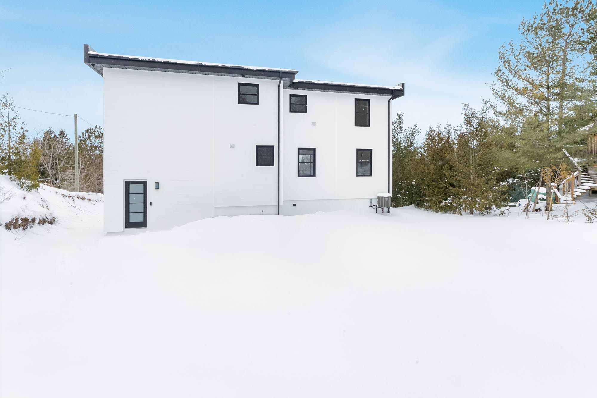 Top 5 reasons you will love this home: 1) unbeatable location just steps from the gorgeous georgian bay sands of bluewater beach, tucked away on a quiet cul-de-sac with a large, private backyard and easy access to barrie, wasaga beach, and collingwood, perfect for enjoying both nature and convenience 2) stunning open-concept living designed to impress, featuring floor-to-ceiling european-style trimbo sliding doors that walk out to a 12'x32' composite deck with breathtaking water-facing views of georgian bay, complemented by a single-piece honed marble island, statement tv mantle, napoleon fireplace, hidden high-end thermador appliances, recessed lights throughout, and engineered wide-plank white oak flooring 3) mindfully designed for year-round comfort and ease, offering secure interior access from the attached one-car garage, complete with a roughed-in snow-melting driveway system and an impressive 14'-high garage ceiling 4) full basement ready to be finished, providing exceptional flexibility for additional living space, a home gym, media room, or guest suite 5) meticulously built by the seller to the highest standards, showcasing european-style aluminum-clad windows, maintenance-free sagiper european siding, solid oak trim throughout, a membrane roof with hidden eaves, a custom downsview kitchens design, a new drilled well, a new lennox air conditioner and weatherking furnace, reolink security system, and countless thoughtful details throughout. 1,789 above grade sq. Ft. Plus an unfinished basement. *please note some images have been virtually staged to show the potential of the home.