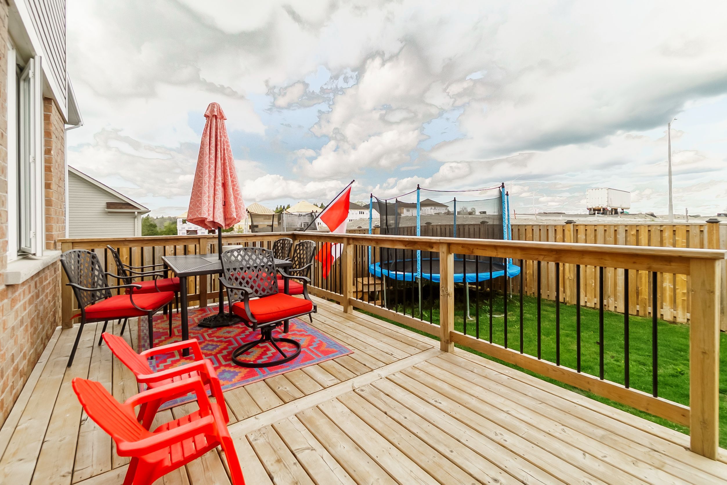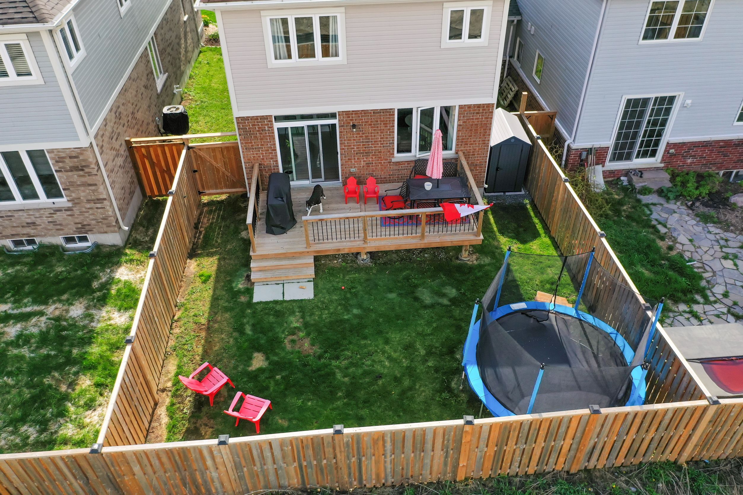 • Fully fenced backyard with a deck perfect for hosting gatherings.