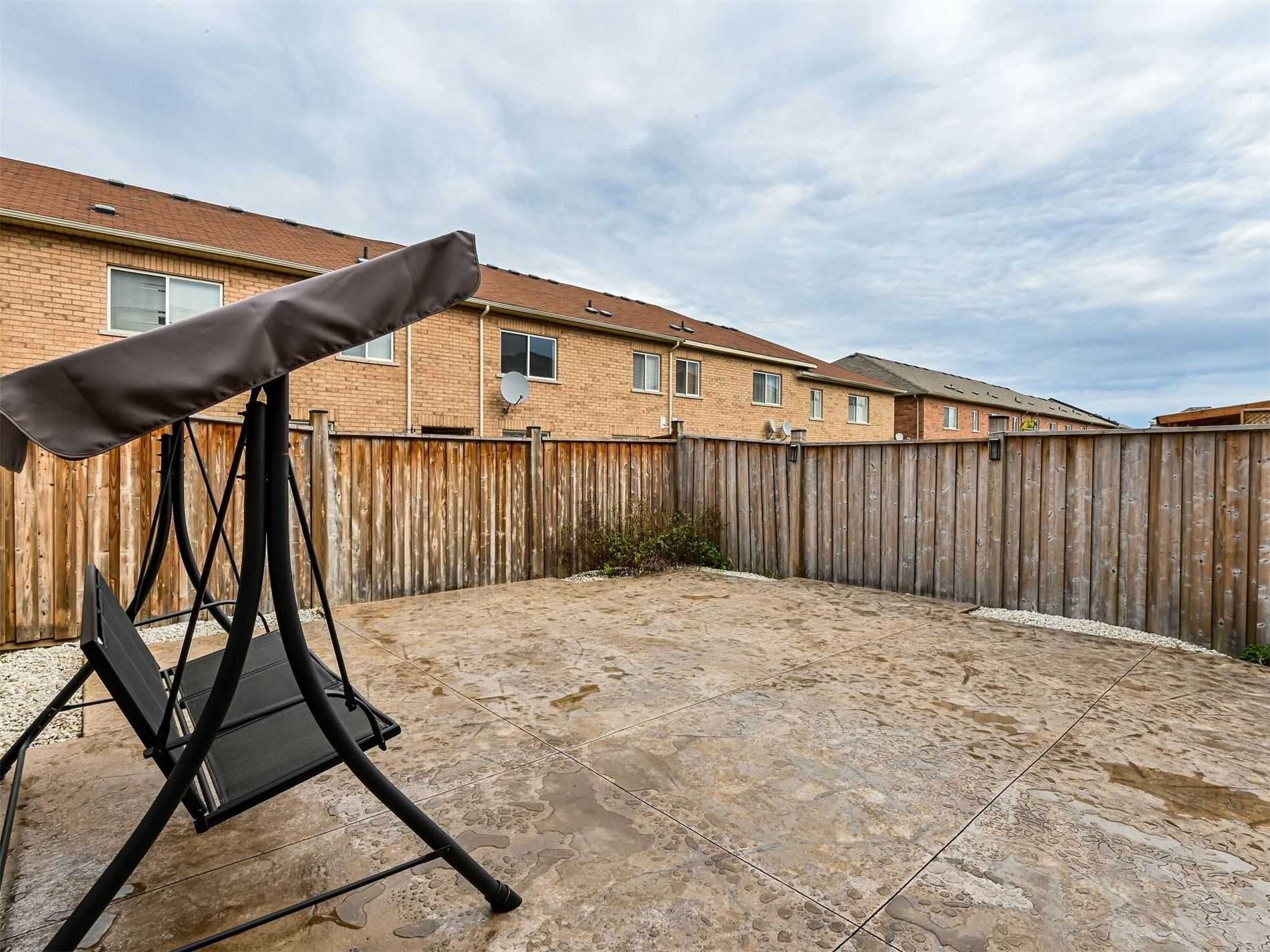 Stunning 3-bedroom freehold townhome offering nearly 2,000 sq ft of living space! Features 3 spacious bedrooms and 3 bathrooms. Enjoy vinyl flooring throughout, a combined living and dining area, plus a separate family room and breakfast space. The open-concept kitchen overlooks the family room and includes stainless steel appliances. The driveway has been upgraded with high-quality stamped concrete to fit up to 3 vehicles. The backyard is fully finished with a stone patio-no lawn maintenance needed. The main floor shares no wall with the neighboring unit, offering added privacy.