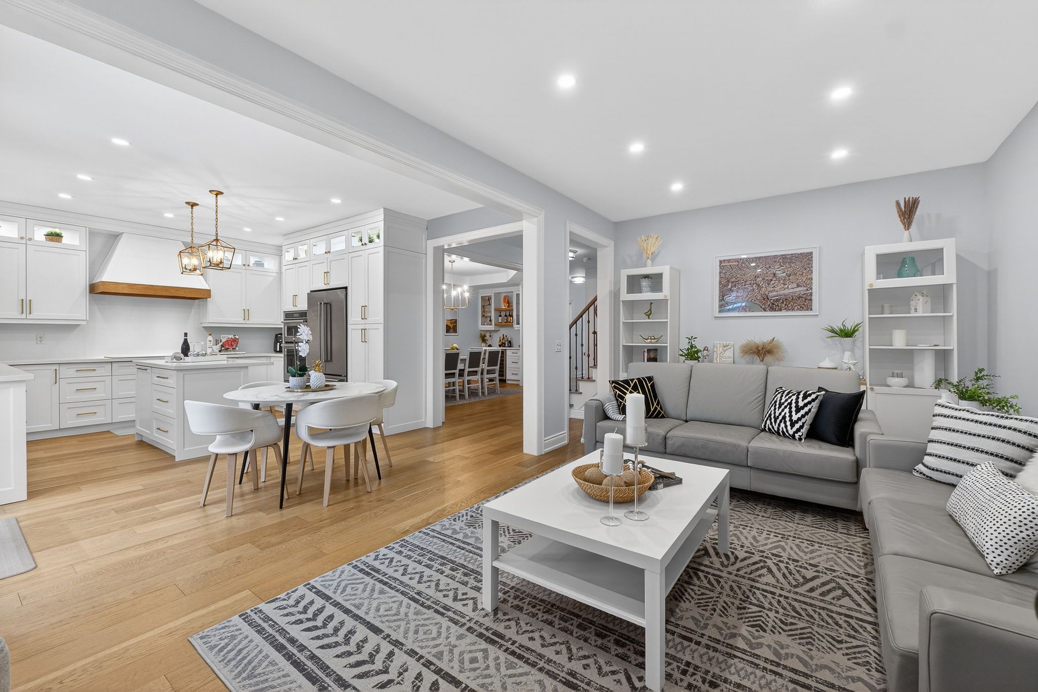 *wow*absolutely stunning turnkey newly renovated on-trend luxury home offering one of the most functional layouts in the neighbourhood!*this exceptional dream home features 4 spacious bedrooms plus a versatile den & over $400k in professional renovations inside and out with premium finishes & thoughtful designer modifications!*pride of original ownership is evident in every detail of this move-in ready home!*the brand new custom designer kitchen features gorgeous quartz countertops, matching quartz backsplash, expanded center island with breakfast bar, built-in stainless steel appliances, extended cabinetry & a matching servery in the dining room with glass cabinets & wine beverage fridge perfect for entertaining!*the open concept family room features a cozy gas fireplace creating a warm & inviting atmosphere!*the luxurious primary suite boasts a walk-in closet & 5 piece spa inspired ensuite bathroom!*one secondary bedroom features a walkout balcony while all bedrooms have convenient access to washrooms for comfort and privacy!*enjoy 6. 5" wide white oak engineered hardwood flooring throughout all three levels, new porcelain tiles, new baseboards, new trim & modern pot lights!*every space has stylish new light fixtures enhancing the home's modern elegance!*the professionally finished basement offers flexible living space for a family room, recreation area, home theatre, gym or home office!*the newly designed mud room & laundry room add practicality and convenience!*step outside to your private fenced backyard oasis featuring a new composite floating deck & new stone interlocked patio & walkway perfect for relaxing and entertaining!*truly a rare opportunity to own a fully renovated luxury home with exceptional craftsmanship, premium upgrades & unmatched attention to detail!*close to schools, parks, hwy 400, canada's wonderland & vaughan mills mall!*this is the one you've been waiting for!*put this beauty on your must-see list today & fall in love!*