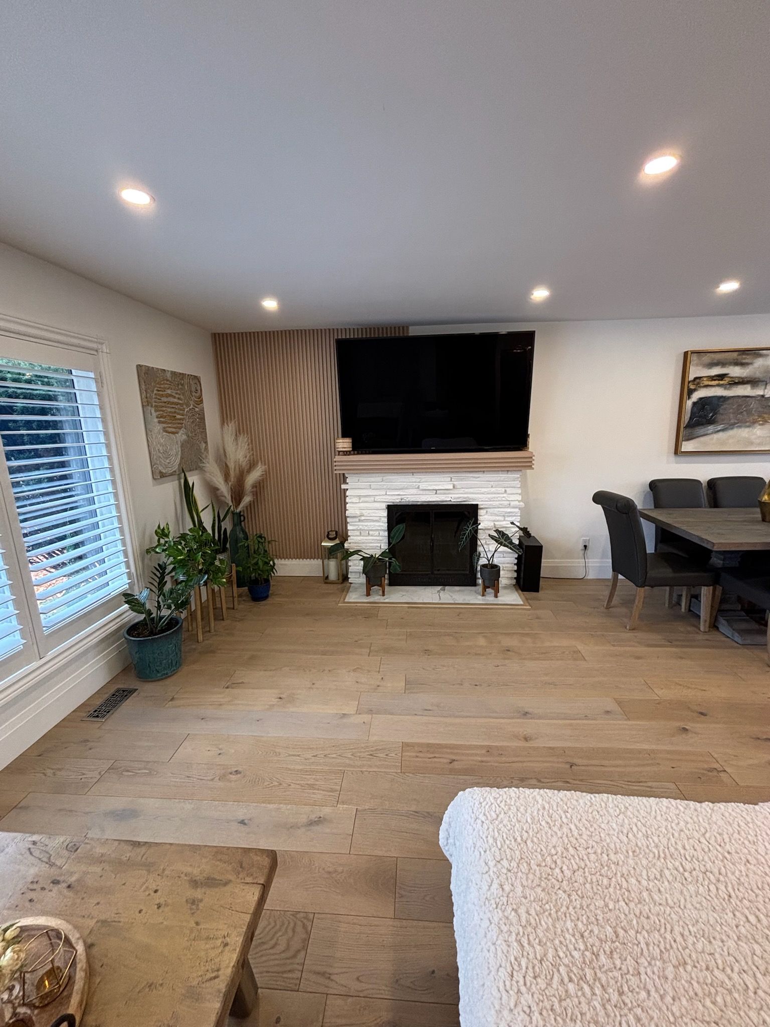 • Bright, open-concept layout filled with natural light and hardwood floors.