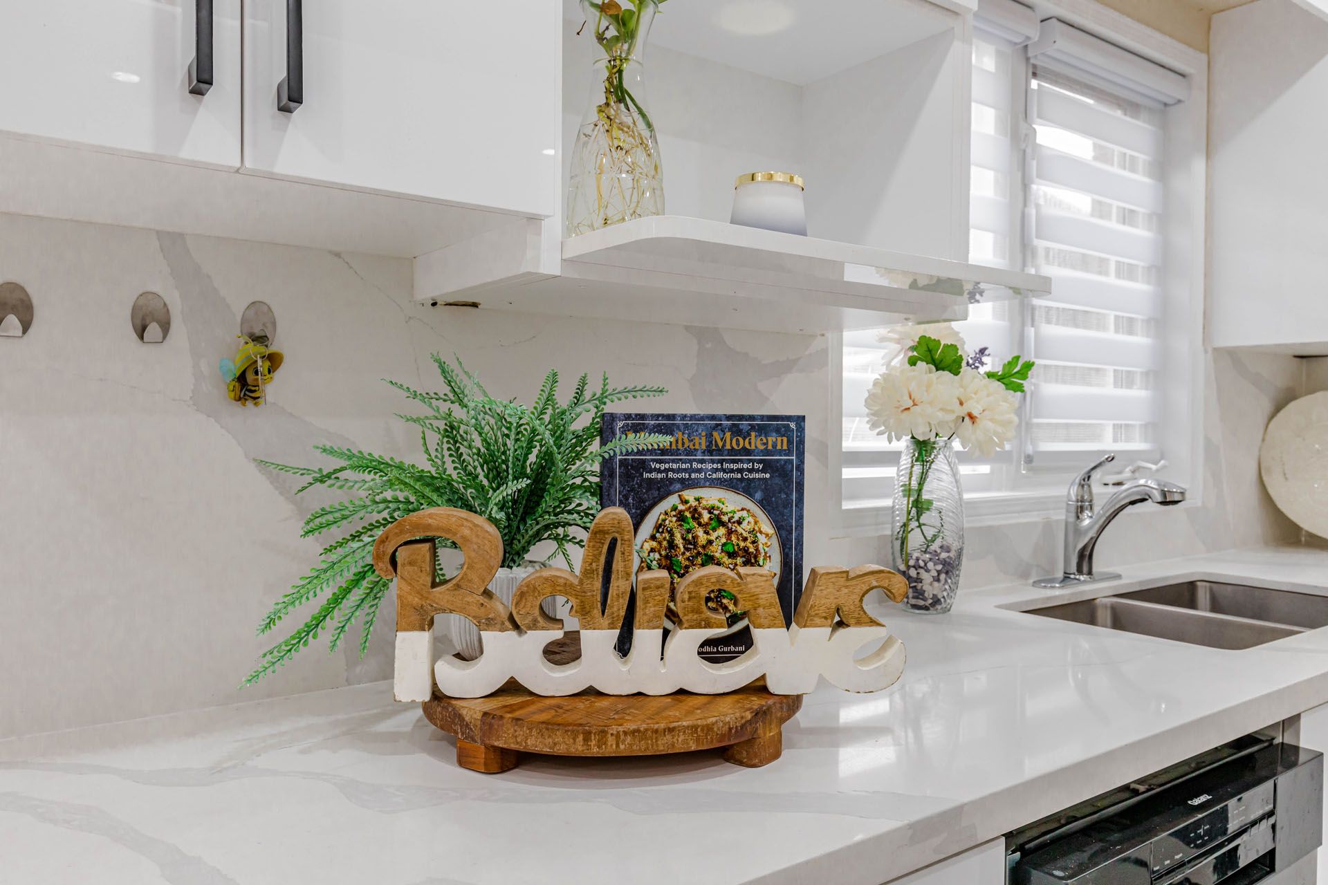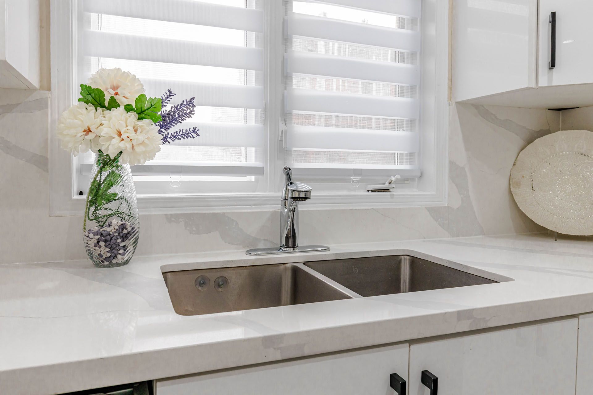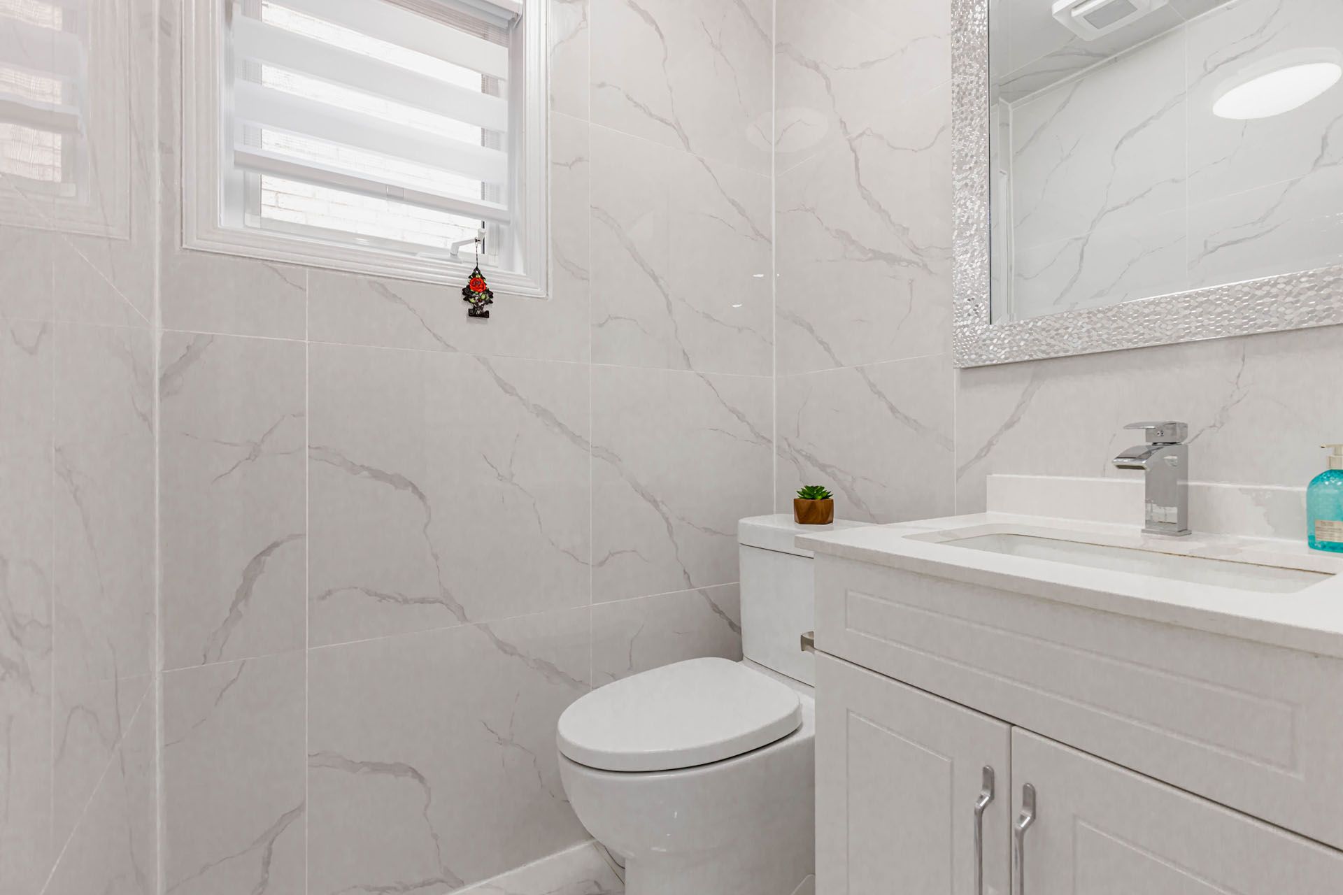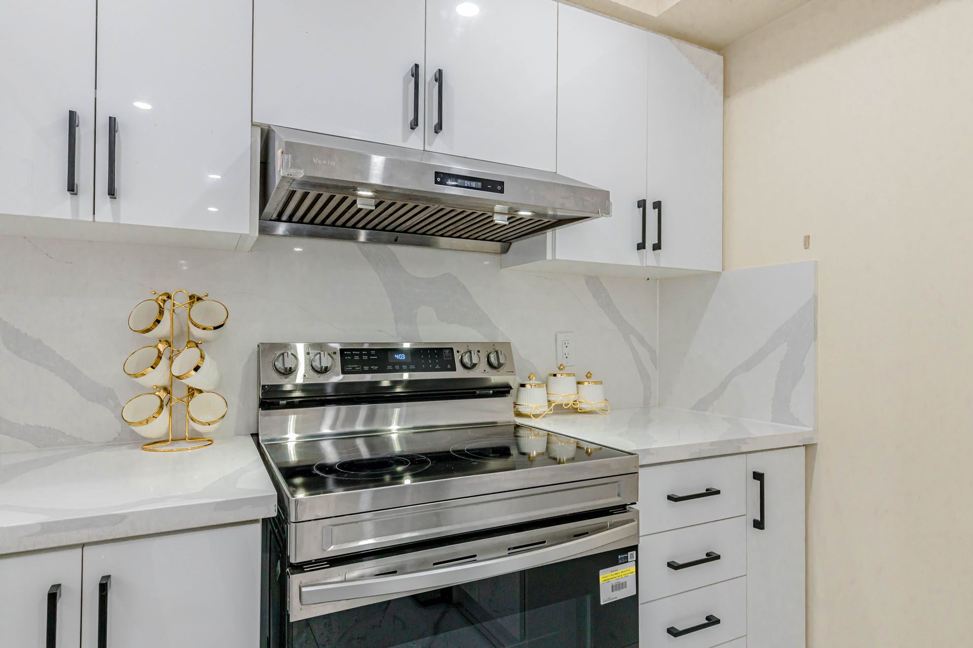 • Modern kitchen with quartz countertops and newer appliances for convenience.