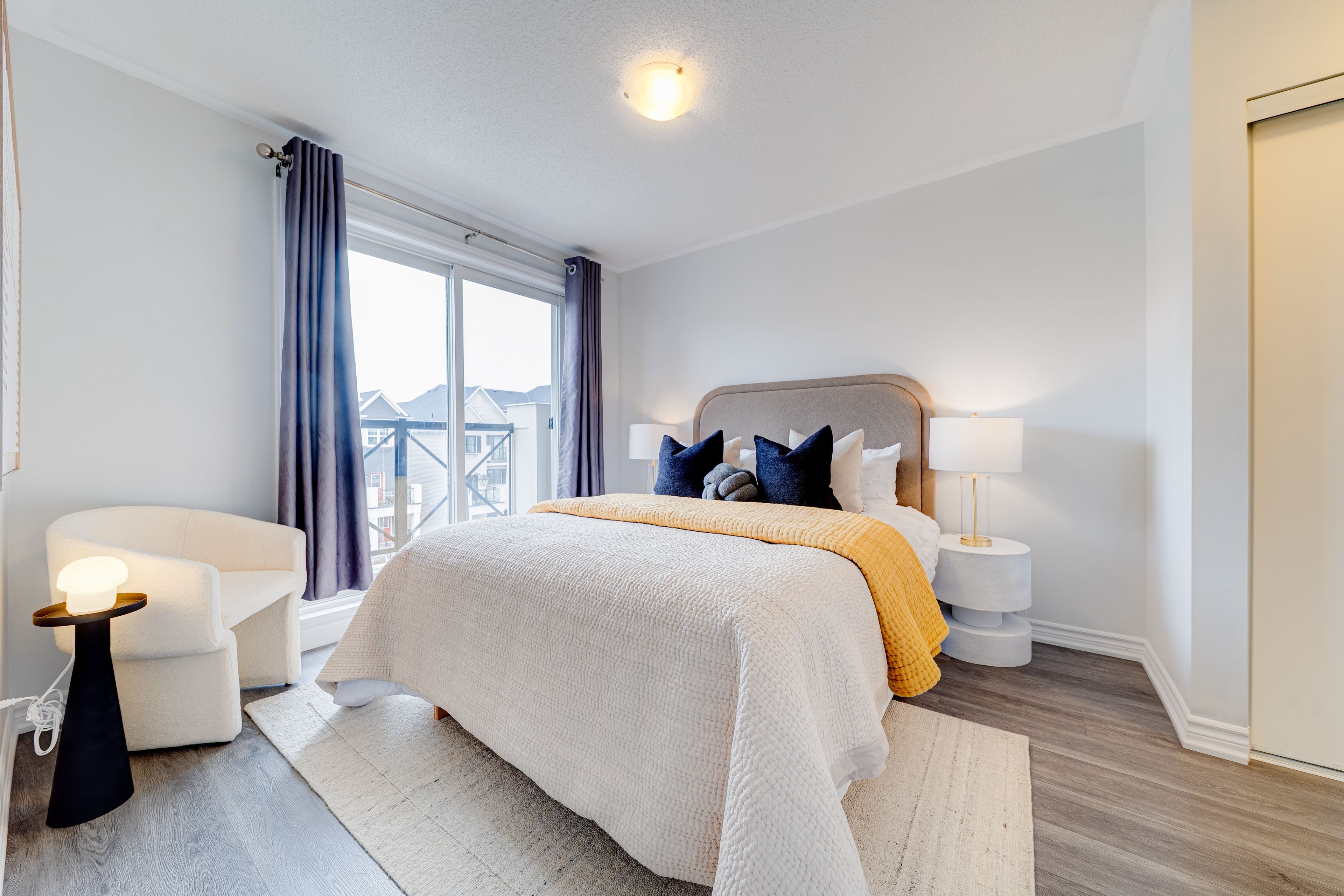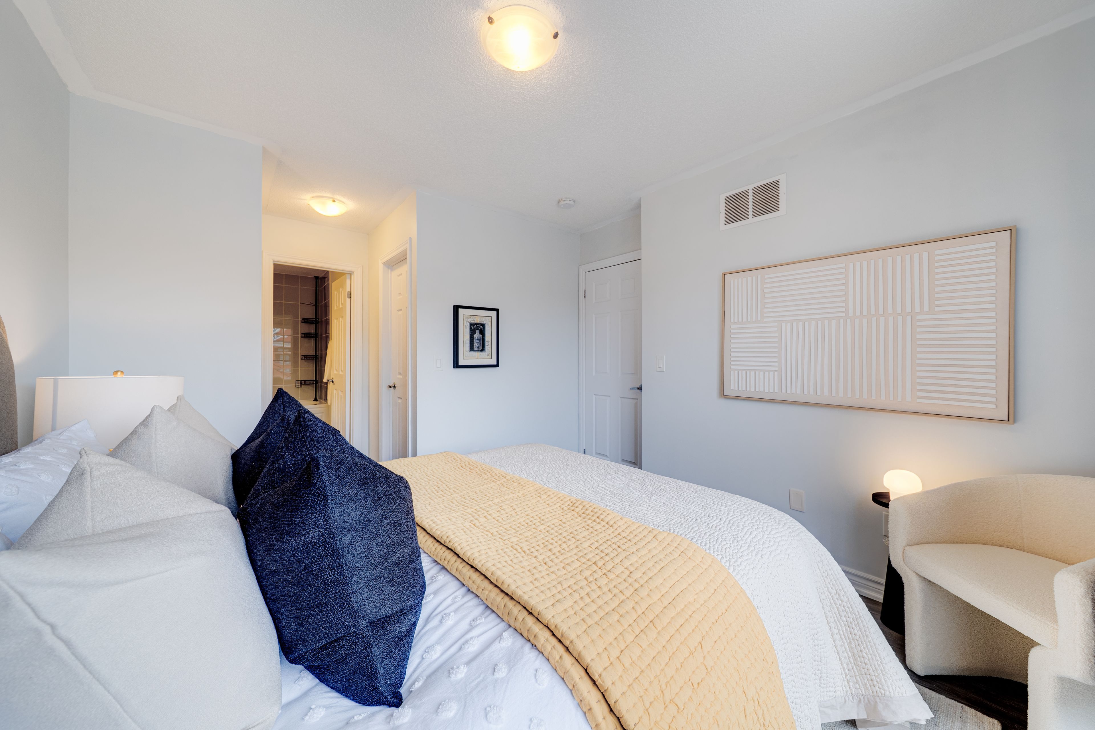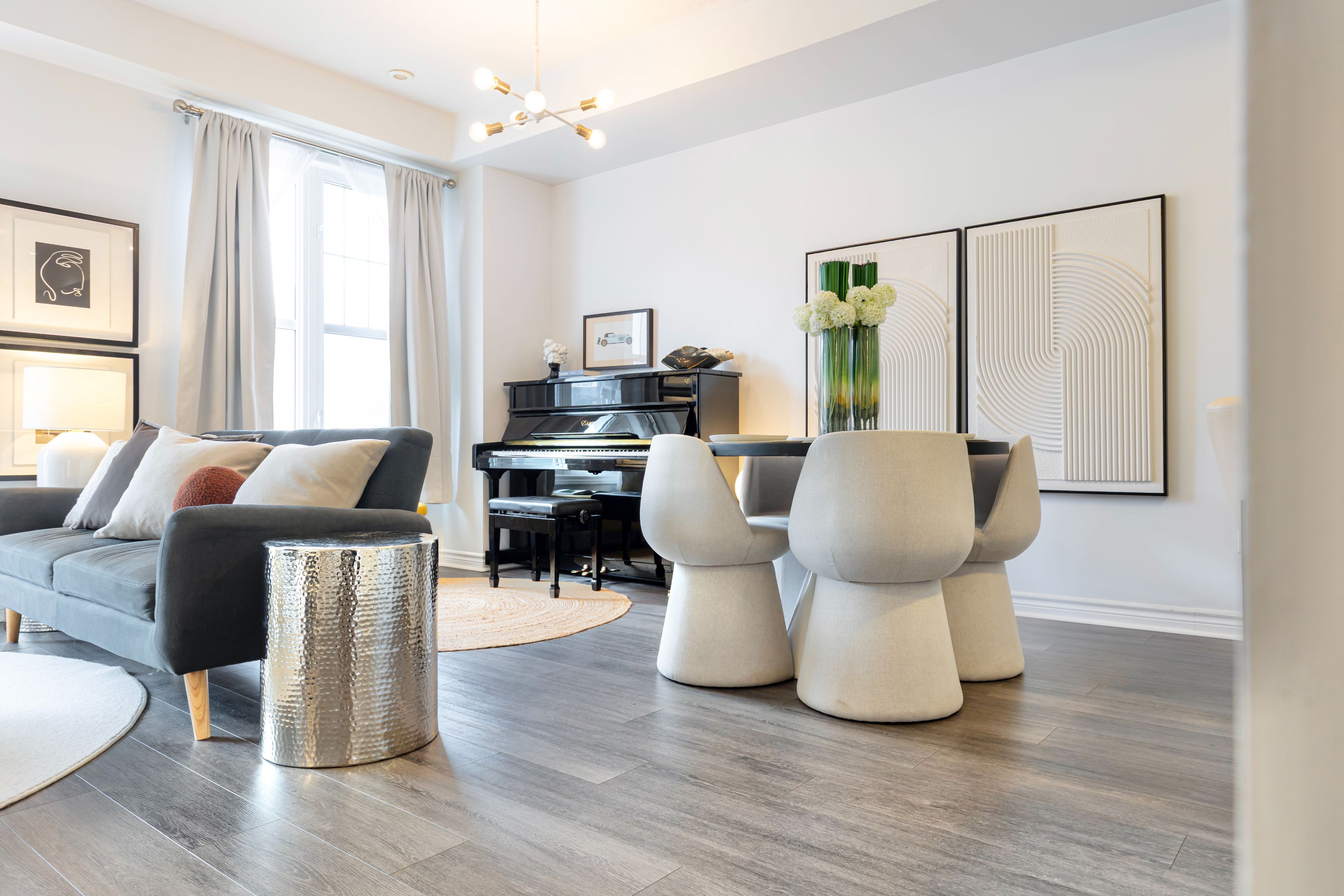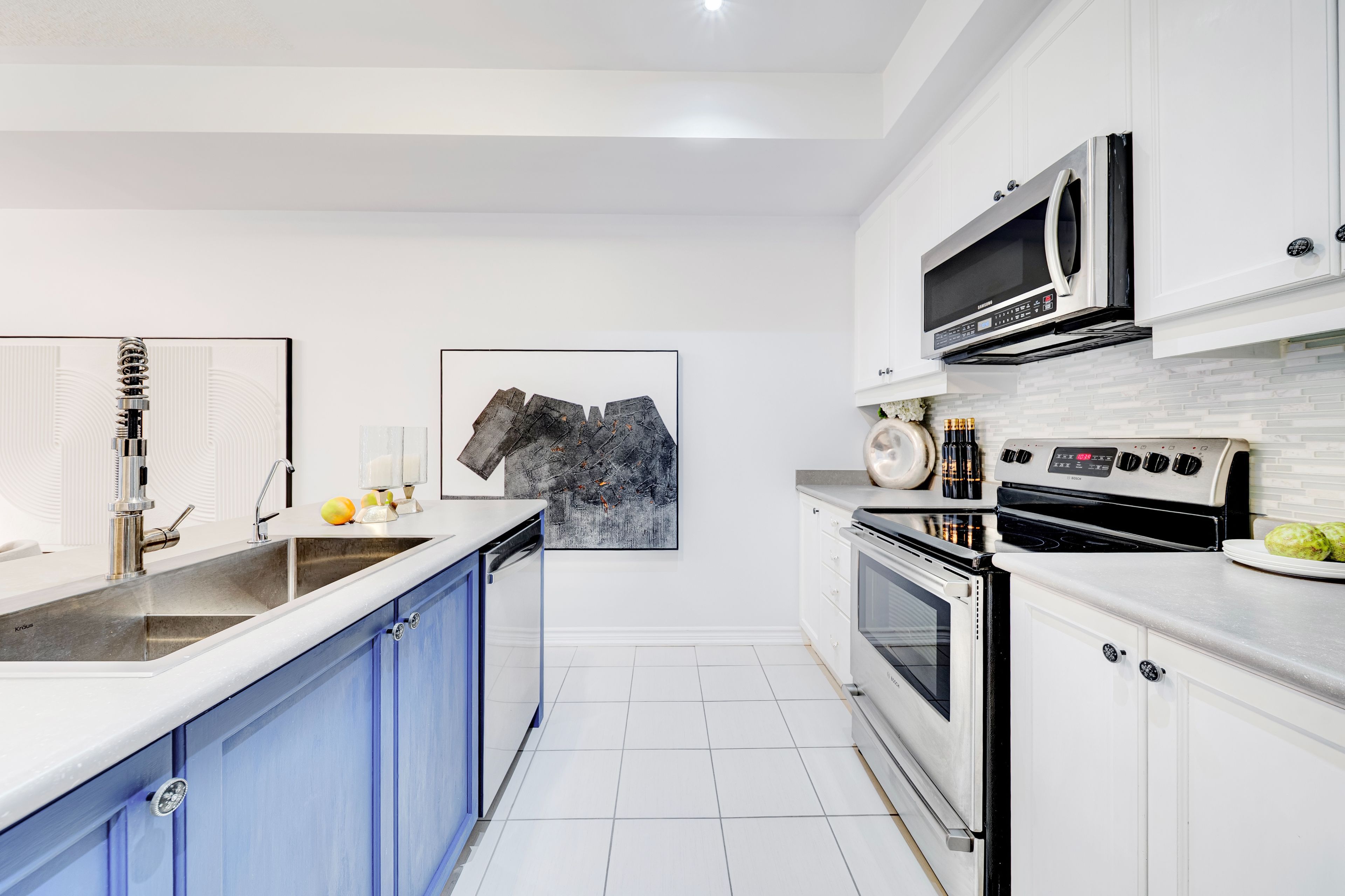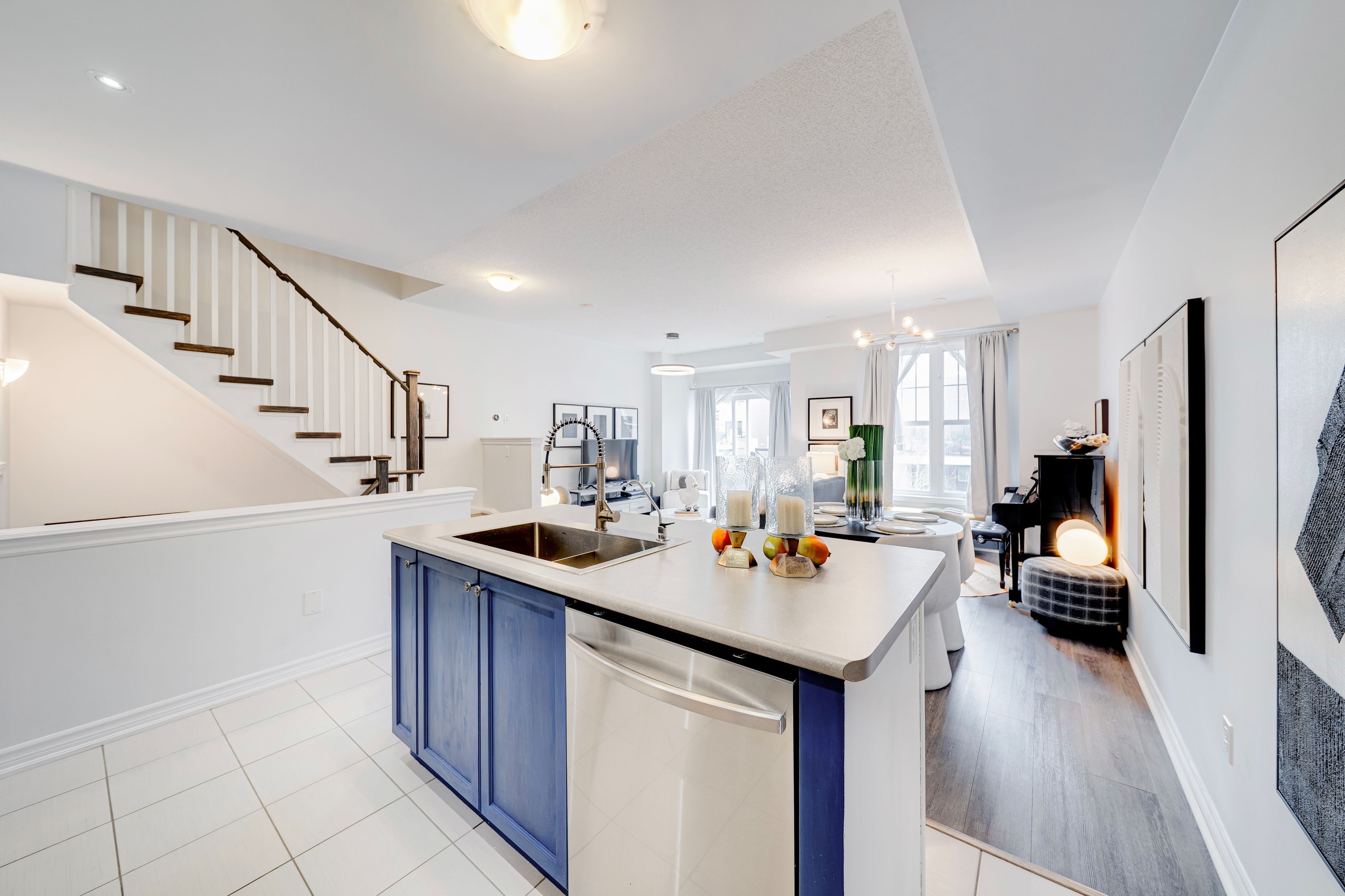 ** freehold townhome w/ no maintenance fees ** this beautifully designed 2 bedrooms, 3 bathrooms freehold townhome by minto offers stylish urban living in one of stouffville's most desirable communities. The bright, open concept features a spacious living & dining area complemented by a sleek, modern kitchen perfect for both everyday living and entertaining. 9 ft ceiling on main. Step out onto your private balcony, ideal for morning coffee, evening relaxation, or weekend bbqs. The primary bedroom boasts a 4 pcs ensuite, while the second bedroom is well served by its own 4 pcs bathroom, offering comfort and convenience for family or guests. The ground level provides practical functionality with interior access to the garage, a dedicated laundry area, & additional storage space. Enjoy parking for up to 3 vehicles, including a single car garage w/ extended depth (23 ft) and a driveway w/ no sidewalk offering added convenience & space. Ideally located just minutes from the stouffville go station, metro, longo's, no frills, walmart, parks, the community centre, library, and more, this home delivers exceptional walkability and lifestyle convenience. Move in ready &thoughtfully designed, it's a fantastic opportunity to own a modern home in a vibrant and growing neighborhood. 10 mins drive to hwy 404, 9 mins to markham, & 20 mins to york university markham campus. The most convenience location for living in stouffville.