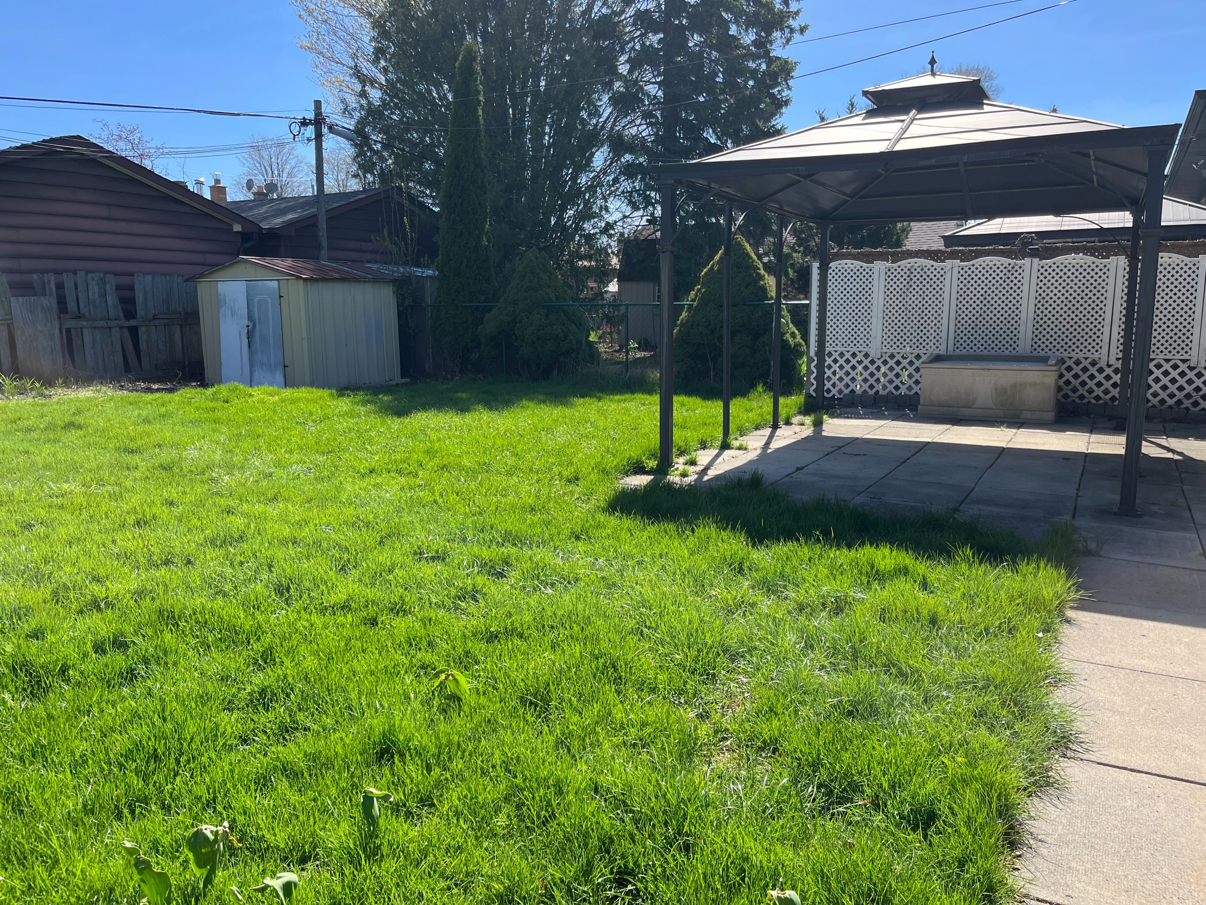 • Lush backyard perfect for gardening and outdoor activities.