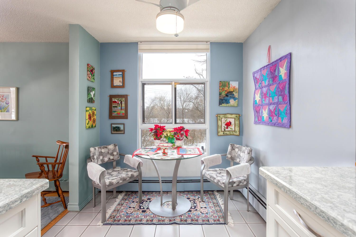 Welcome to this stunning and spacious 3-bedroom, 2-full bathroom corner unit in the highly sought-after woodlawn tower tree condominiums! This beautifully updated condo features a newer sutcliffe kitchen, complete with gleaming quartz countertops, soft-closing drawers, a newer appliance package (dishwasher, stove, fridge, and microwave), a stylish new backsplash, and under-cabinet lighting that adds warmth and functionality to the space. Both bathrooms have been refreshed with new toilets, and the guest bathroom showcases a newer bathtub surround. Comfort is a priority throughout the home, with new ceiling fans in all bedrooms and custom-built closet organizers in two of the bedroom closets. The wall a/c unit is only five years old, and the seller is also including two portable a/c units to ensure your comfort all summer long. Step outside to the large, private enclosed balcony, perfect for enjoying three seasons of peaceful relaxation. Overlooking the scenic walking trails of riverside park, the balcony provides a serene, tree-shaded retreat filled with birdsong. From the living room, you'll also enjoy views of the tennis courts and pool area. Tastefully decorated throughout, the unit features laminate flooring and ceramic tile in high-traffic areas. The primary bedroom includes laminate floors and its own 3-piece ensuite bathroom. Additional highlights include ample storage, en-suite laundry, and all appliances included for your convenience. Condo fees cover heat, water, parking, and access to all of the wonderful amenities this well-maintained complex offers. Book your private showing today-you will not be disappointed!