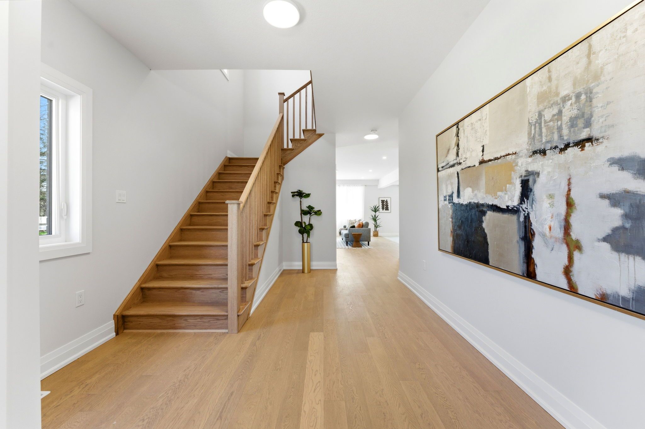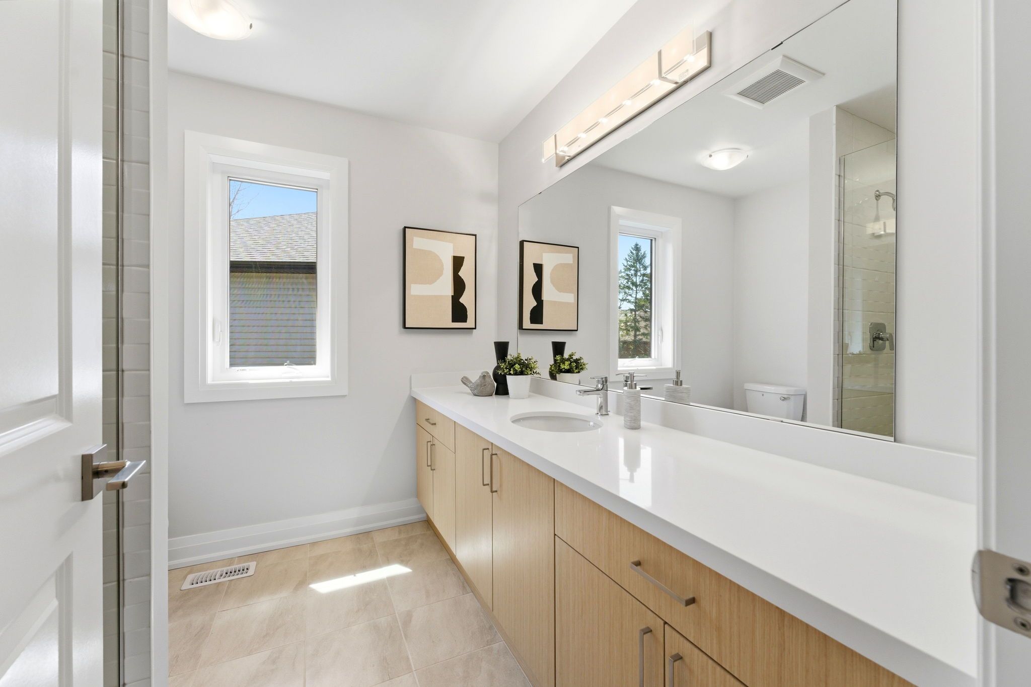 Welcome to this stunning brand new winzen built home on a quiet, established court in one of hamilton mountain's most desirable neighbourhoods. Set on a premium, pie-shaped lot, this property offers a large backyard, perfect for entertaining, kids, and future bbqs. Inside you'll find a bright, open-concept floor plan with high ceilings, large windows, and modern finishes throughout. The main level showcases hardwood flooring, sleek tile, and contemporary design, anchored by a chef-inspired kitchen featuring quartz countertops, centre island with seating, and ample cupboard and counter space. Upstairs offers four generously sized bedrooms, ideal for families, home office, or guest space, along with convenient second floor laundry. The primary bedroom retreat features double walk-in closets and a luxurious ensuite bathroom, delivering style and functionality. The unfinished basement features high ceilings, oversized windows, bathroom rough-in and a side entrance, making it ideal for a future in-law suite or multigenerational living. The exterior is complete with paved driveway and double car garage, offering excellent curb appeal. Perfectly located near ancaster meadowlands shopping, top rated hamilton mountain schools, parks, and with quick access to hwy 403, this home is ideal for commuters, professionals, and growing families. This home is perfect for buyers searching for a new construction home in hamilton, move-in, family ready home, or a modern home close to ancaster and the meadowlands power centre. This home offers the perfect blend of location, lifestyle, and long-term value - don't miss the rare opportunity to own a new build in an established hamilton mountain neighbourhood.