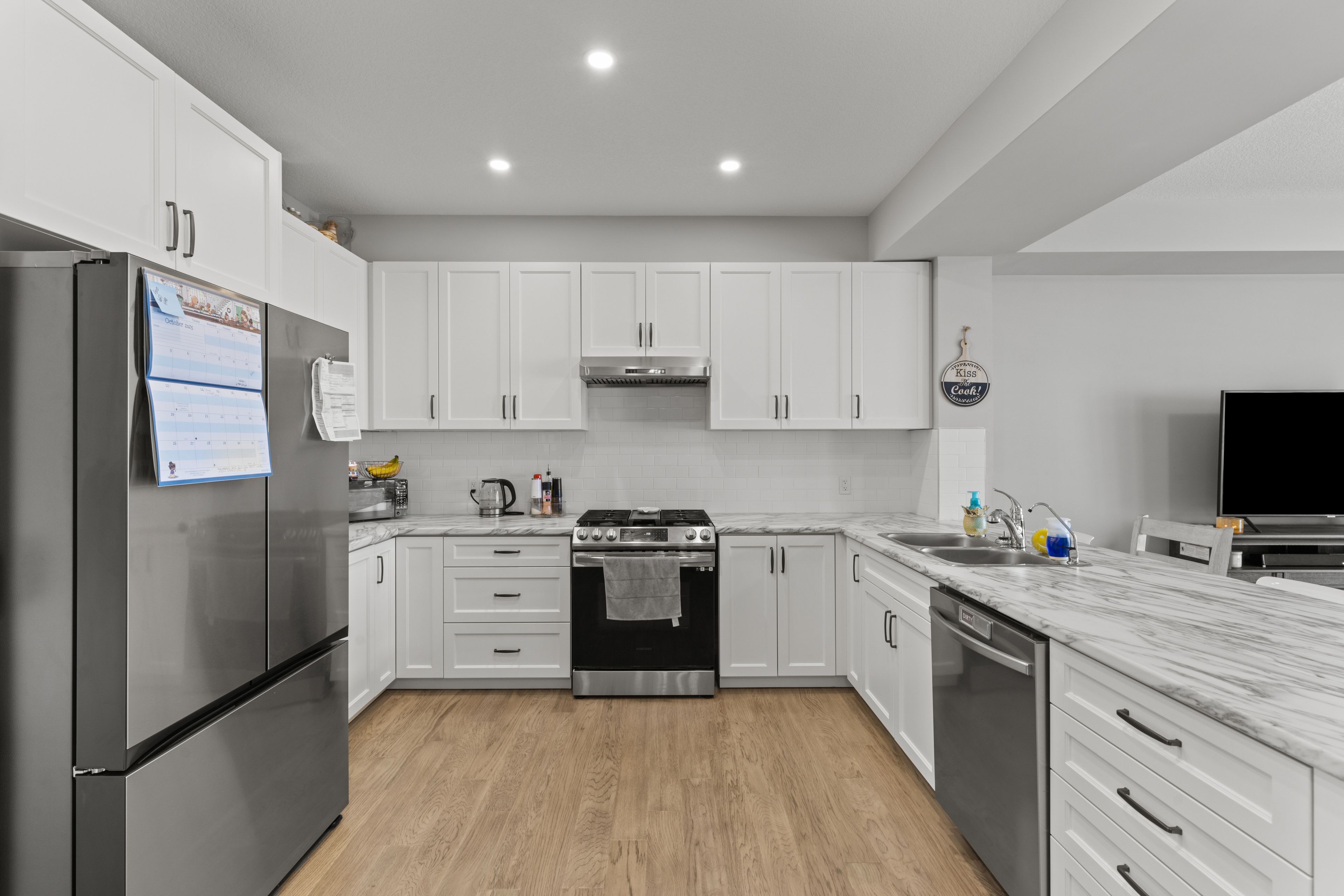 Welcome to this nearly new, beautifully designed two-story townhouse, built just one year ago and loaded with thoughtful upgrades. Featuring 3 bedrooms, 2. 5 bathrooms, and a bright open-concept layout, this home perfectly balances comfort, style, and functionality. The main floor boasts a spacious living and dining area filled with natural light, complemented by a modern kitchen with stainless steel appliances, sleek countertops, and plenty of cabinet space - ideal for both everyday living and entertaining. Upstairs, you'll find three comfortable bedrooms, including a primary suite complete with a walk-in closet and private ensuite bath. The additional bedrooms are versatile for family, guests, or home office use. The basement offers excellent expansion potential, featuring a builder-upgrade rough-in for an additional bathroom, allowing you to easily customize the space to fit your needs. Out back, enjoy outdoor living with a gas line hookup for your bbq, perfect for summer grilling and gatherings. The home also includes an attached garage, and energy-efficient systems for low-maintenance living. Located in a quiet, family-friendly neighborhood, this home is close to schools, parks, shopping, dining, and major commuter routes.
