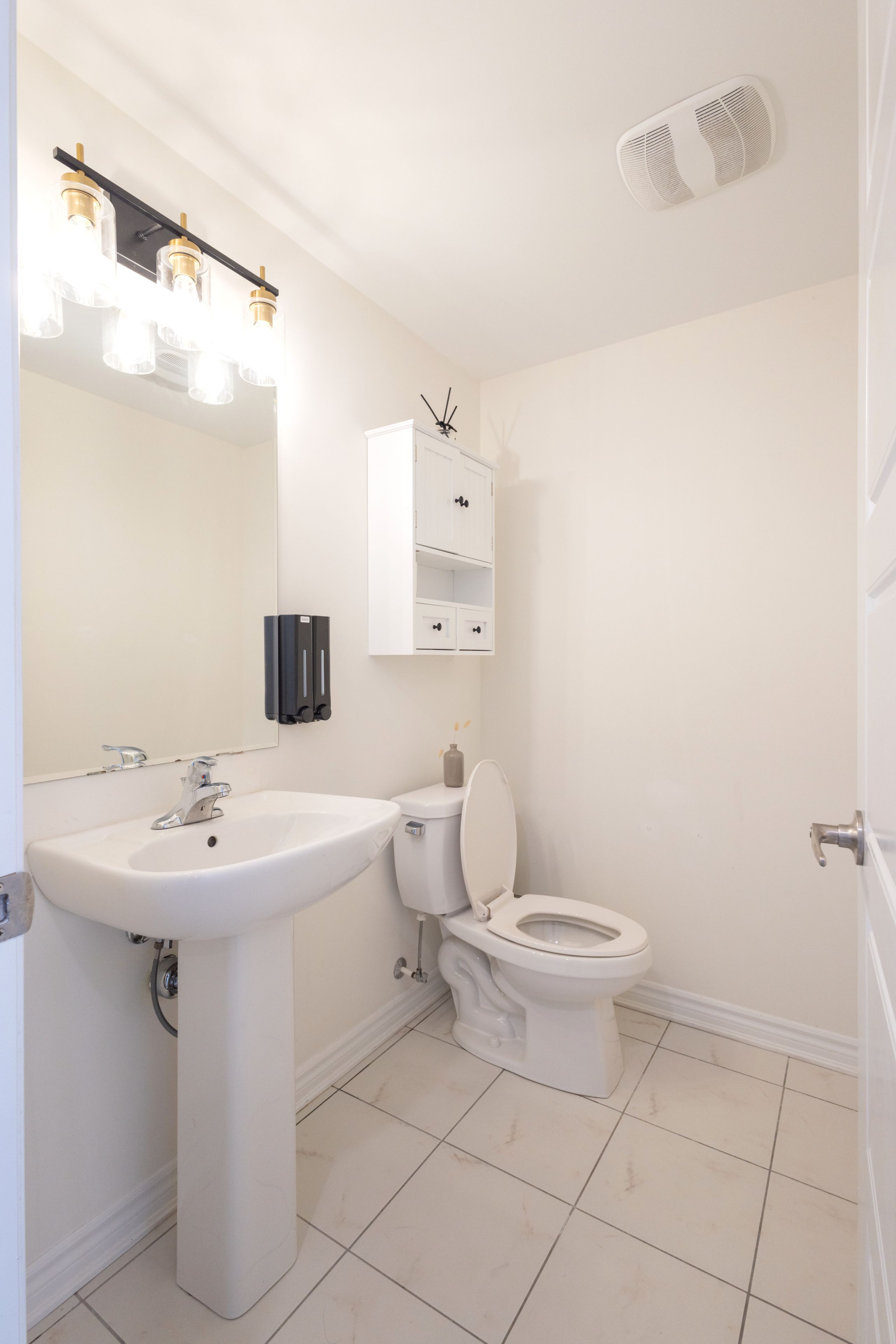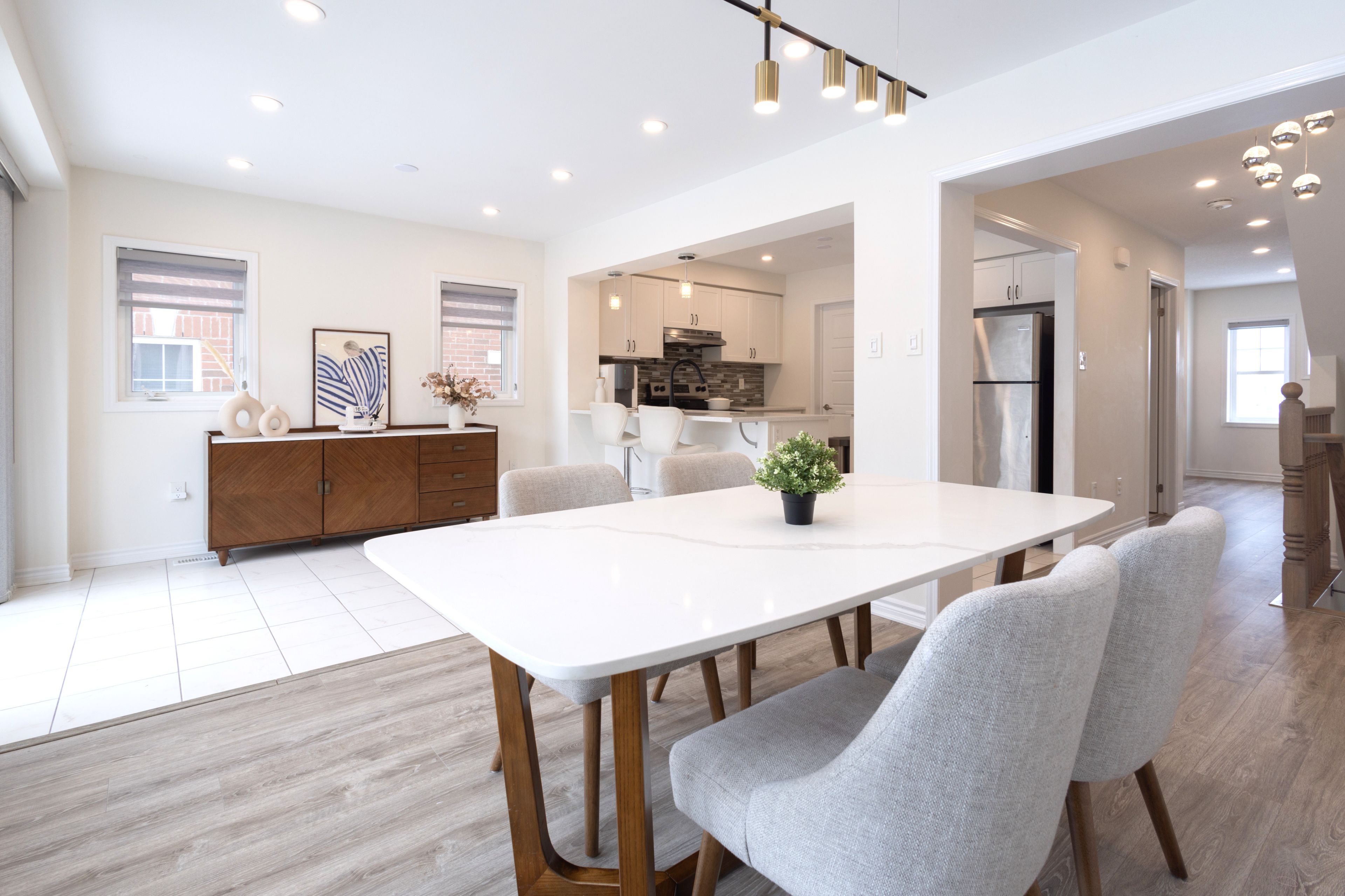 Welcome to this stunning end unit 3 storey freehold townhouse, perfectly positioned in a family-oriented community and overlooking beautiful green space. Enjoy peaceful terrace views and an abundance of natural light that enhances the home's bright and airy atmosphere. This spacious home features 3+1 bedrooms and 3 bathrooms, offering flexible living for growing families or professionals. The main floor boasts a generous living and dining area, a breakfast nook, and a gourmet kitchen complete with upgraded stainless steel appliances, breakfast bar, stylish backsplash, and a walk-in pantry - perfect for both everyday living and entertaining. An unfinished mechanical room on the ground level offers incredible potential to customize additional living space, a private office, gym, or storage - allowing you to add value and tailor the home to your lifestyle. Enjoy the convenience of easy access with minimal traffic congestion, while being close to the go station, major highways, shopping, costco, parks, and more. A rare opportunity combining comfort, functionality, and location - this is one you won't want to miss. Potl monthly fee: 153. 46
