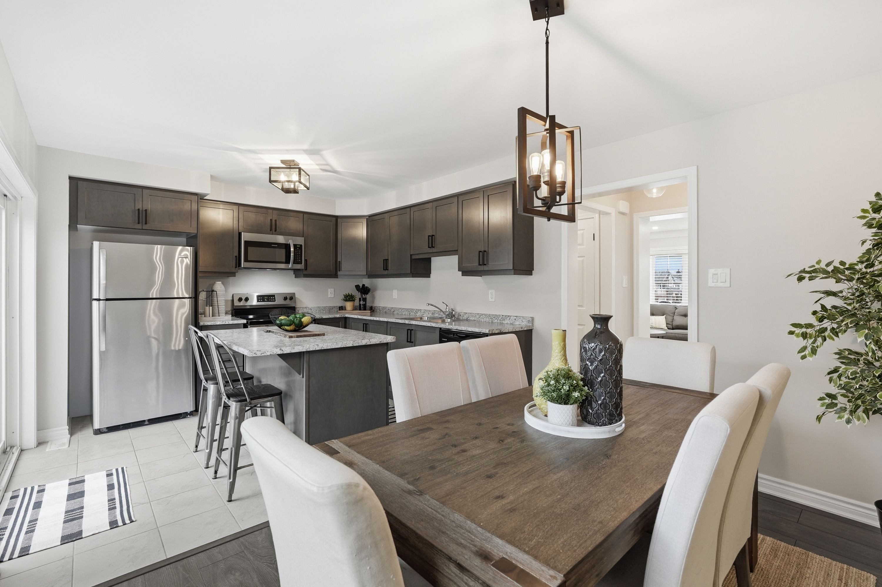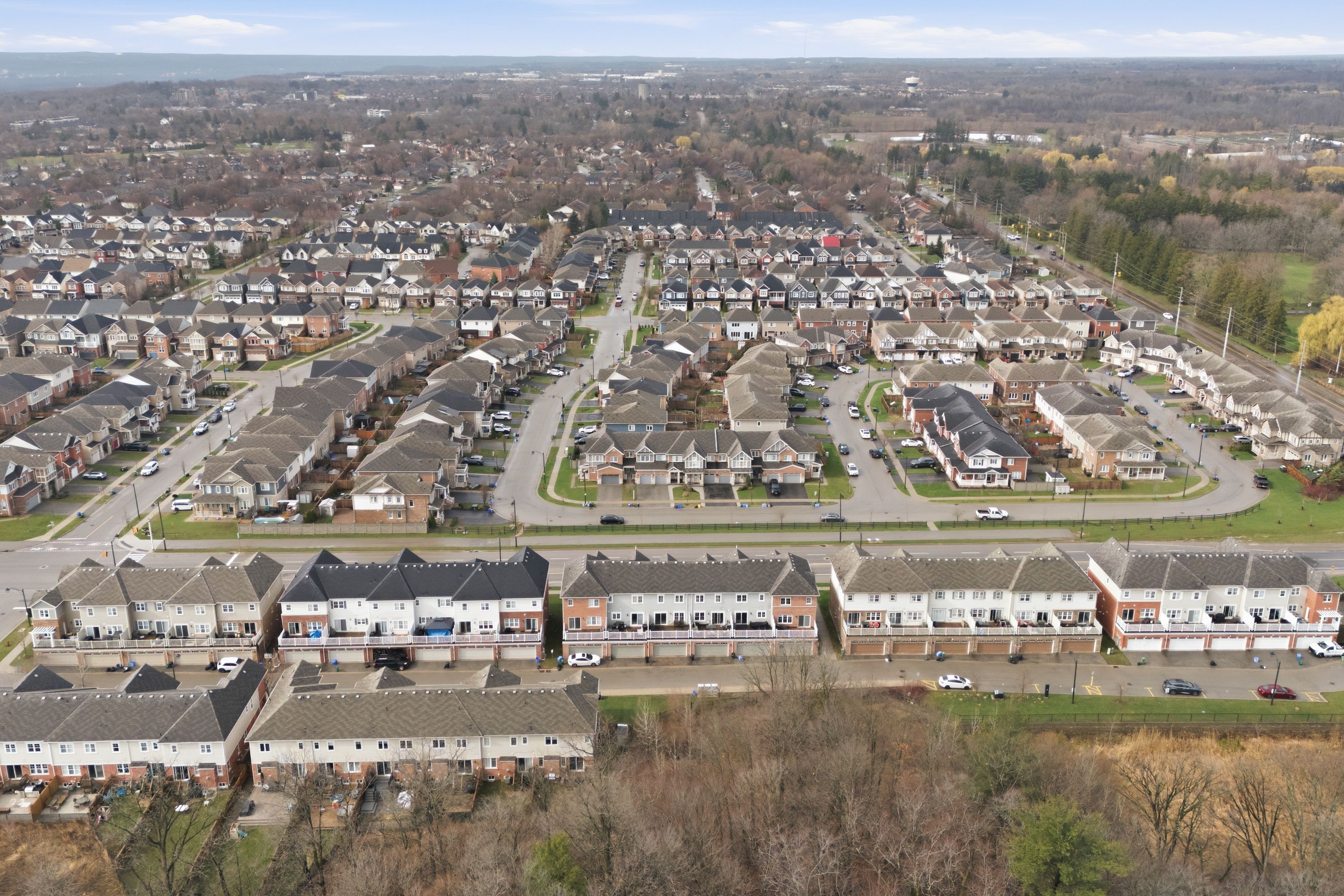 Discover exceptional value in the heart of waterdown, offering over 1,700 square feet of thoughtfully designed living space and a rare double car garage. Welcome to 15-230 avonsyde boulevard, where modern comfort meets a peaceful, community-oriented setting. The main level features a bright and versatile den, perfect for a home office, playroom, or optional fourth bedroom. This level also provides convenient inside access to the double garage along with a well appointed laundry area, adding everyday functionality. Upstairs, the second level showcases a spacious eat in kitchen complete with stainless steel appliances, ample cabinetry, and a sliding door leading to a private terrace overlooking tranquil greenspace. The adjacent family room is filled with natural light, creating an inviting space for both relaxing and entertaining. A stylish two piece powder room completes this level. The upper floor offers a comfortable primary retreat with a walk in closet and private three piece ensuite. Two additional well sized bedrooms and a full bathroom provide plenty of space for family or guests. With parking for three vehicles, a functional layout, and a desirable location close to parks, schools, and amenities, this home presents a fantastic opportunity to own in one of waterdown's most sought after communities.