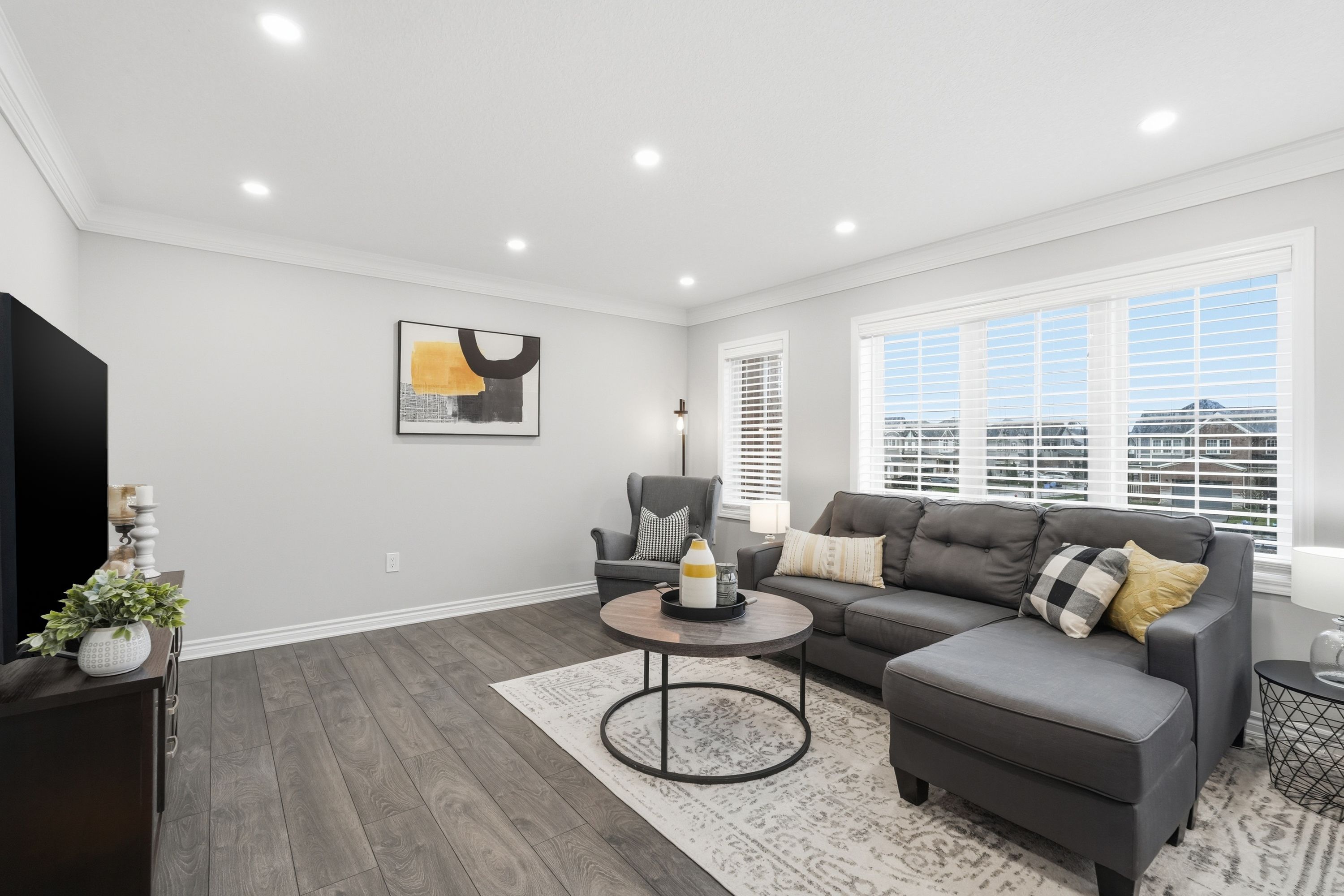 • Bright family room perfect for relaxation and entertaining.