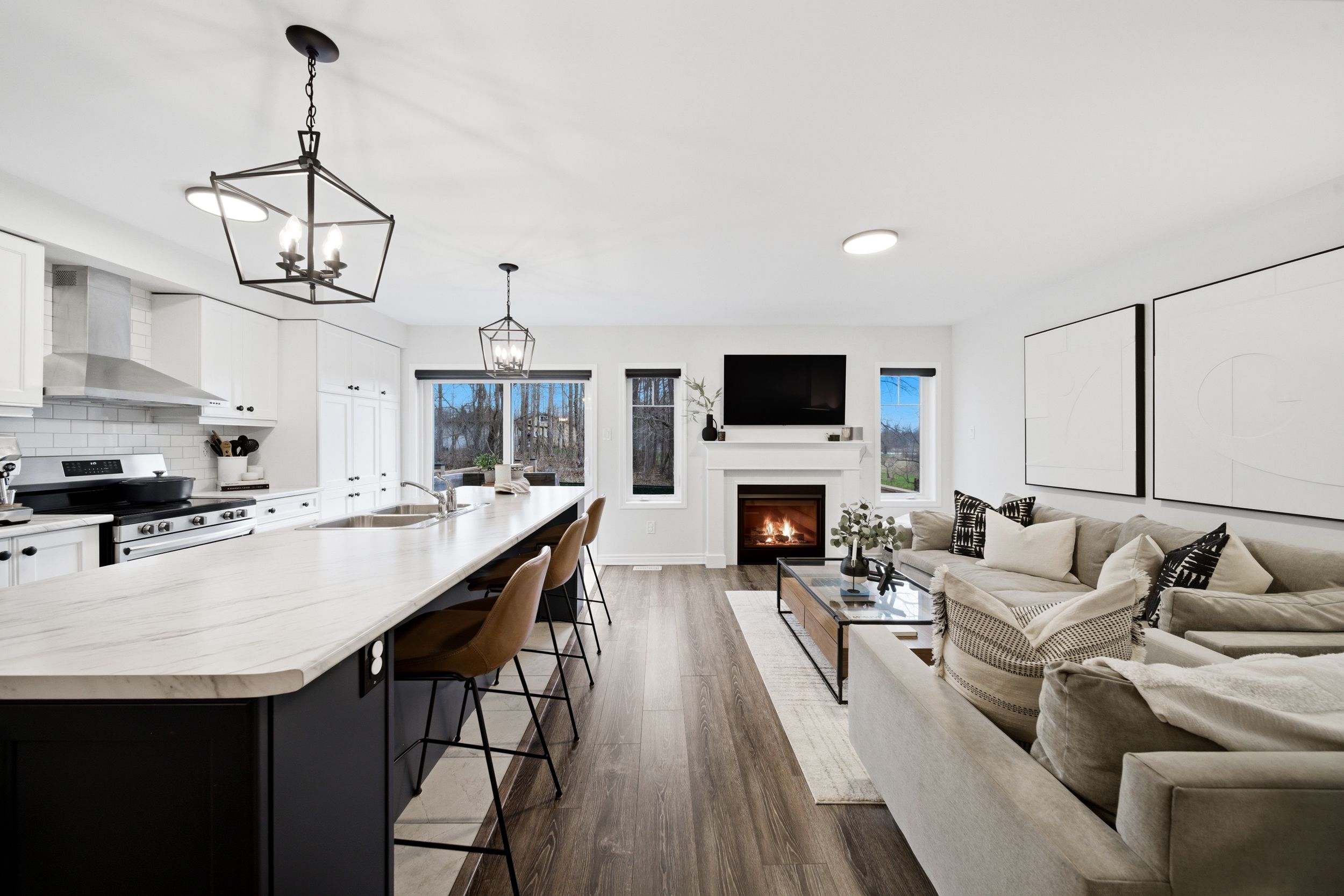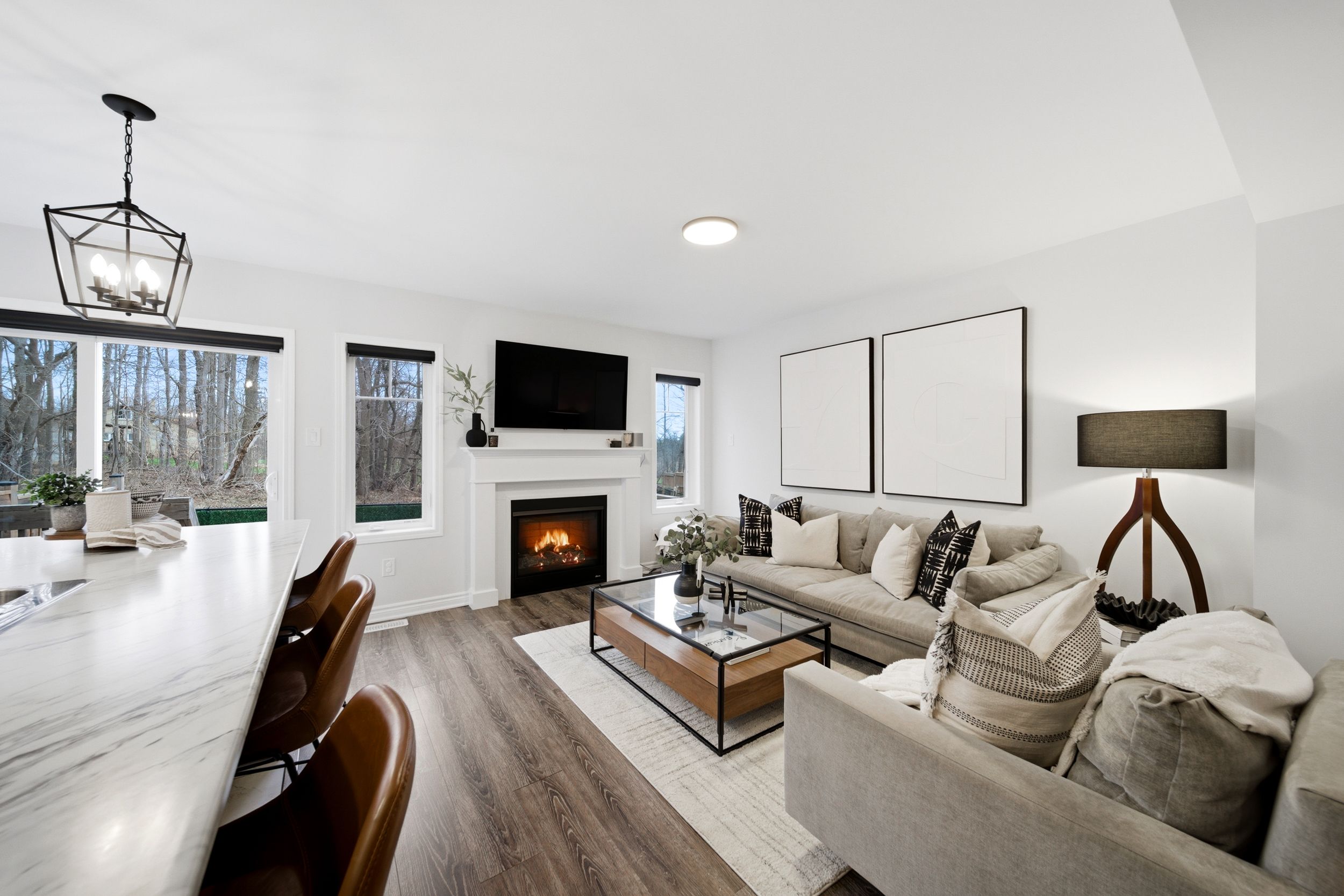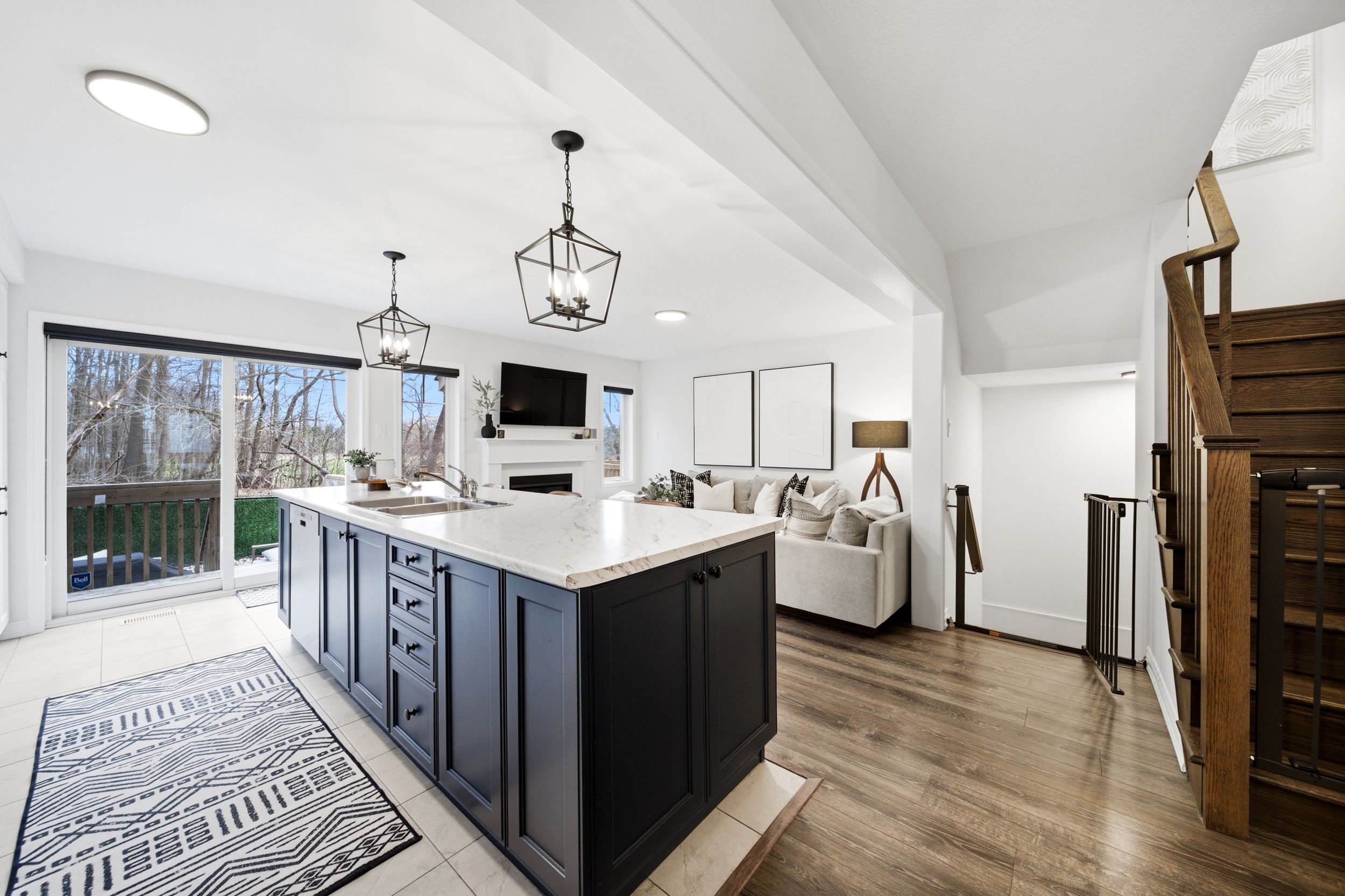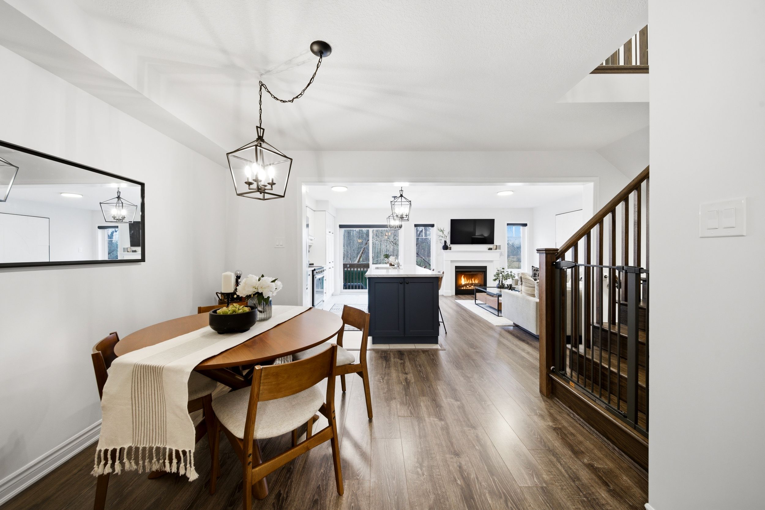 • Bright open-concept main floor with hardwood flooring and natural light.