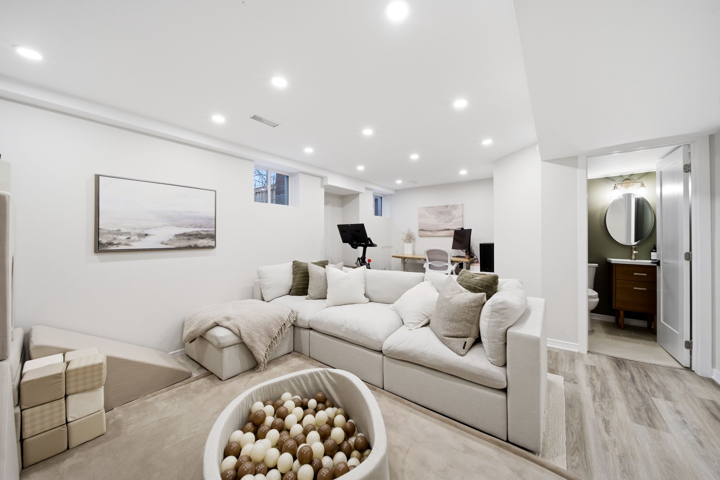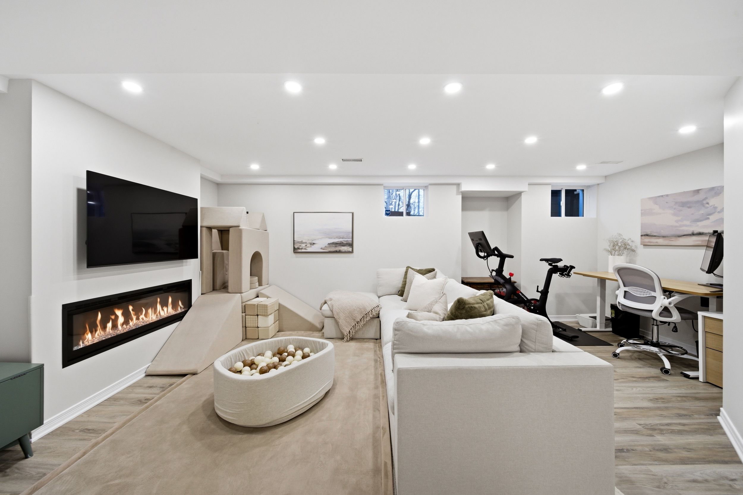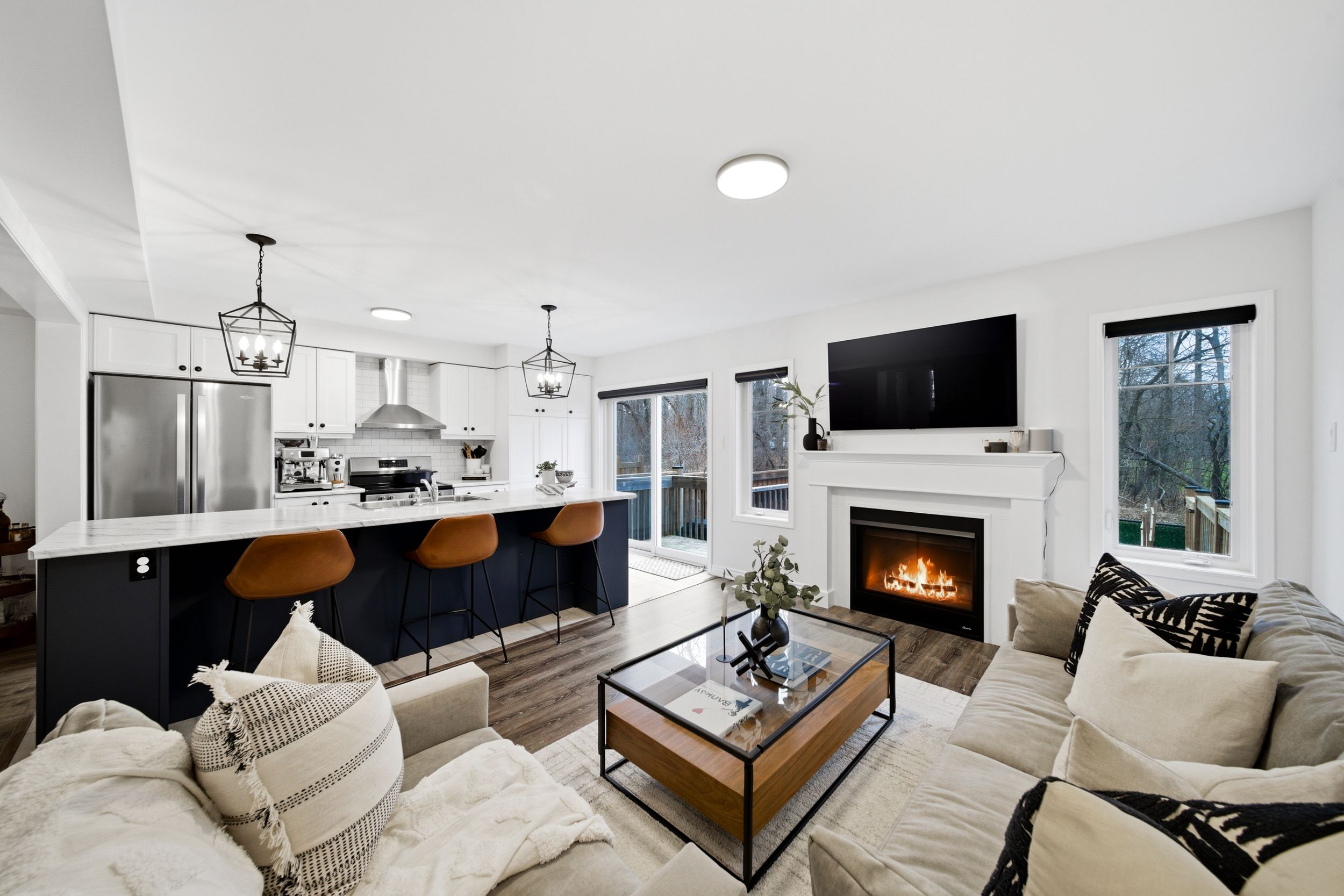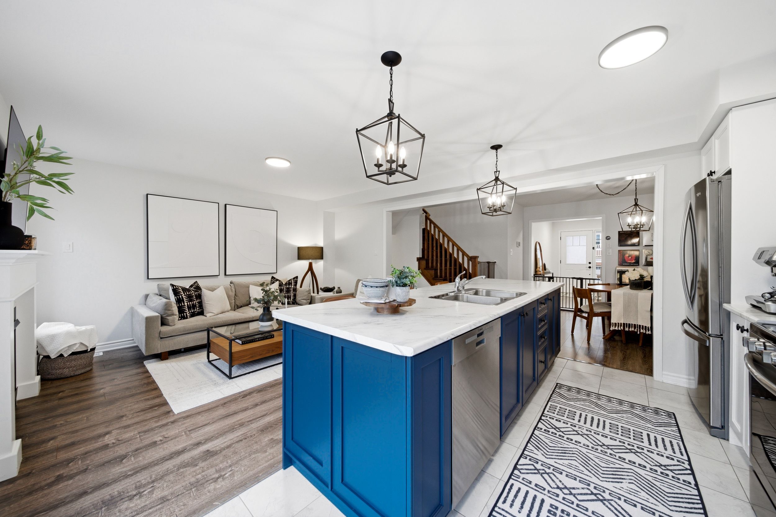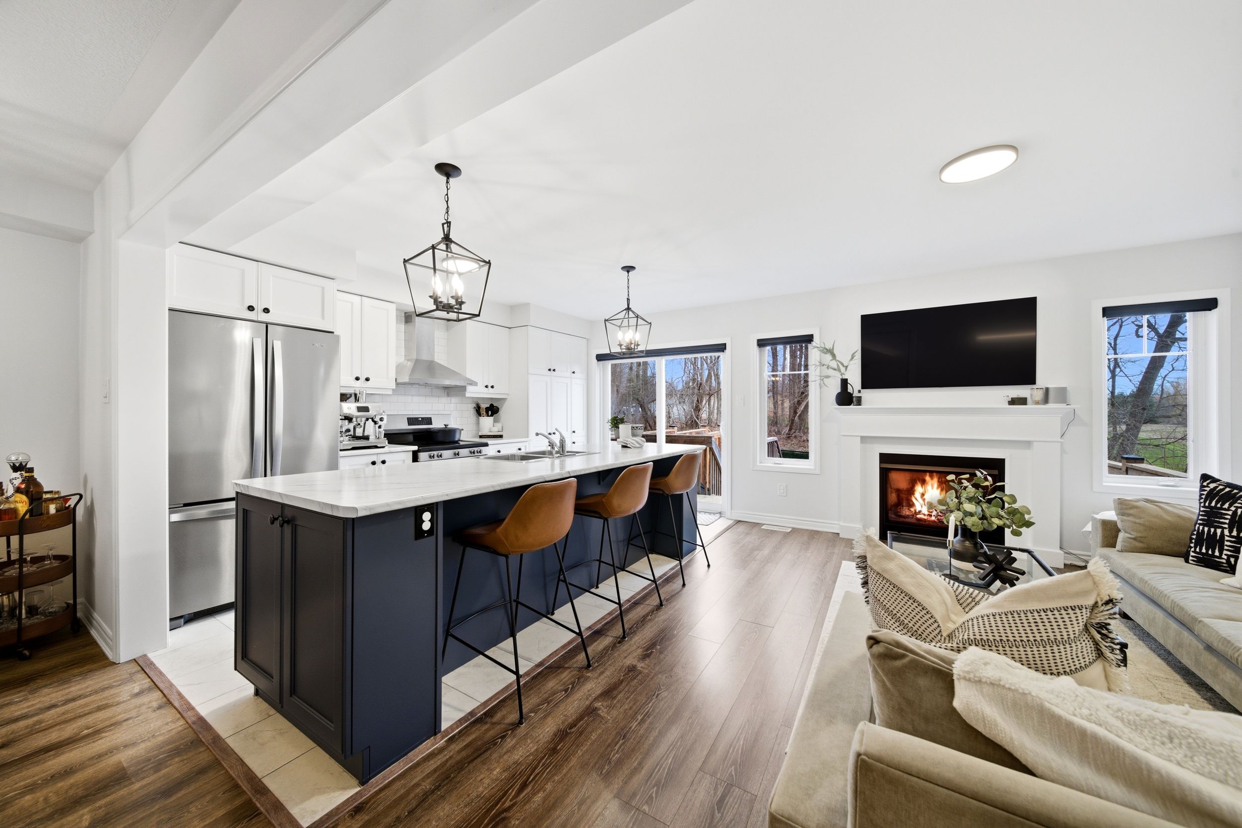 • Bright open-concept main floor with hardwood flooring and natural light.