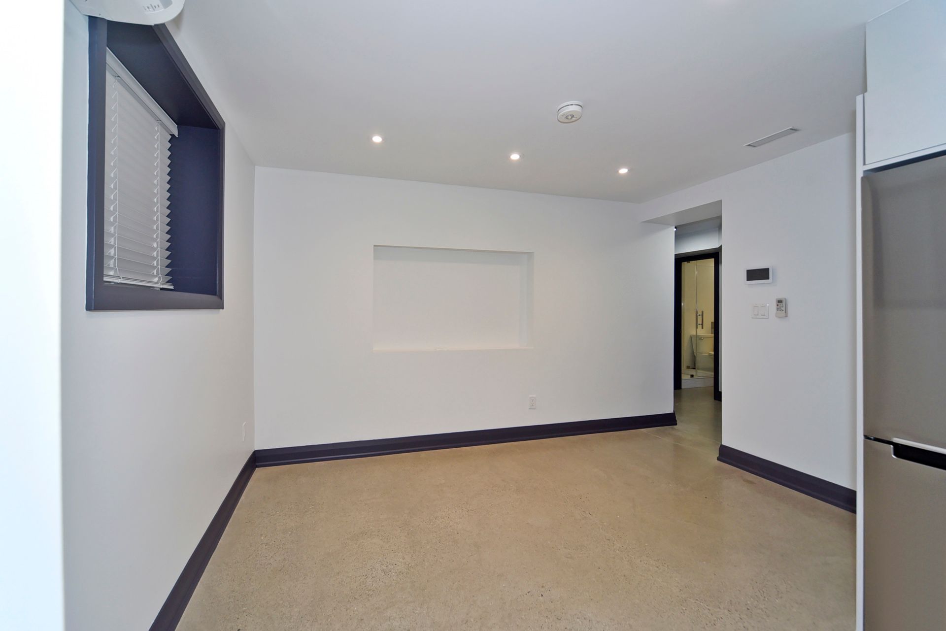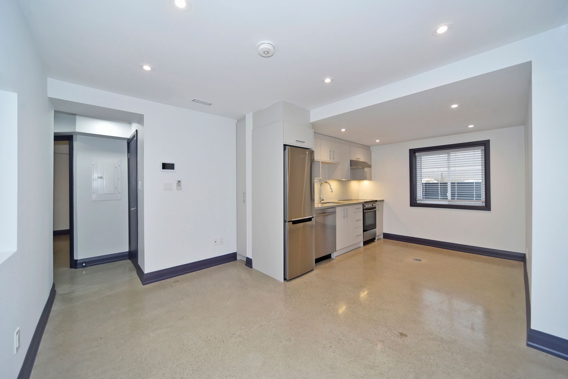 Brand new, self-contained one bedroom apartment on lower level. Immaculate condition, never lived in. Very bright with plenty of natural light. Features 8 ft ceiling, heated polished concrete flooring throughout, modern kitchen with quartz countertop & stainless steel appliances, ensuite washer & dryer, ductless air conditioning, video intercom, rough-in for rogers ignite & bell fibe internet, surveillance cameras. All utilities are separately metered! Great location - short walk to bus stop, minutes to vibrant st. Clair west corso italia, schools, shopping, restaurants, cafes, grocery stores, & more! Street parking available by permit. Super clean and quite building, meticulously maintained.