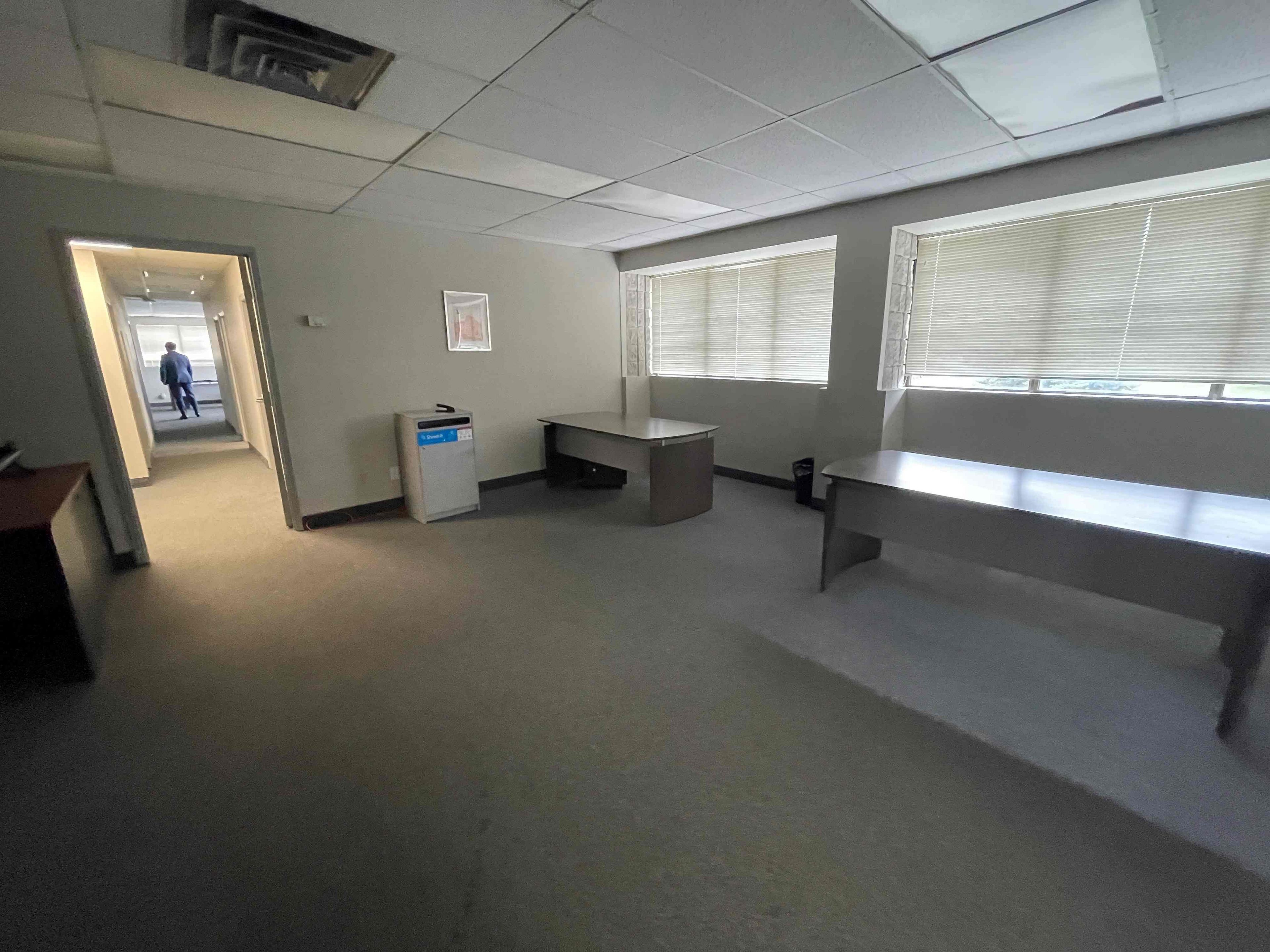 • Versatile office layout with open areas, private offices, and meeting spaces.