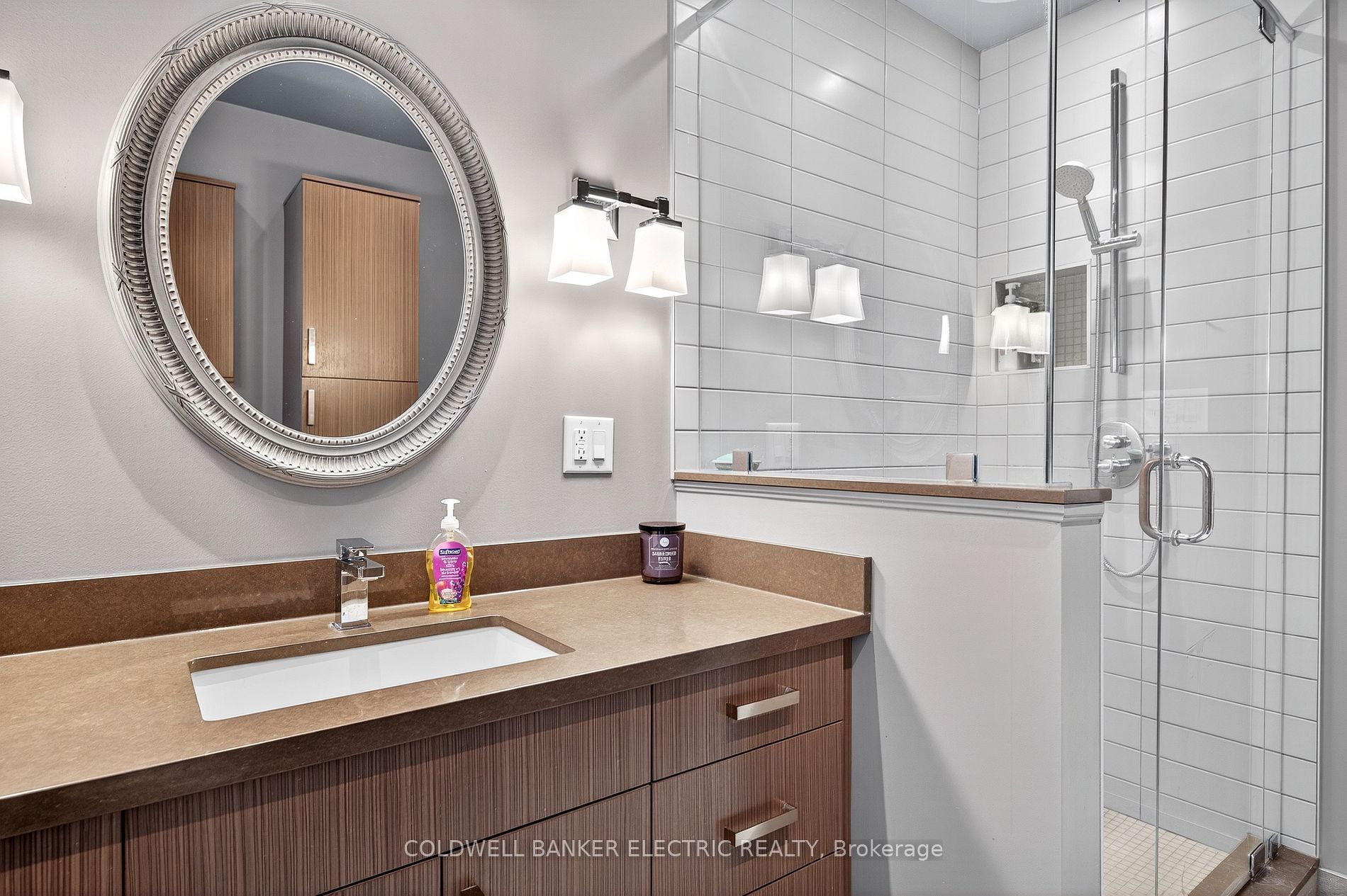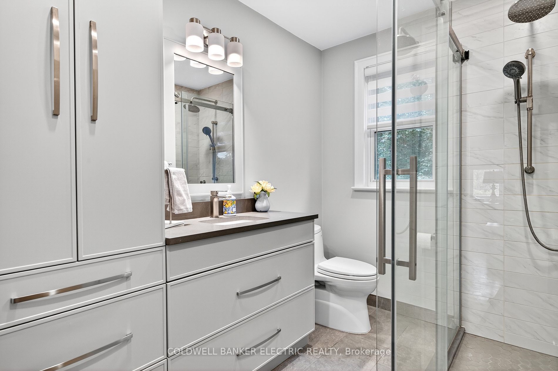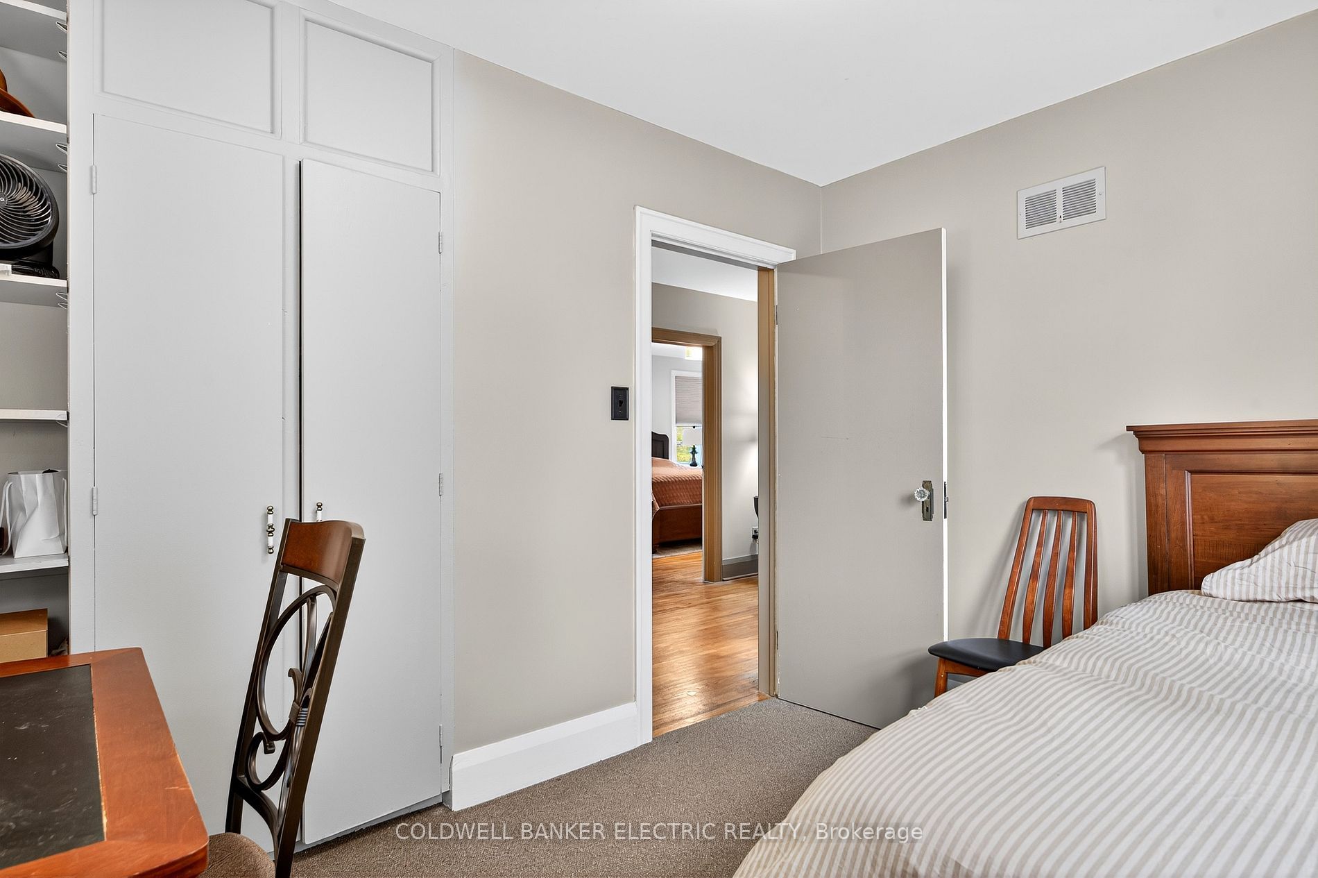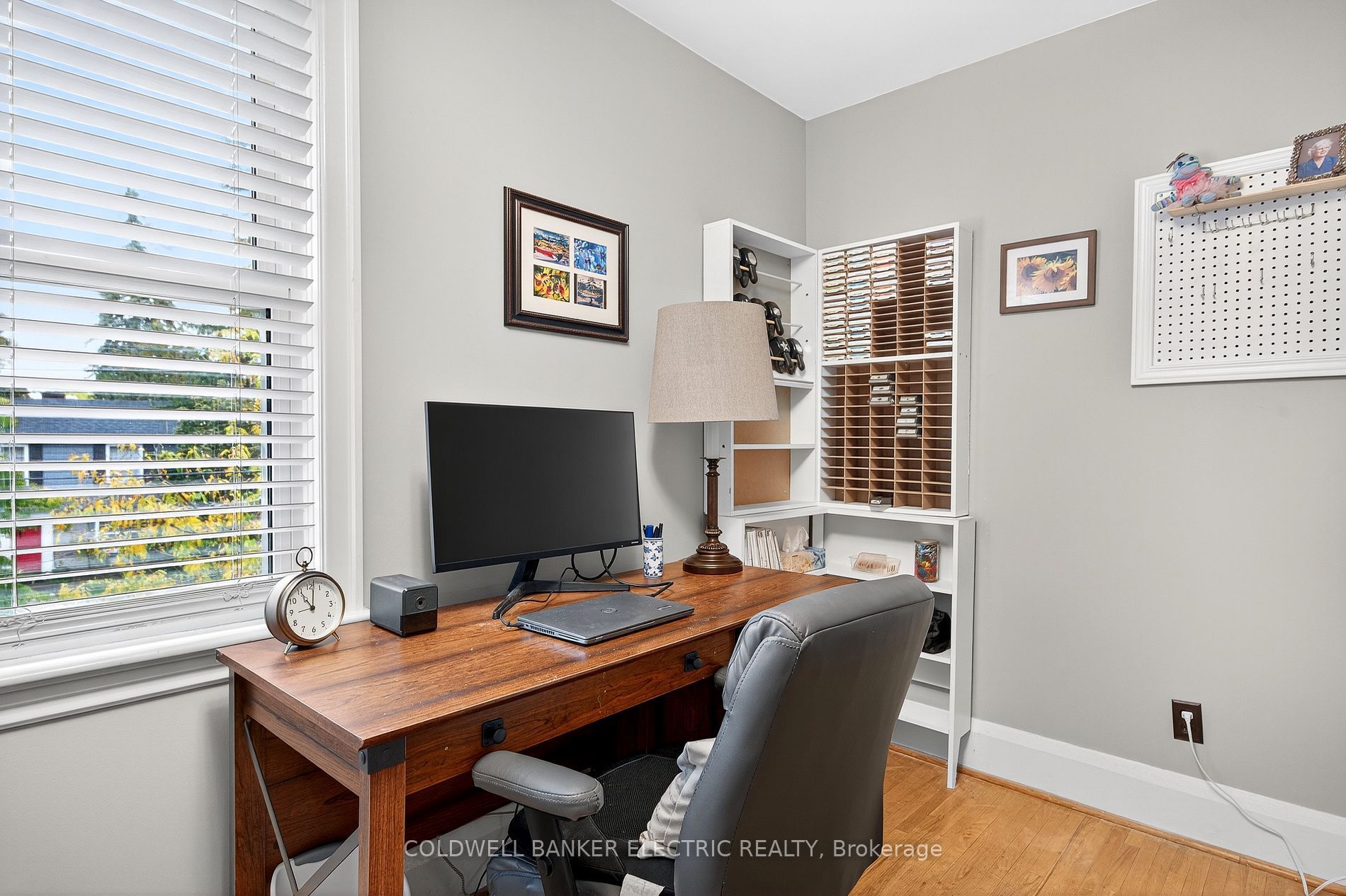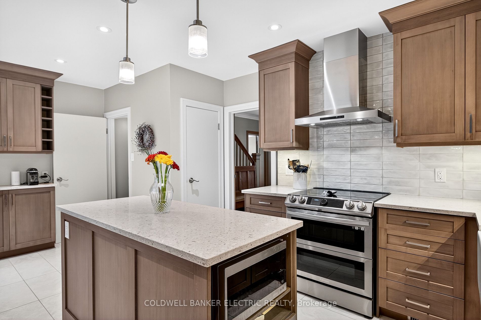 Located in the sought-after teachers college area of peterborough, this charming all-brick two-storey home sits on a desirable corner lot in one of the city's most established neighbourhoods - known for its tree-lined streets, character homes, and walkable access to downtown amenities. Step inside to find original hardwood floors flowing through a warm and inviting spacious living room with a cozy fireplace. The formal dining room offers a welcoming environment for entertaining and leads into the beautifully renovated custom maple kitchen - featuring quartz countertops, stainless steel appliances, dovetail cabinetry, and elegant tile flooring. From the kitchen, step out onto the large cedar deck overlooking a fully fenced backyard with a newly constructed patio-perfect for outdoor living and access to the double bay garage offering a functioning ford ev charger. Back into the main house, and down a side hall features a thoughtfully designed family room addition with vaulted wood ceilings, exposed beams, and two skylights. A high end renovated three-piece bathroom completes the space, while a staircase leads to a versatile loft - ideal for a home office or potential fifth bedroom. The second storey offers four bedrooms, including a generously sized primary, along with a beautifully renovated three-piece bathroom with glass shower. The basement provides a rec room and ample storage in the utility / laundry room. Located just minutes to downtown shops, restaurants, and amenities - offering a connected, walkable lifestyle in a well-established neighbourhood. Ideal for families, professionals, or those with a connection to local colleges and universities.