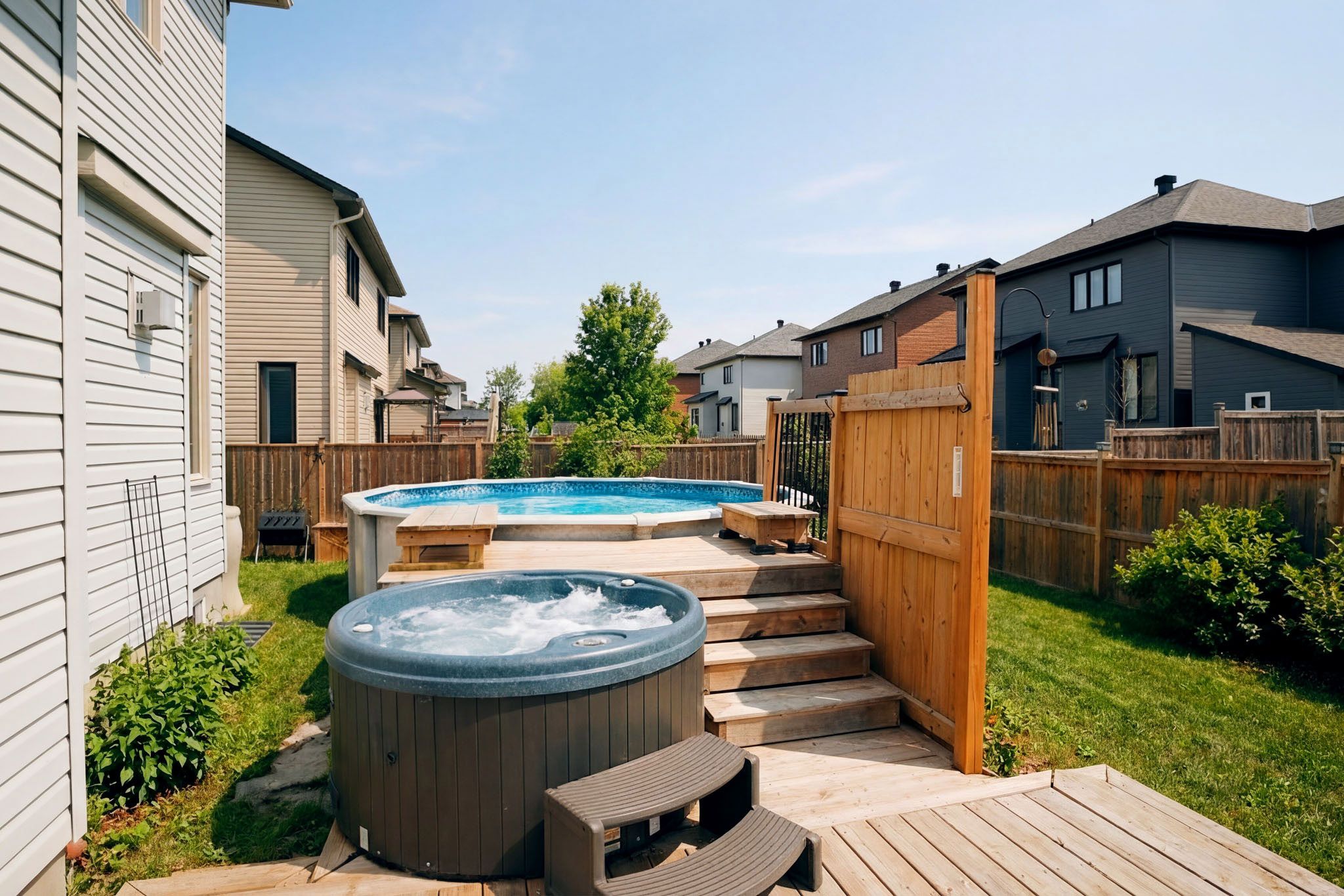 • Fully fenced backyard with a pool and hot tub for summer enjoyment.