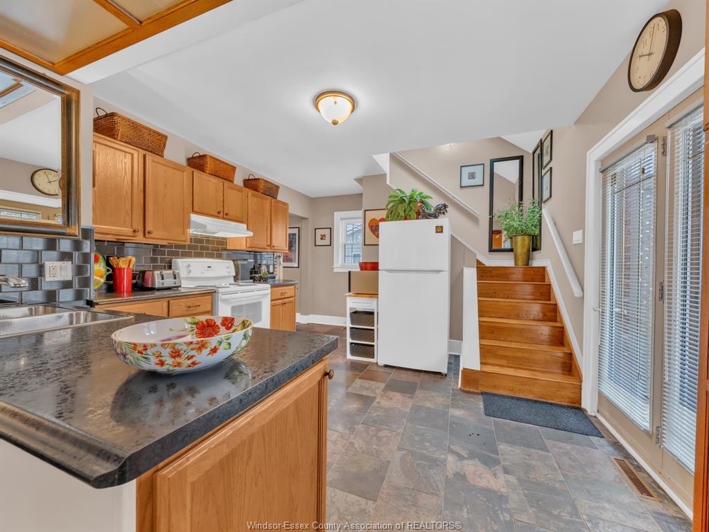 Welcome to an exceptional classic kingsville property situated in the heart of kingsville's vibrant and high-exposure east side. This location offers a rare combination of main street visibility and proximity to the town's most sought-after amenities. Walk to restaurants, groceries, churches, schools and more. Perfect location for in home business opportunities. Sit on the front porch or in the front 3 season sunroom and enjoy your morning coffee. Living room with an insert wood fireplace makes for a cozy living space and entertain in the formal dining room. The functional kitchen and family room overlook the sundeck and fully fenced in backyard. Upstairs are 3 sizable bedrooms, 4 pce bathroom w/clawfoot tub and multiple closets. Lower level laundry and room to finish for your own needs. Shingles/skylight (2019) furnace, a/c (2010), hwt (2022) call today for your own private viewing.