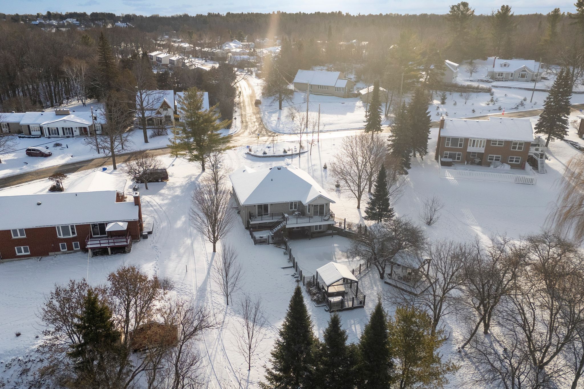 Discover the epitome of sophistication in this executive bungalow located in the charming town of renfrew. Designed to offer an unparalleled lifestyle, this property seamlessly blends luxury, privacy, and natural beauty. The homes layout is thoughtfully crafted to maximize natural light, with morning sun illuminating the living spaces and the backyard basking in afternoon sunlight, making every corner feel warm and inviting. Inside, the home boasts three spacious bedrooms and two full bathrooms, with the primary suite featuring a walk-in closet so well-designed, even maria kondo would be impressed. The bright white kitchen features quartz counter tops and provides ample storage, an office nook & additional seating. Step outside onto the expansive rear deck, accessible from both the kitchen and the primary bedroom, and take in the breathtaking landscape views. The lower level provides additional living space, a small gym, a bar, and a walkout to the incredible outdoor space. The backyard is a private oasis featuring a sparkling in-ground saltwater pool, surrounded by meticulous landscaping. Adjacent to the pool, you'll find your own apple orchard, where deer often wander by, occasionally nibbling on the fruit, adding a touch of natures wonder to your everyday life. Mature trees provide additional shade and privacy. The hot tub offers a perfect sanctuary for unwinding after a long day. Backing onto smiths creek, this property immerses you in the peaceful sounds of nature. The town of renfrew offers many recreational programs and clubs. Renfrew is located approximately 45 minutes from ottawa, the nations capital.