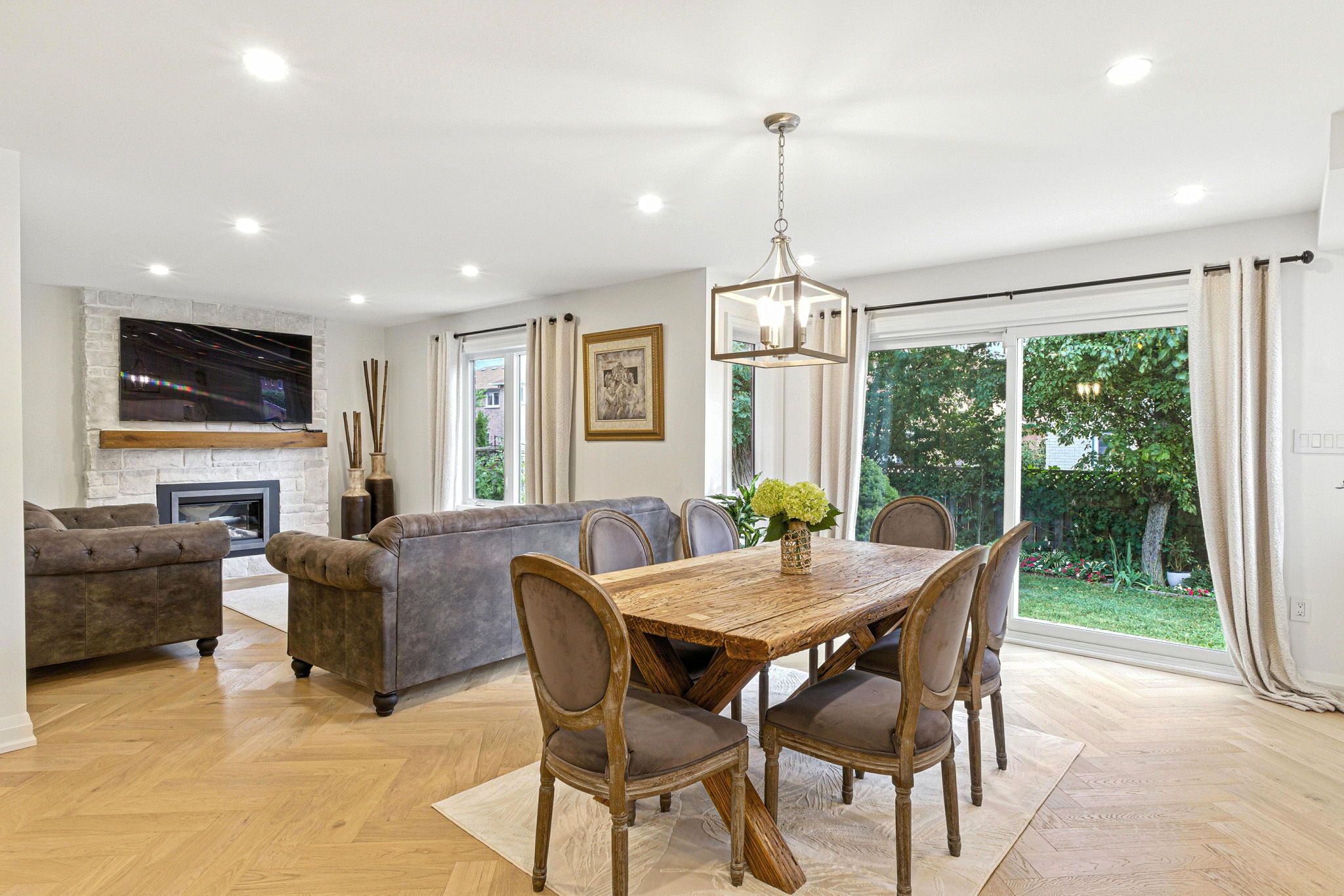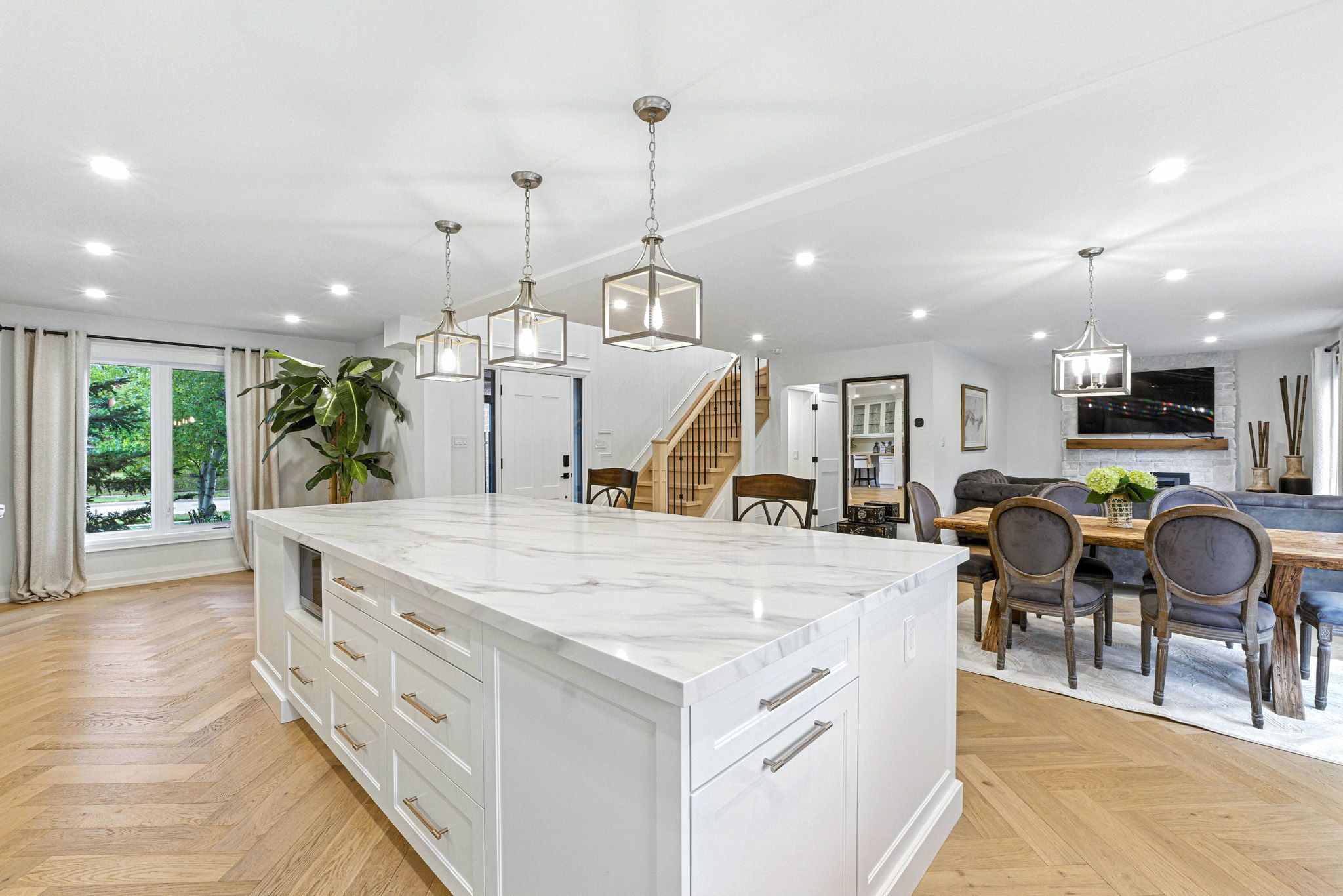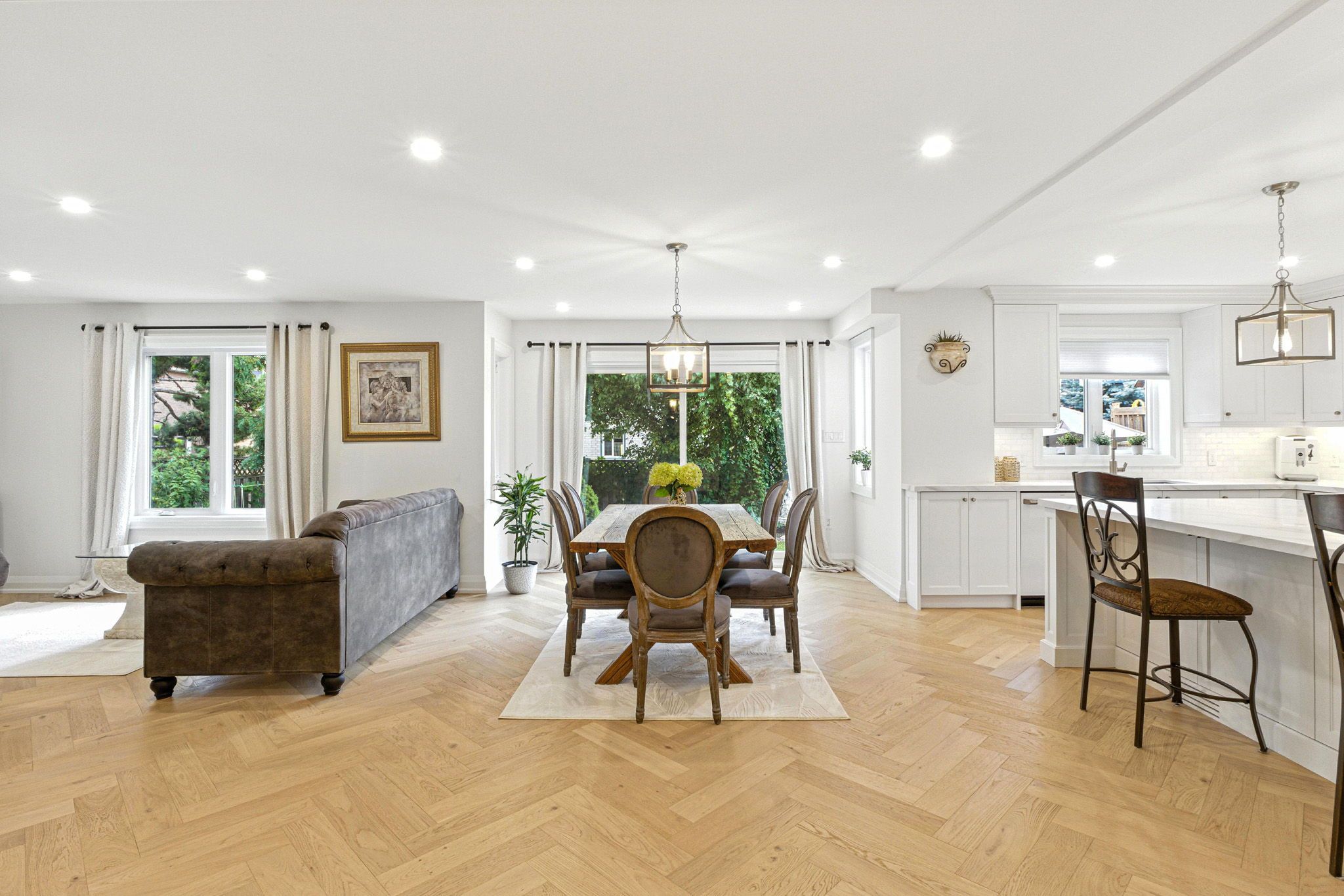 • Bright open-concept home with large windows filling spaces with natural light.